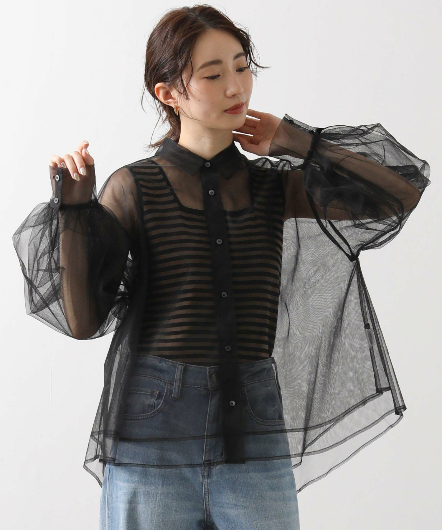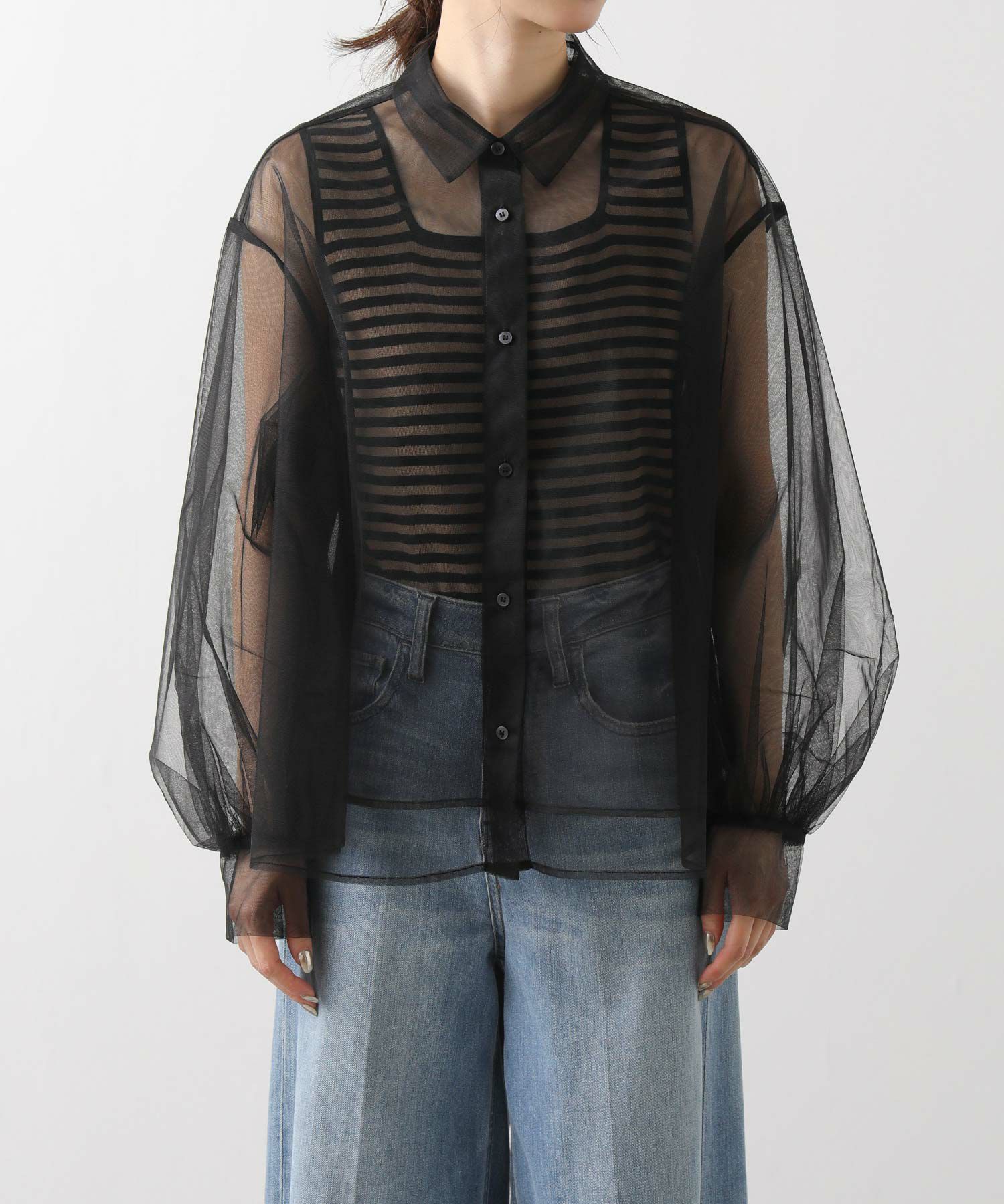 チュールをふんだんに使用したシアーブラウス。