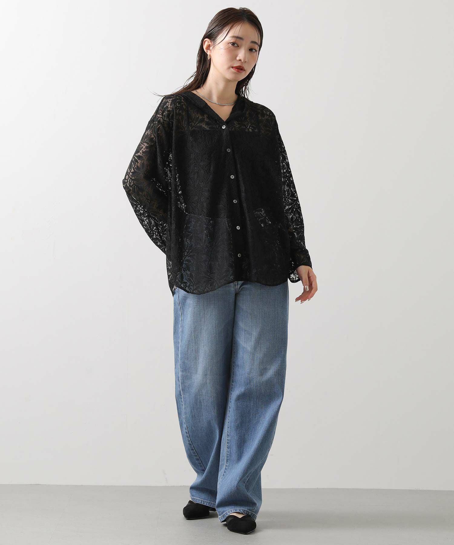 程よい透け感が美しいレースを使用し、軽やかで女性らしい印象に。