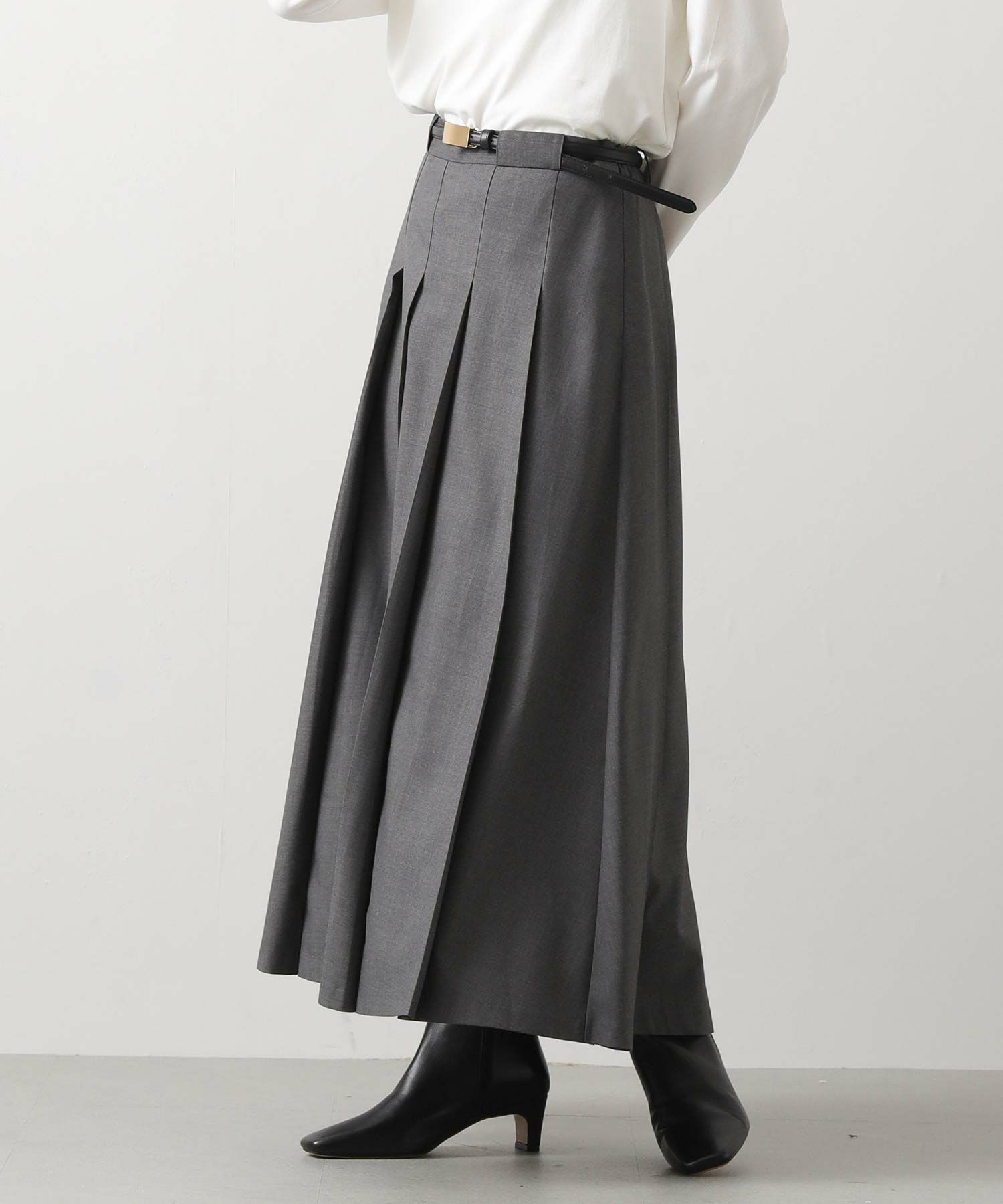今季トレンドのワイドプリーツがトラッドでクラシカルな印象のスカート。