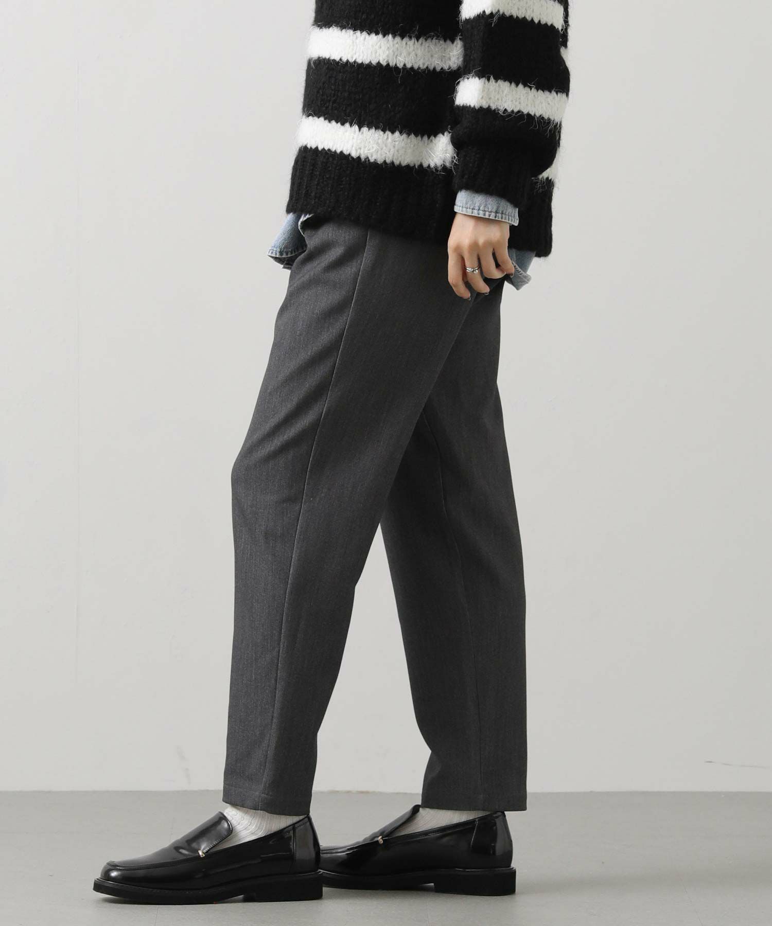 ウエストゴムの楽ちんな穿き心地に、きちんと見えするシルエットがオン・オフ使える万能パンツです。
