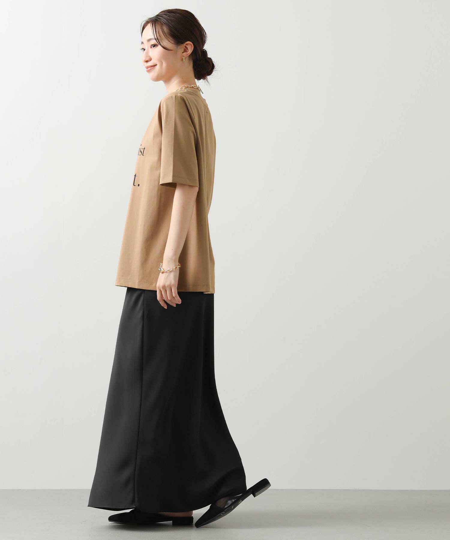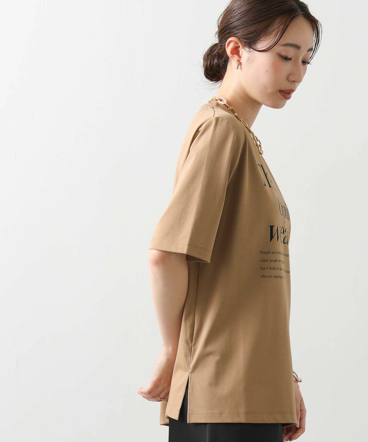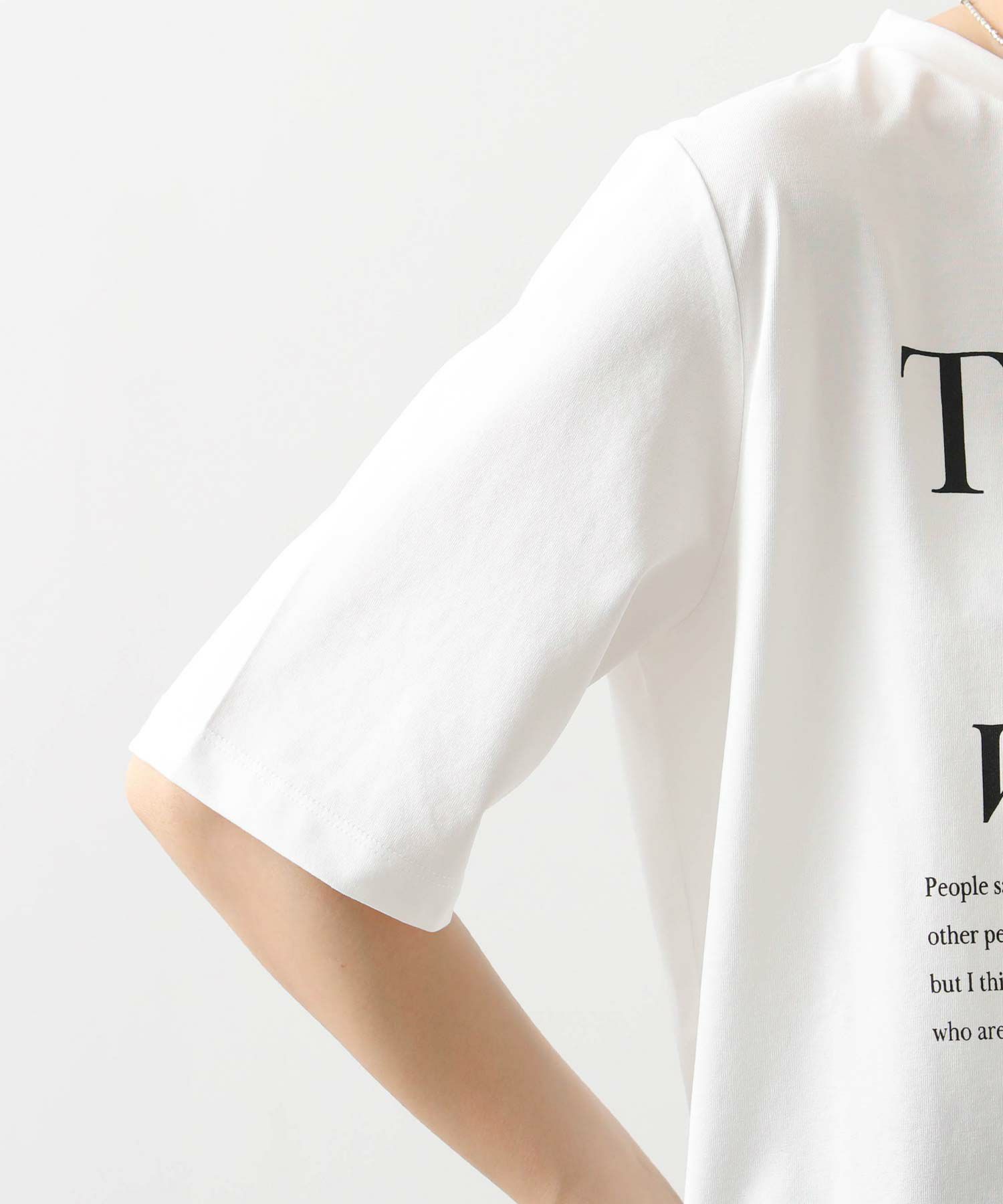 主張しすぎない英字デザインはカジュアルにもきれいめにも合わせやすく大人の女性にぴったりの一枚。