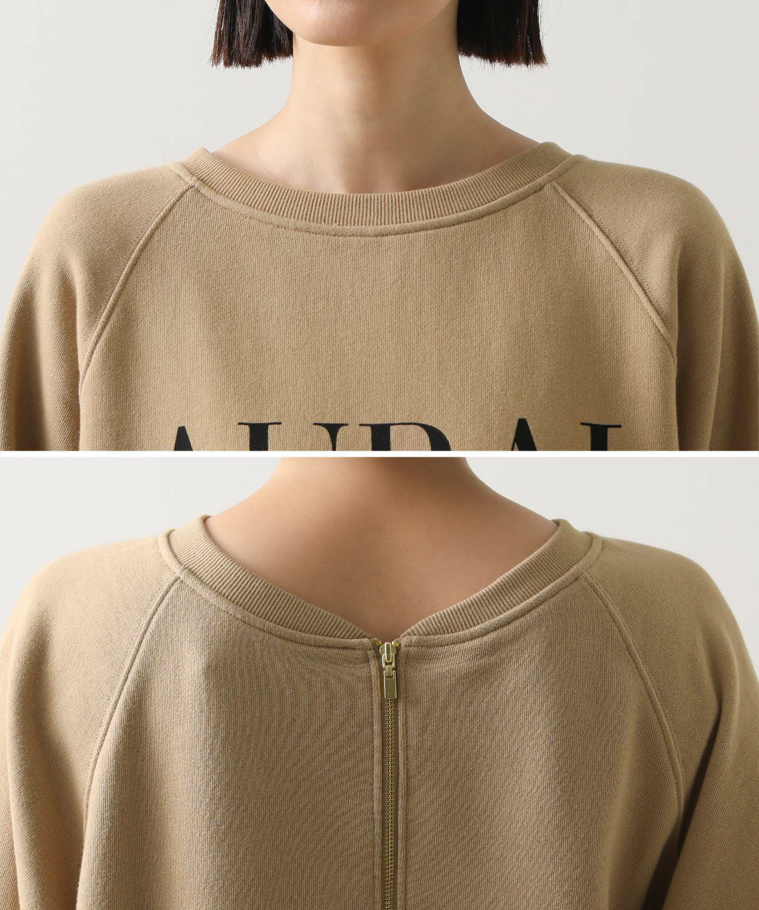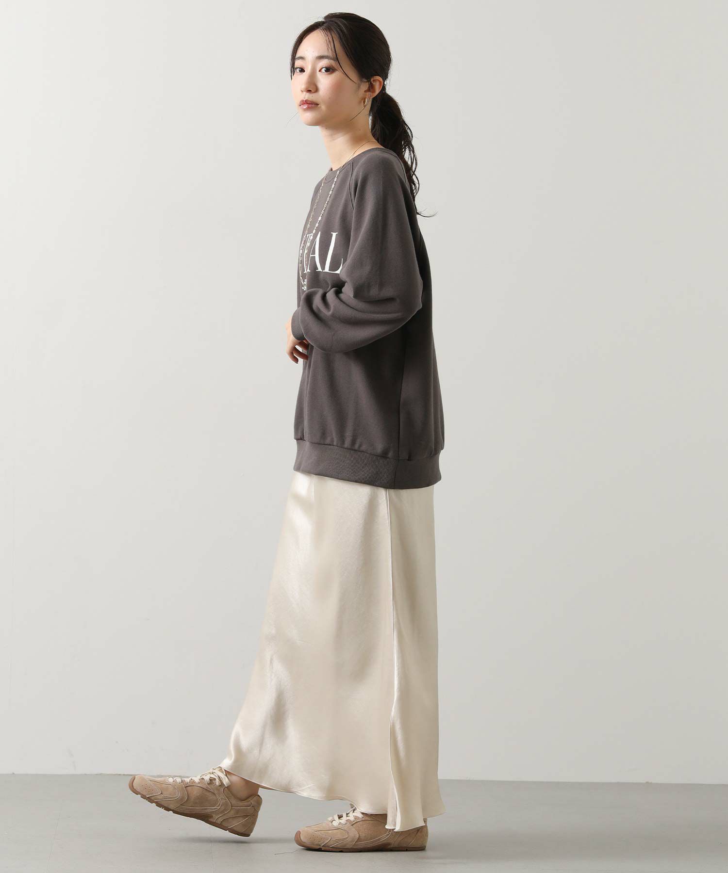 柔らかな裏毛素材を使用。上品で大人っぽいフォントのロゴなので、カジュアルになりすぎず女性らしく決まります。