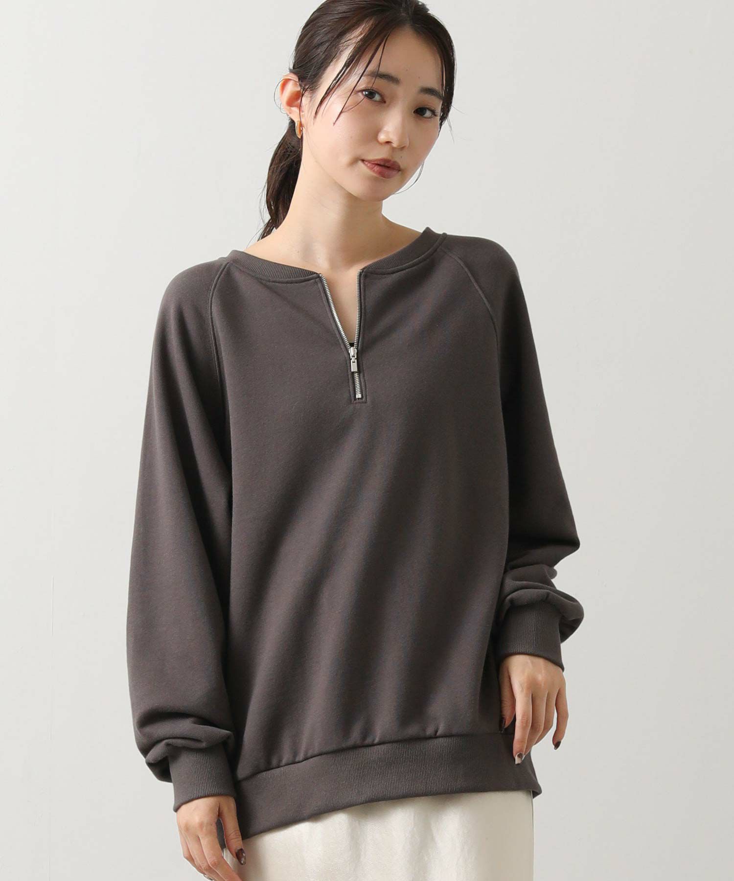 ZIPを少し開け、首を抜かせてデコルテを覗かせる着こなしも女性らしくてオススメ。