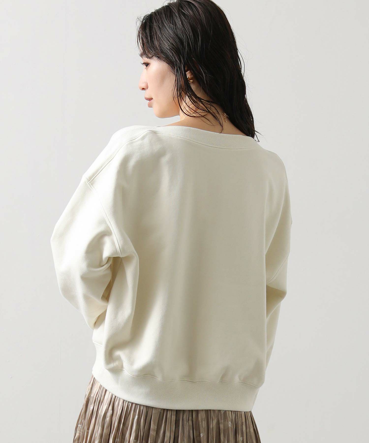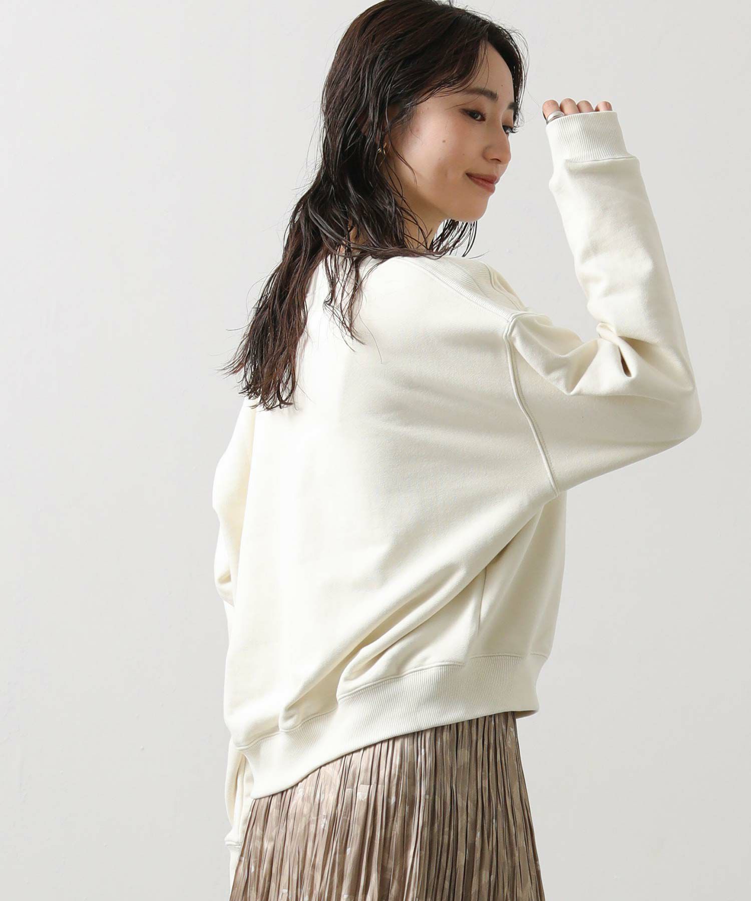 柔らかな裏毛素材が着心地の良さを叶えつつ、きれいめスタイルにも自然に馴染む1着。
