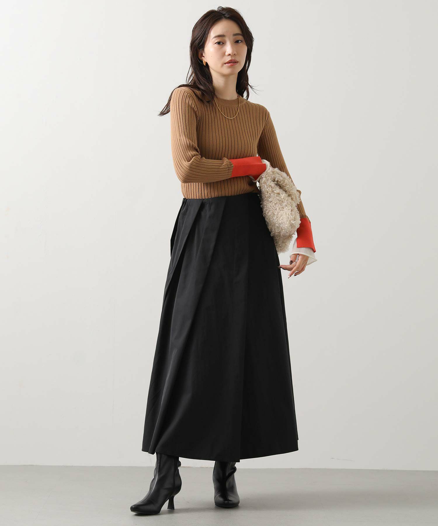 光沢のあるタフタ素材は、寒くなってくる時季のふわふわニットと相性抜群。