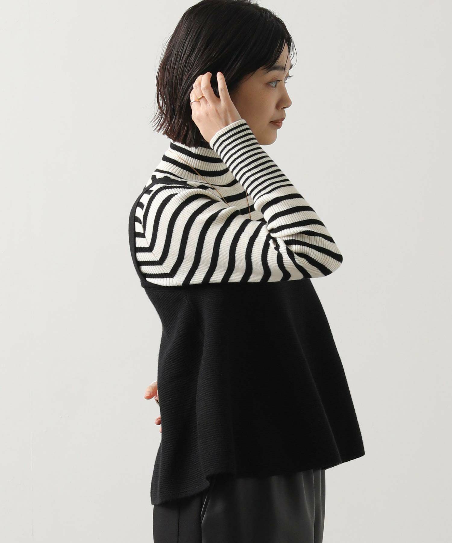 ややショート丈のデザインで、ハイウエストボトムとの相性も抜群◎