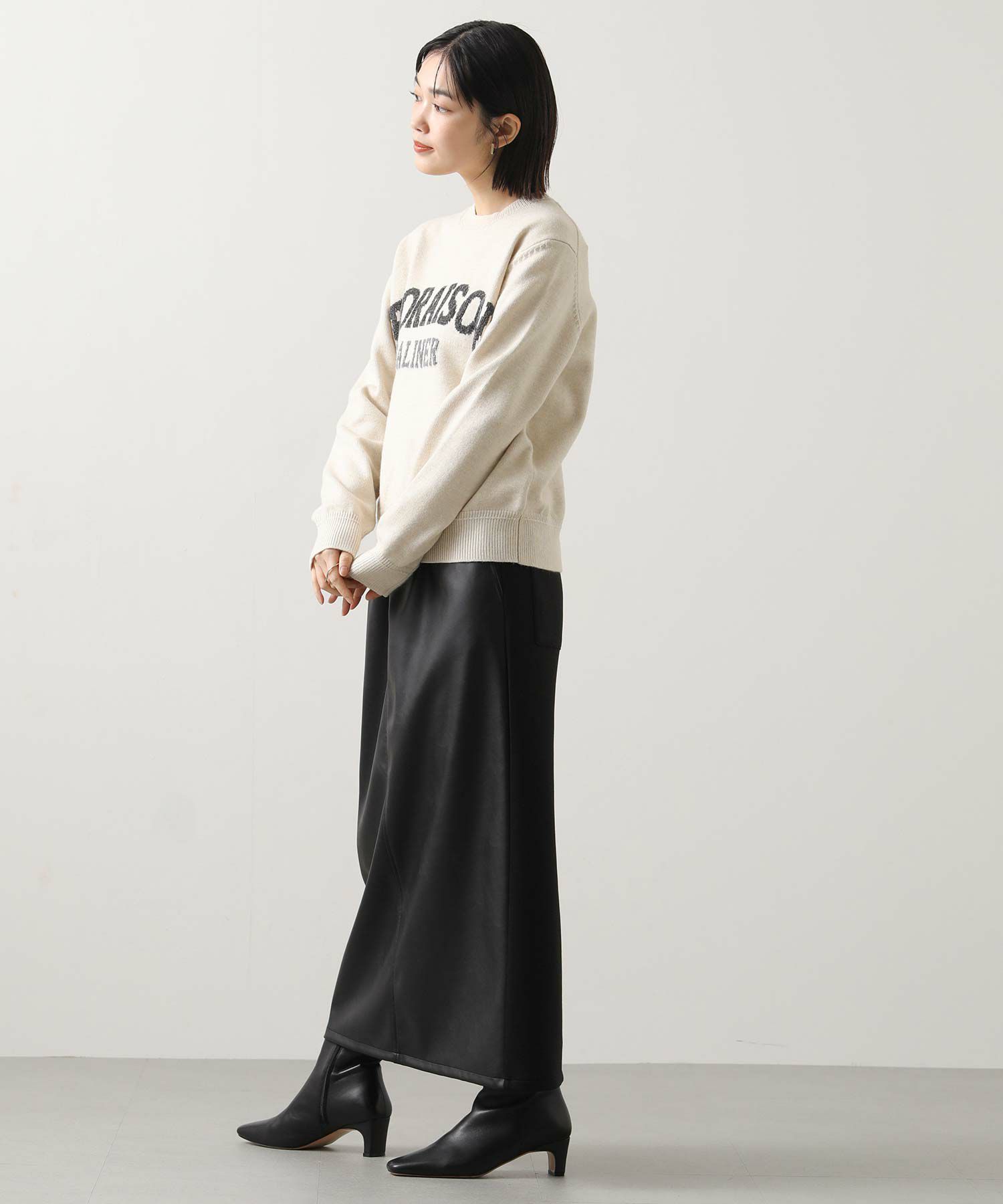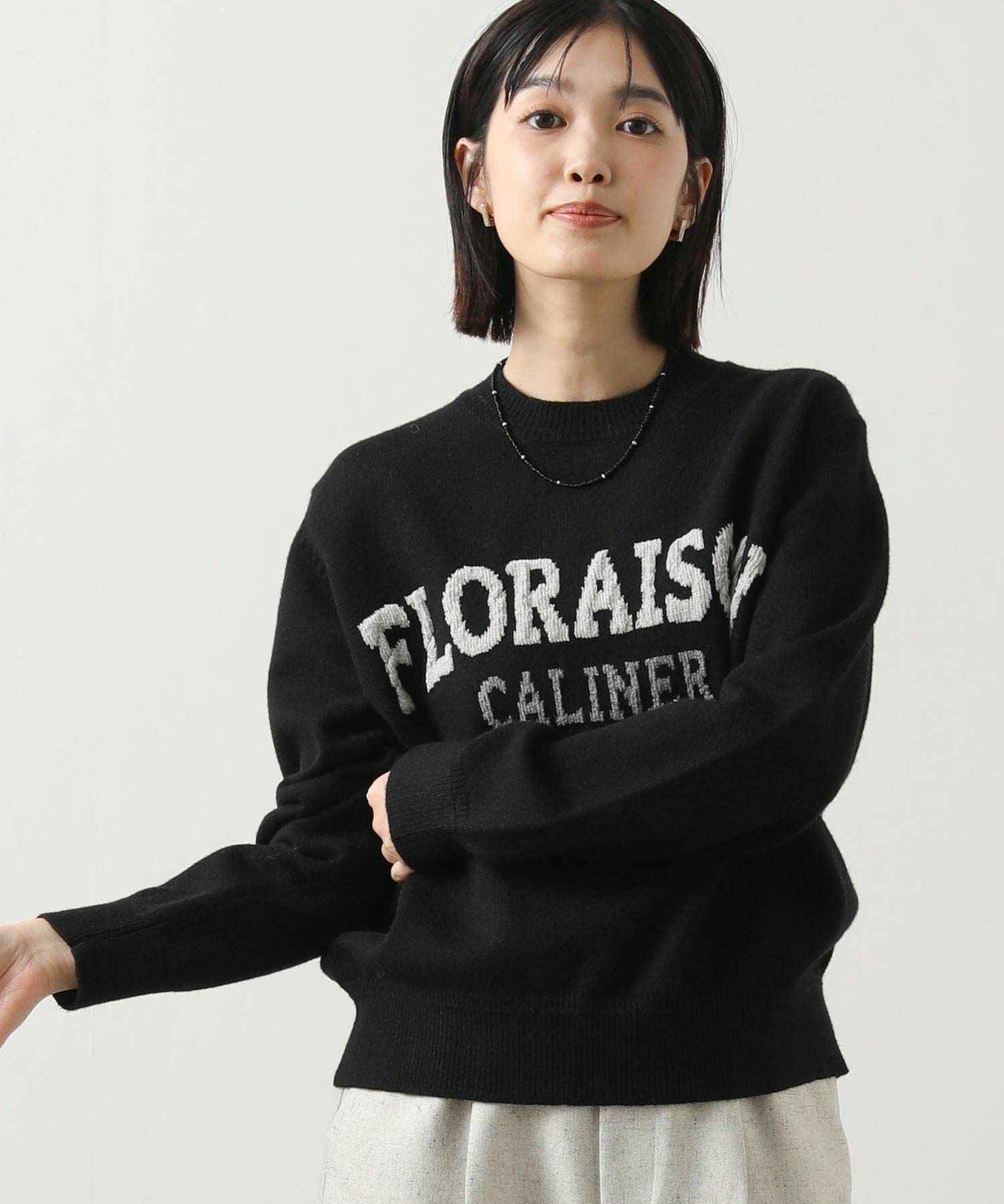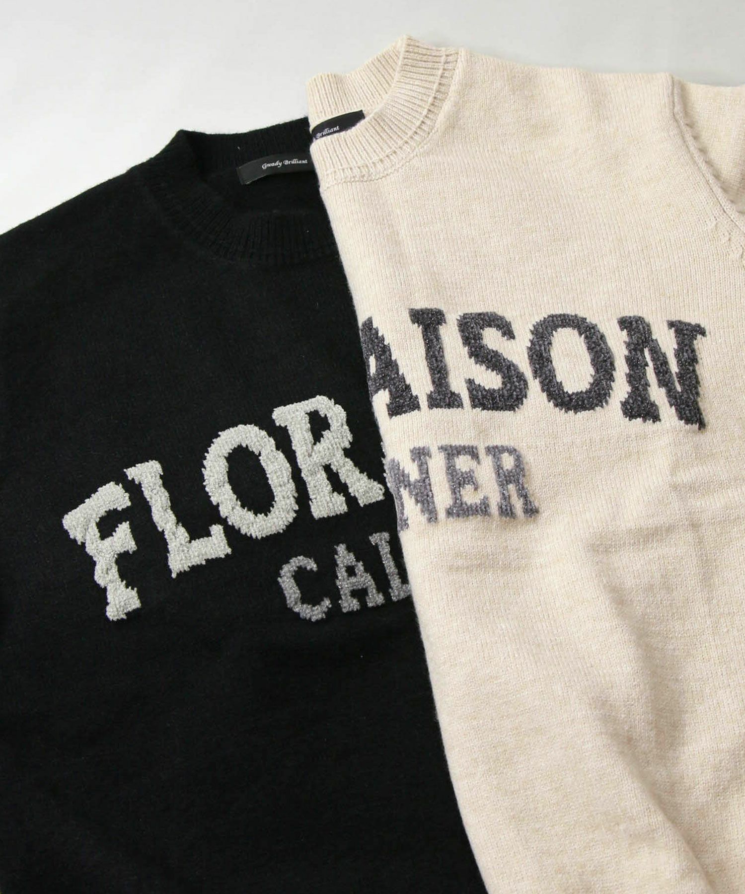 ロゴにさりげく光るラメ糸と立体感のあるモール糸を組み合わせたデザインニット。