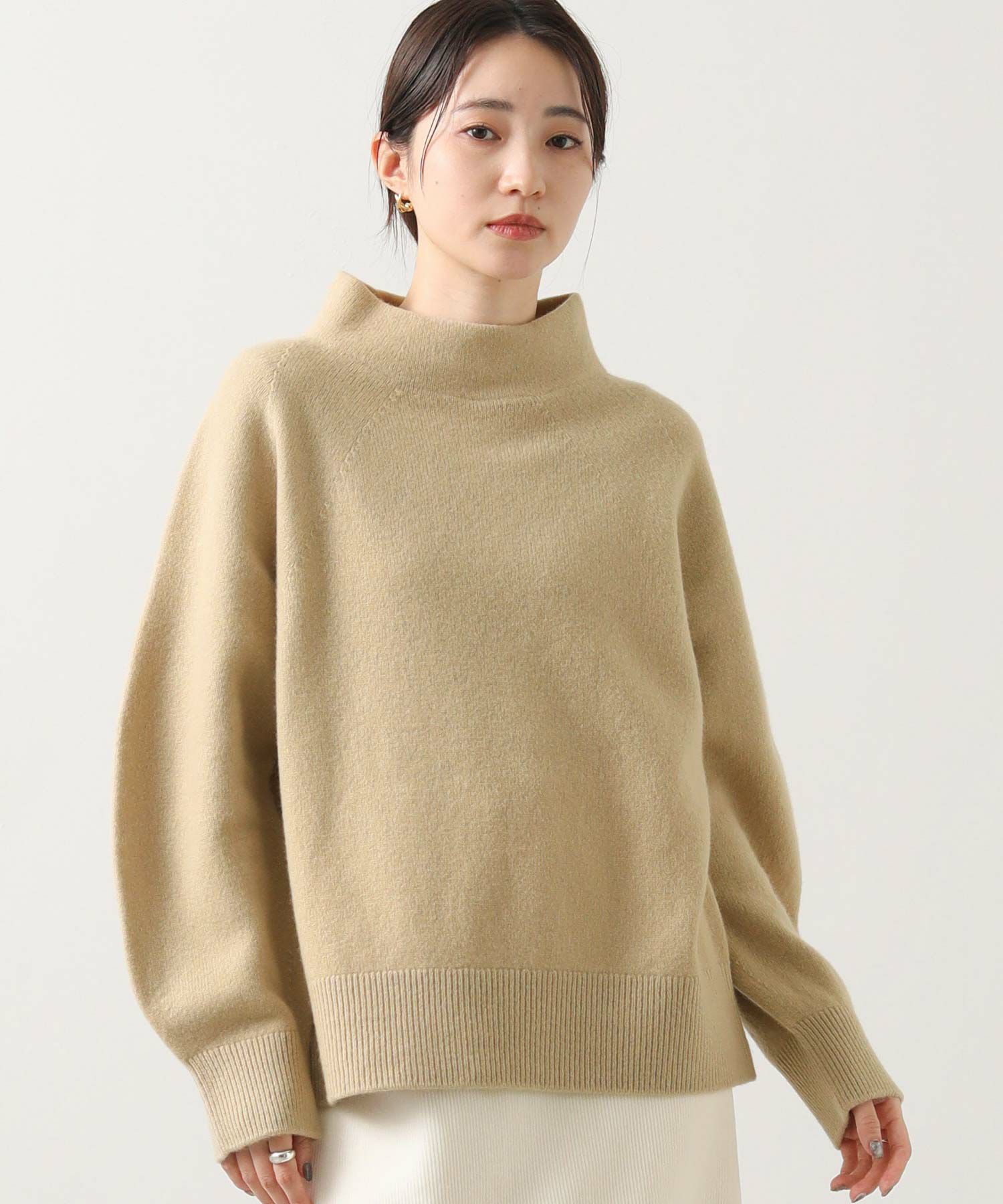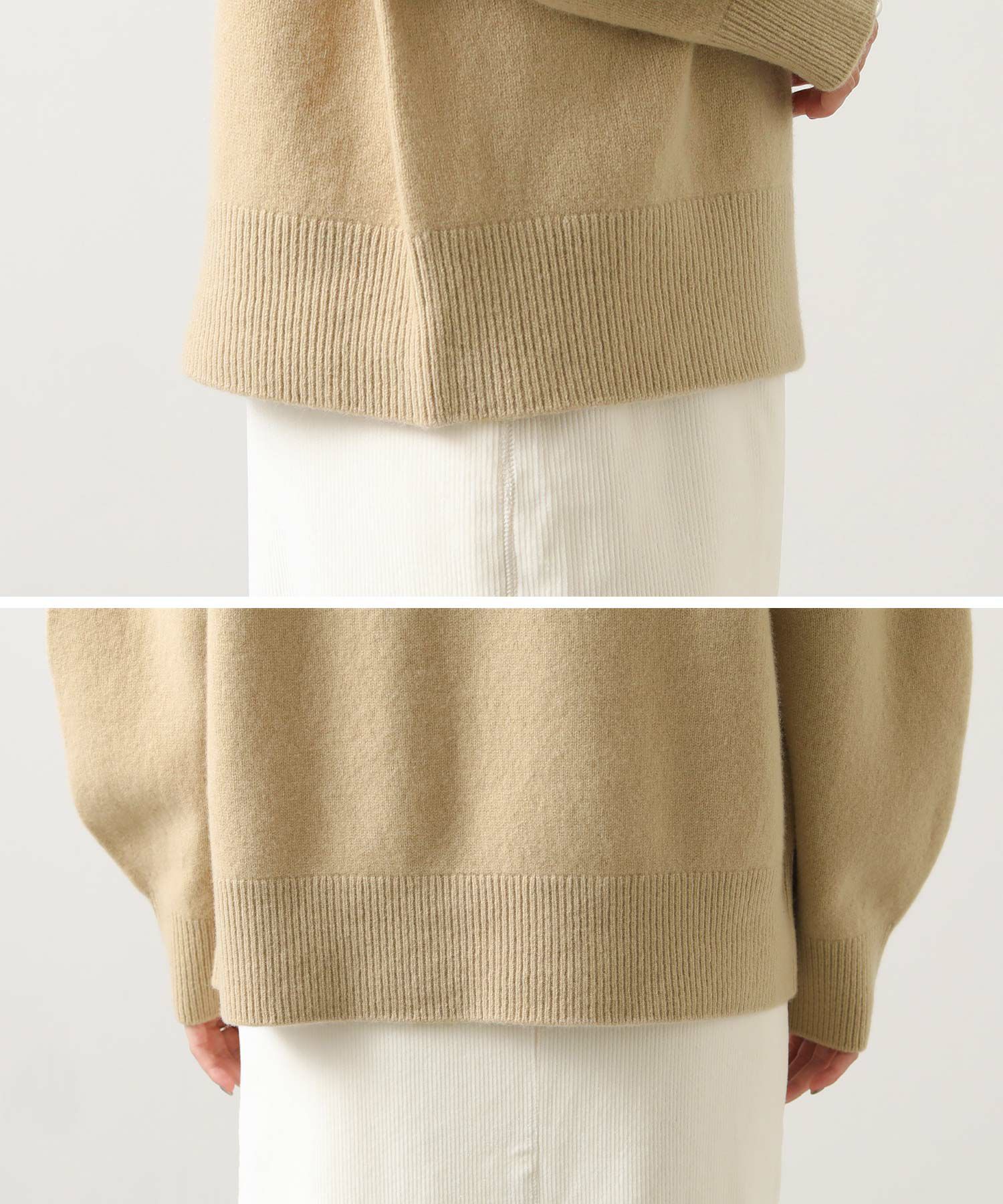 チクチク感のないカシミヤ混ならではのなめらかで心地よい素材を使用したハイネックプルオーバー。