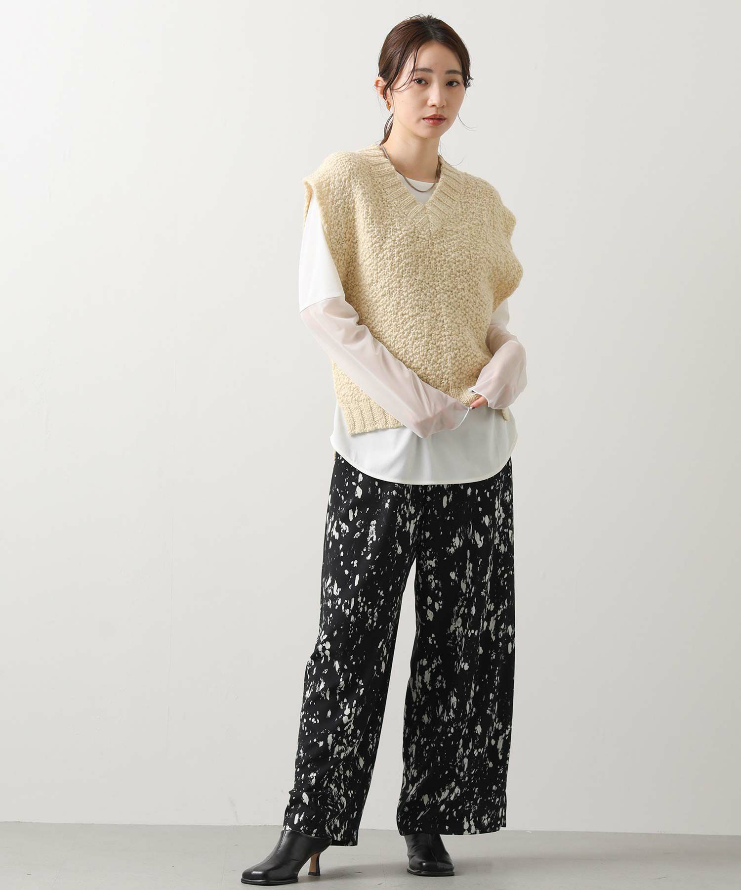 シャツやカットソー、アウターにも自由に合わせやすいアイテム。