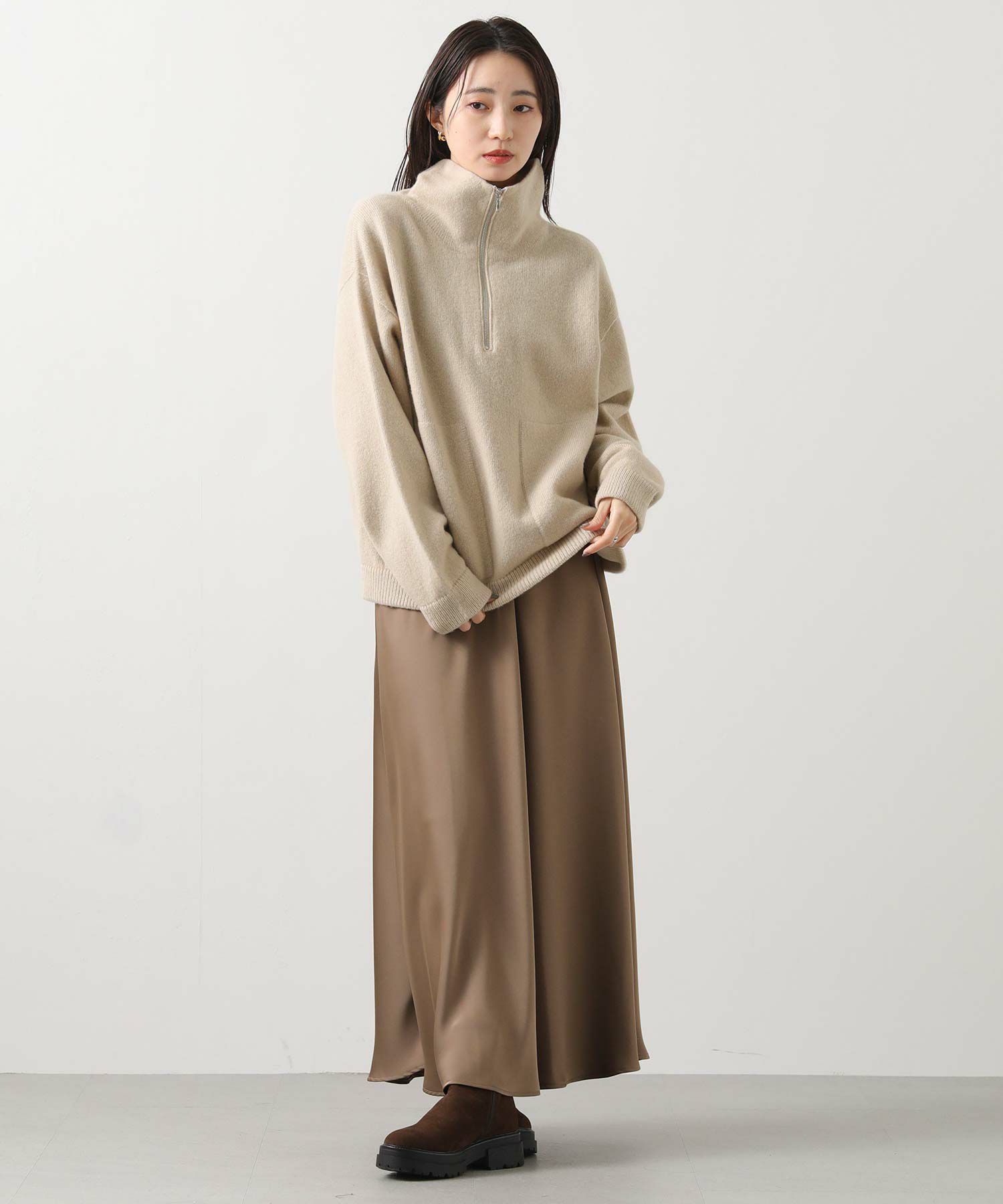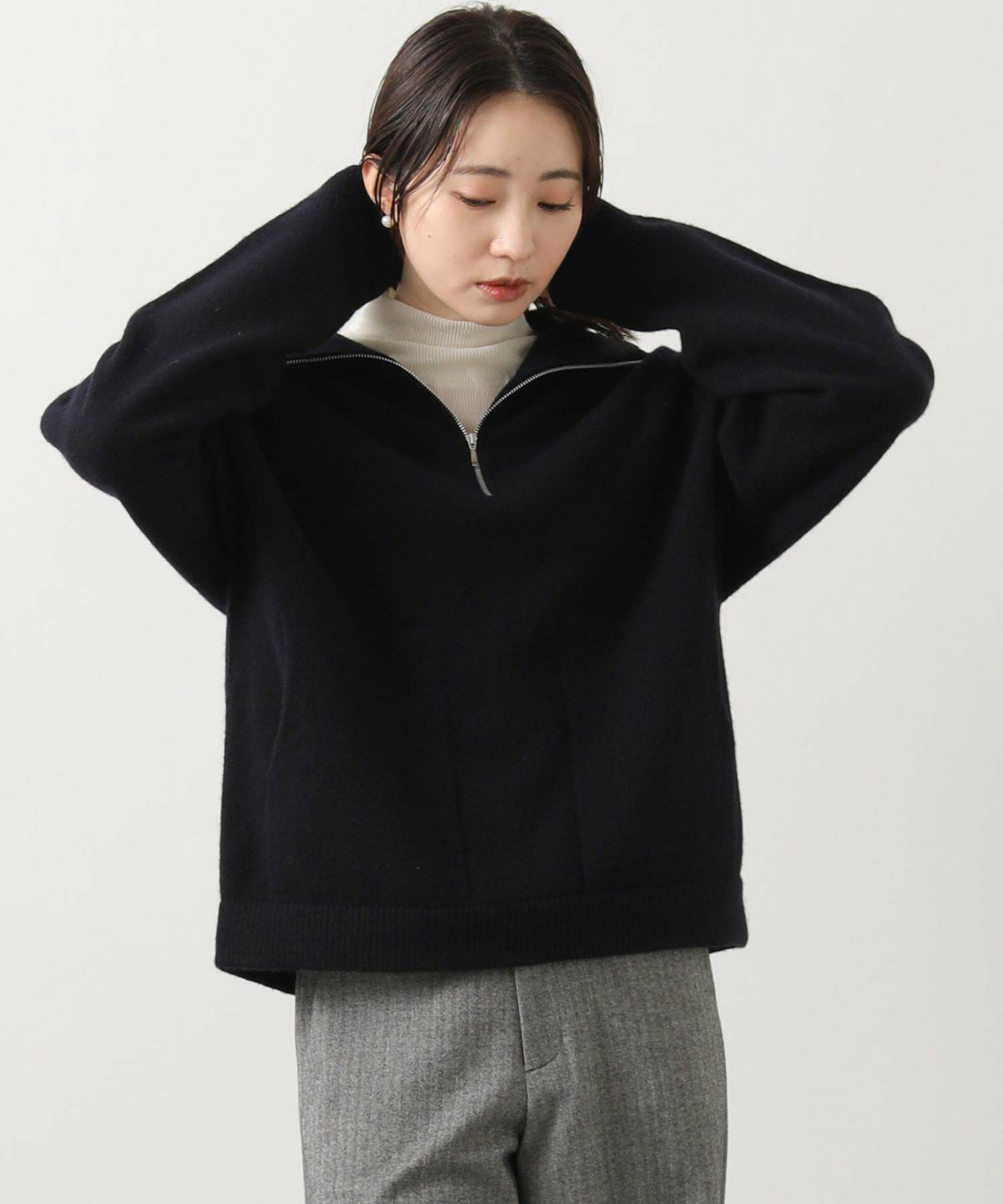 衿もとがアクセントになる旬なハーフジップデザインは、顔周りをすっきり華やかに魅せてくれます。