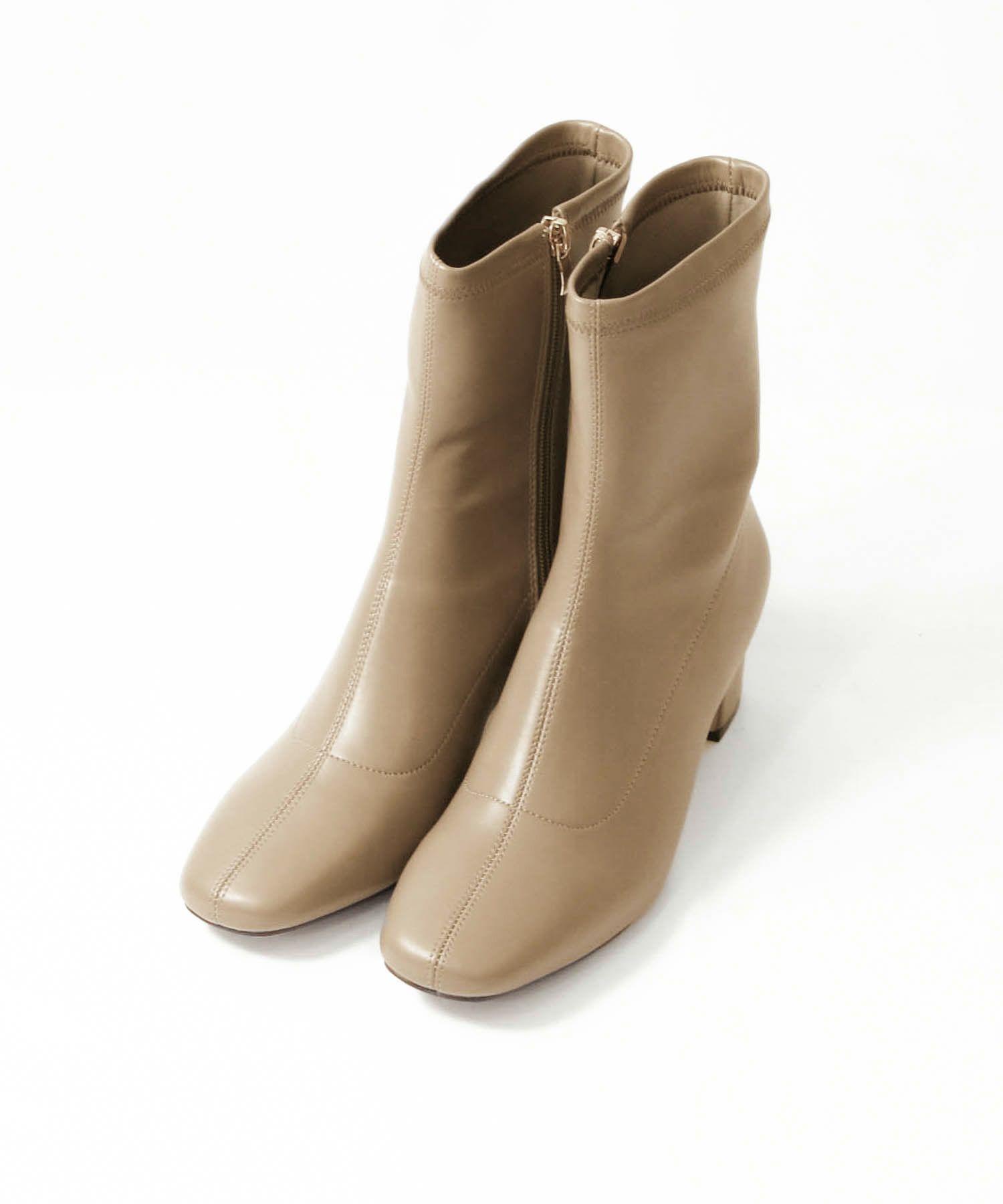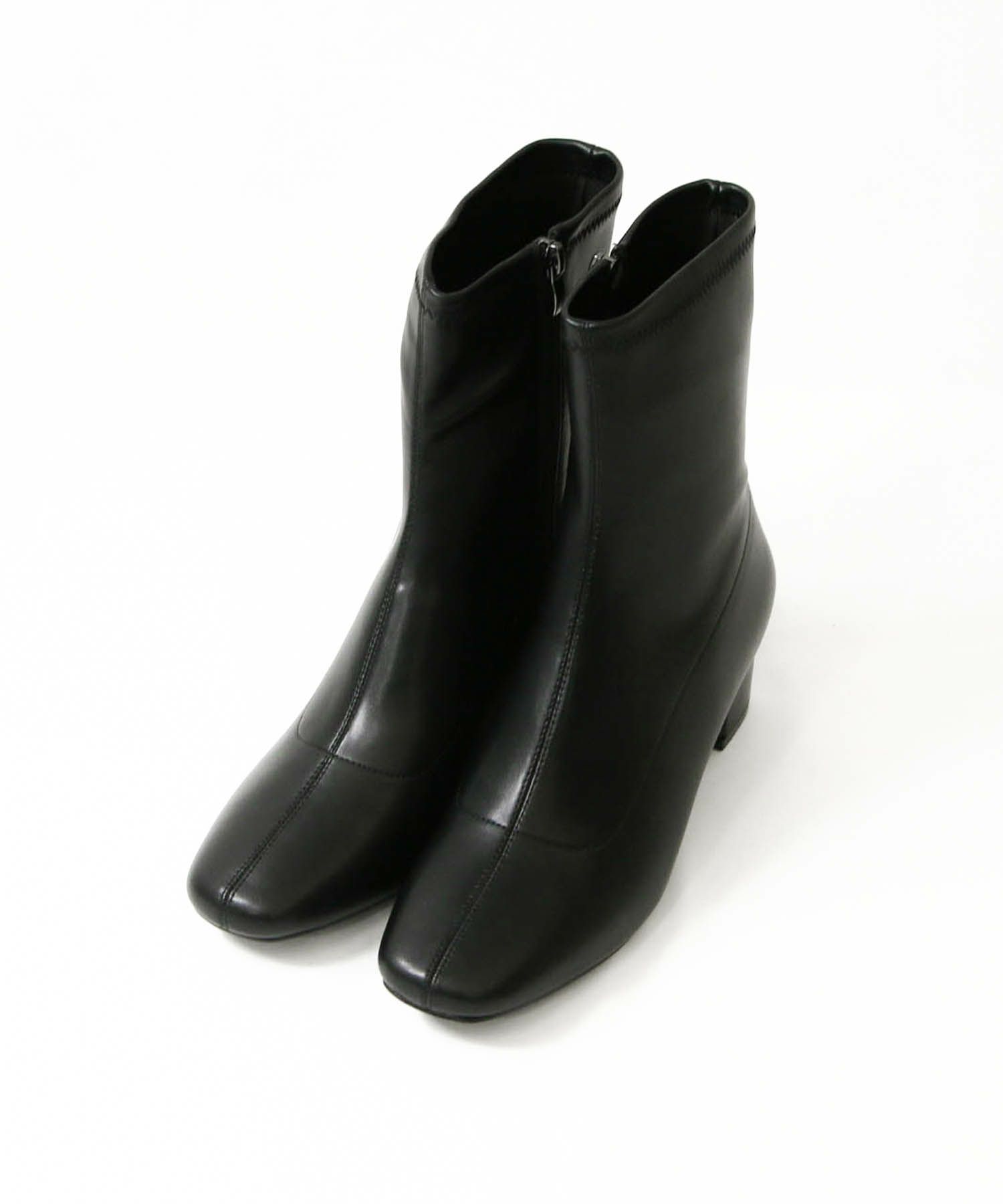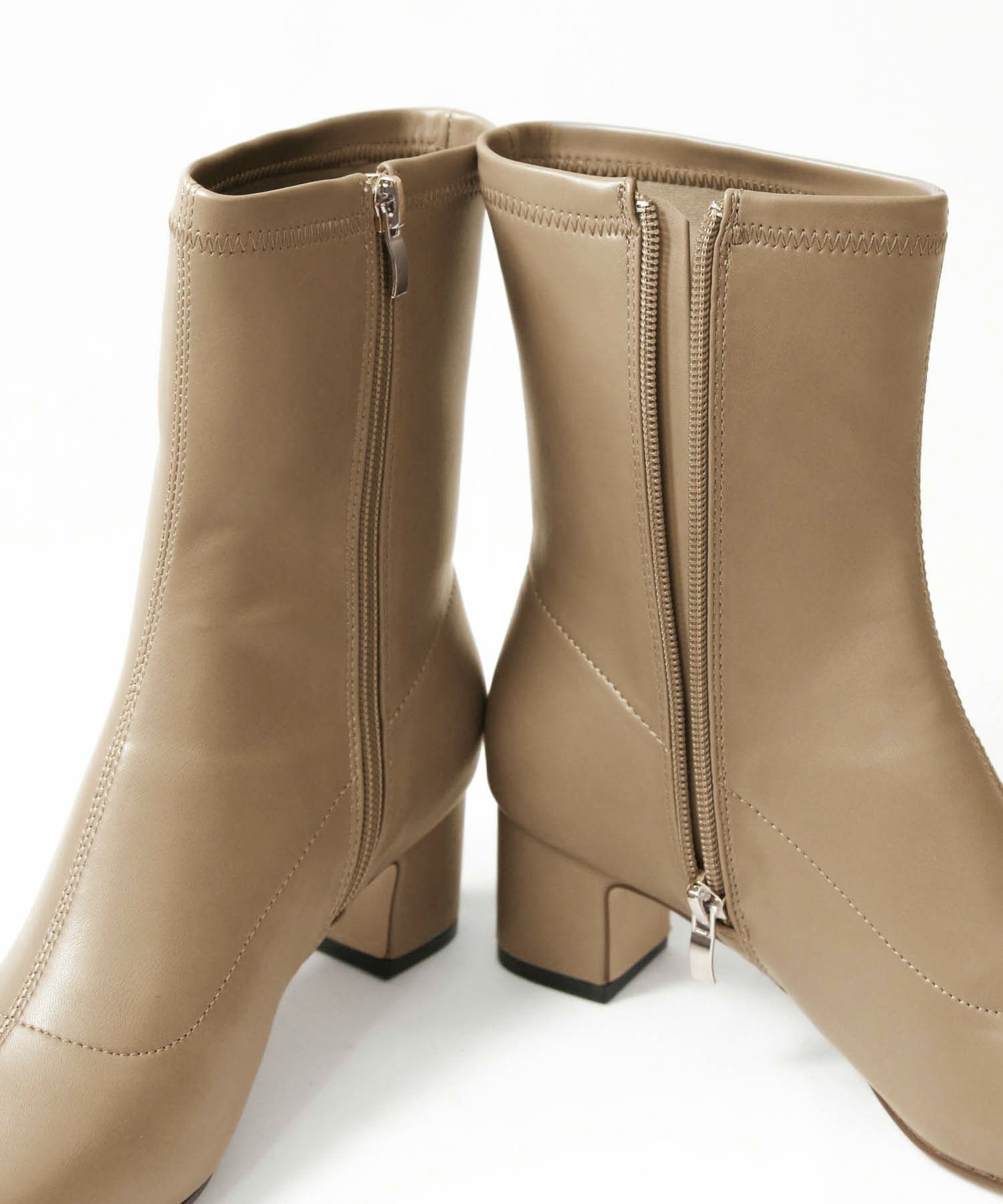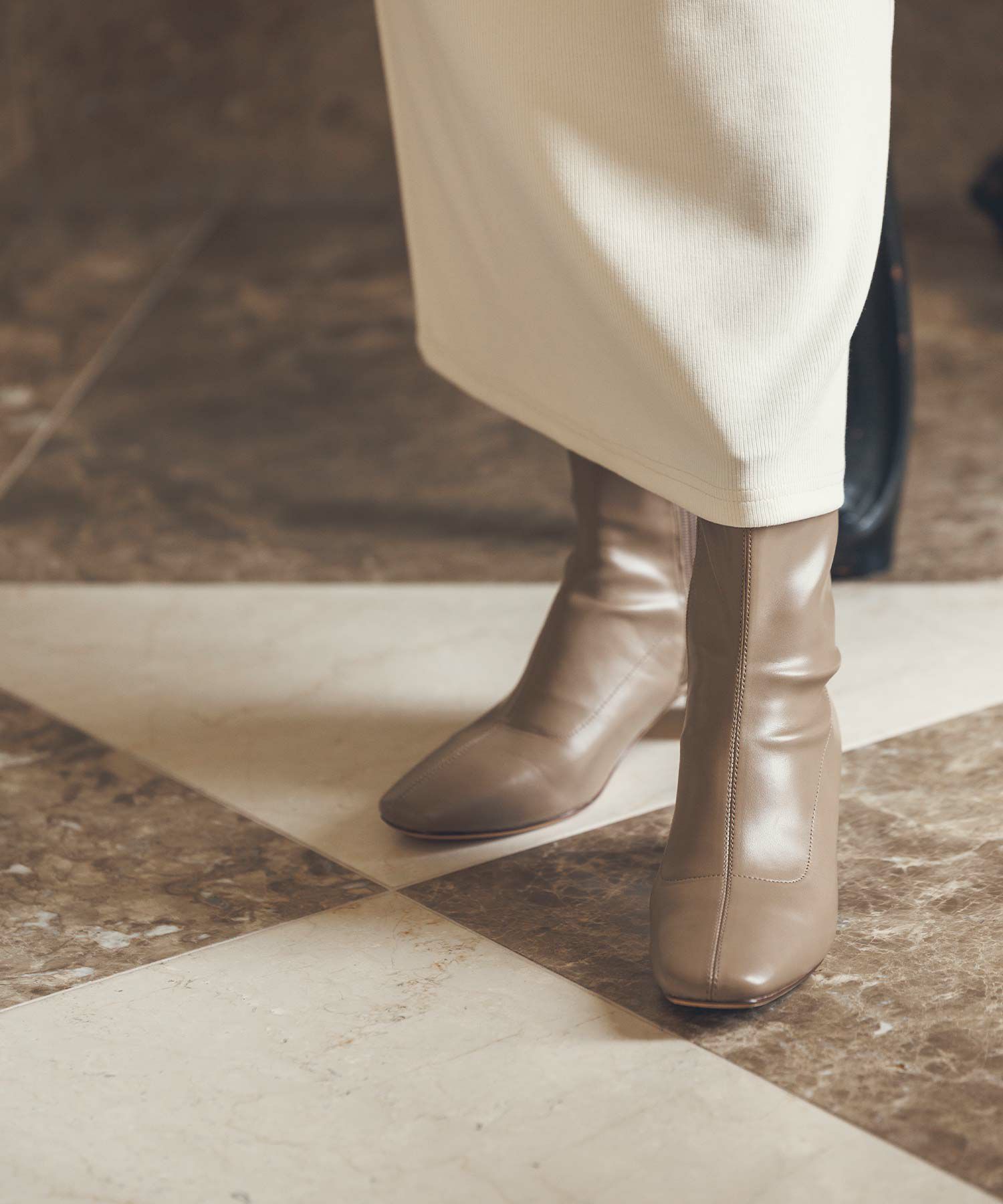 程よいボリュームのチャンキーヒールとストレッチを効かせたフィット感のある細身の筒周りが、合わせやすさと履きやすさを両立したショートブーツ。