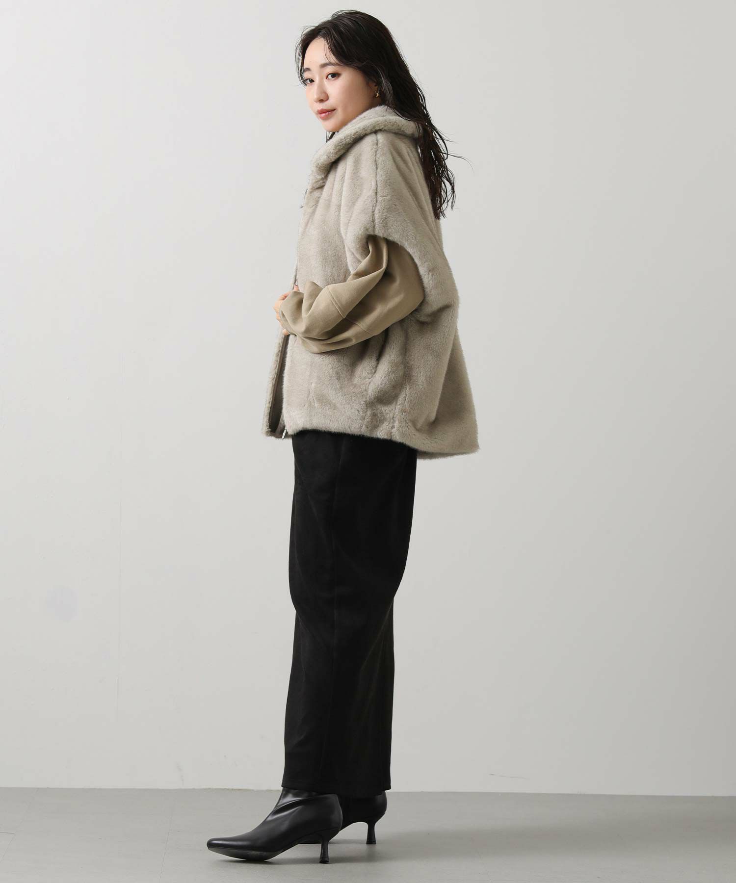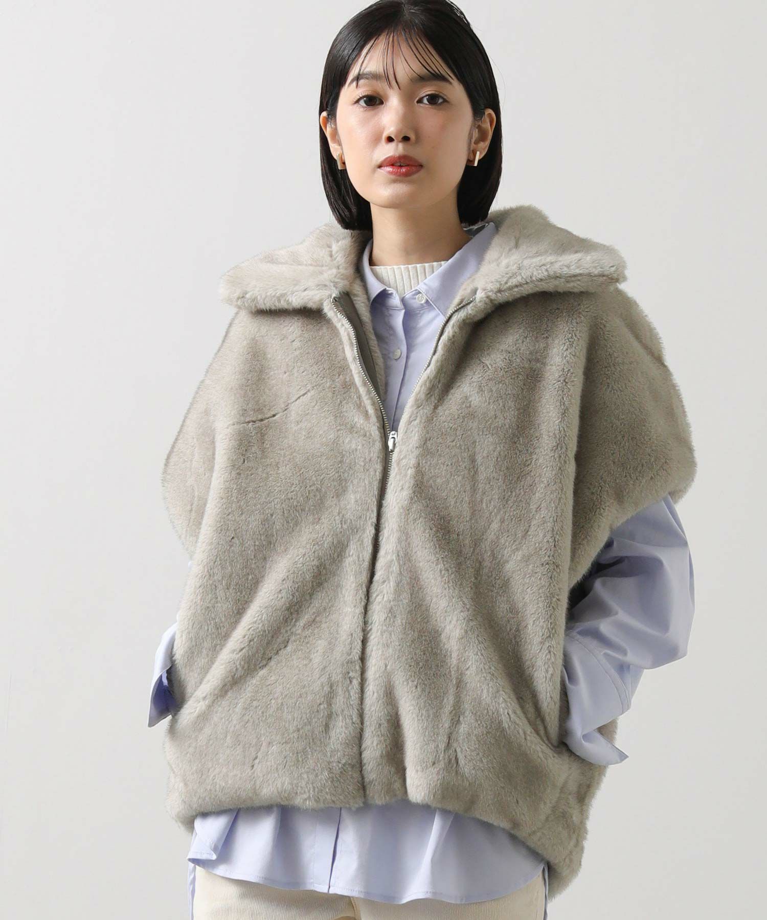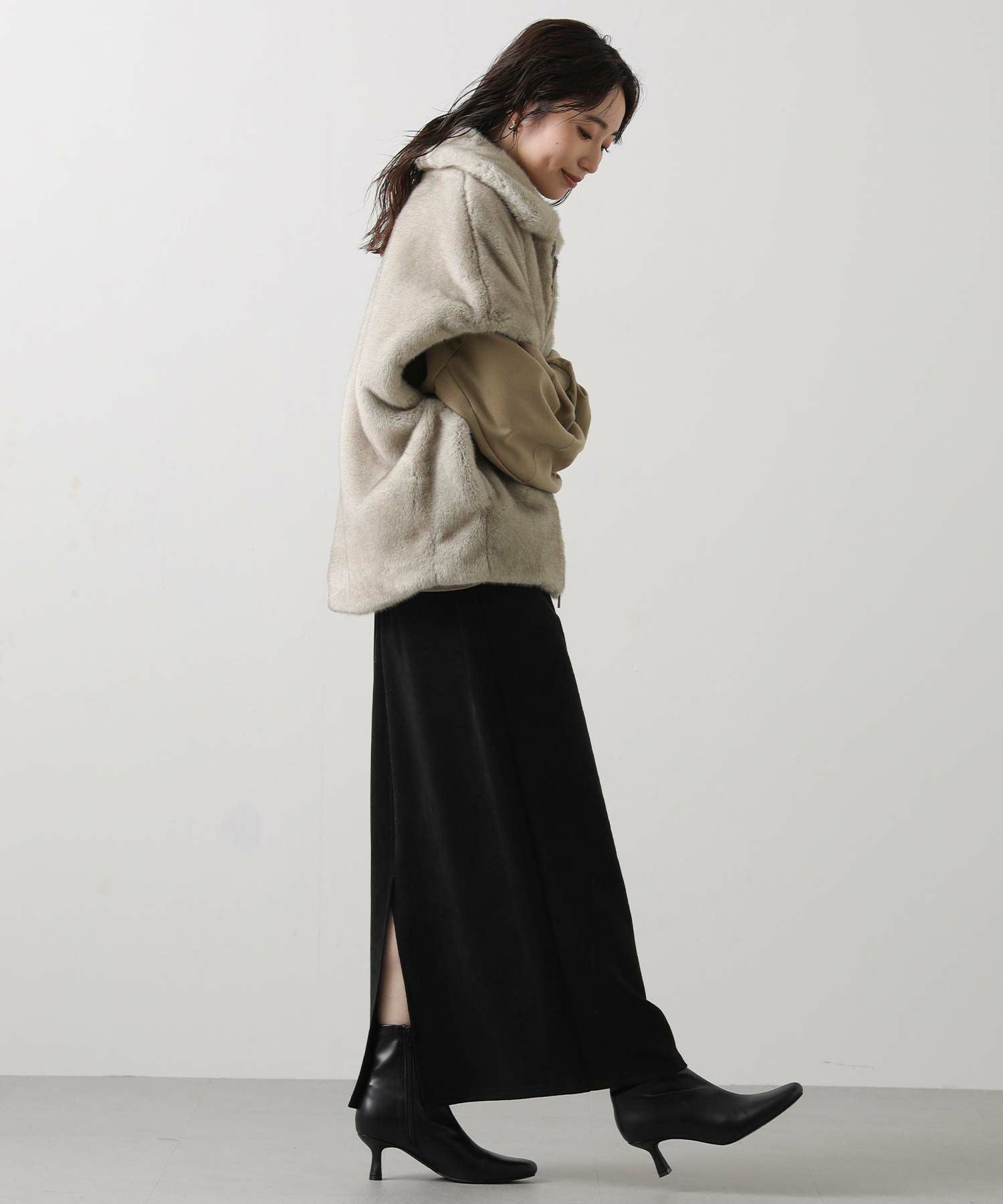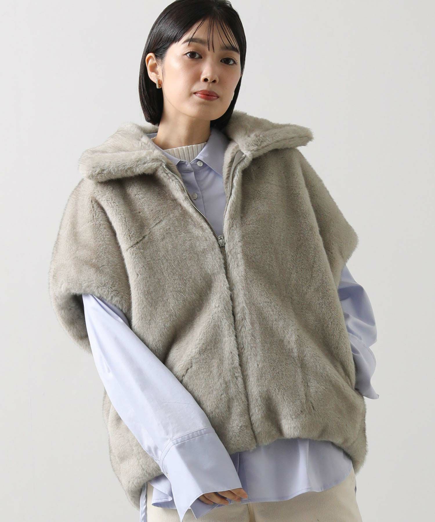 羽織るだけでこなれた印象になる、目を惹くファーベスト。