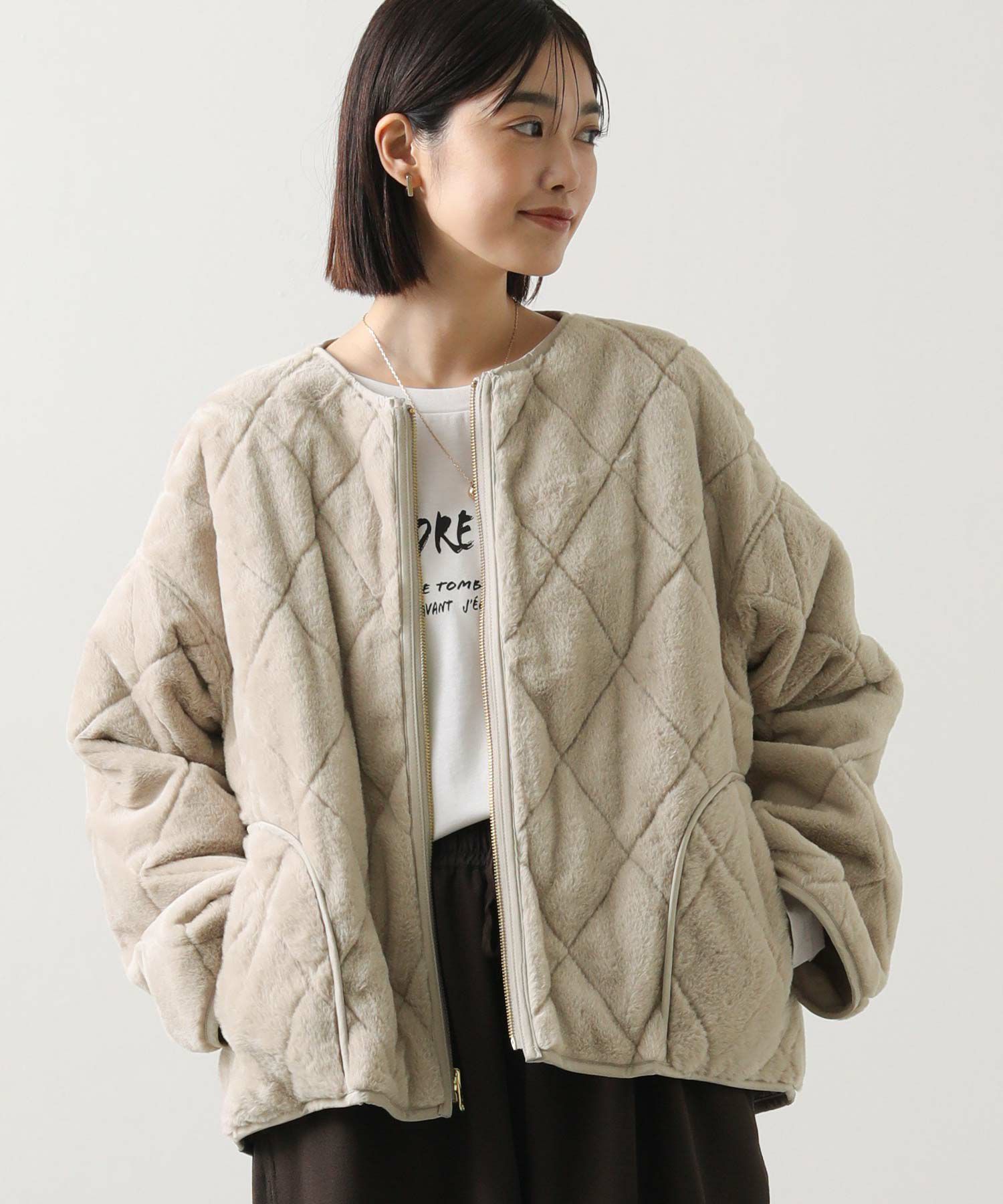 なめらかなファー素材とキルティング素材がリバーシブルになった2WAYブルゾン。