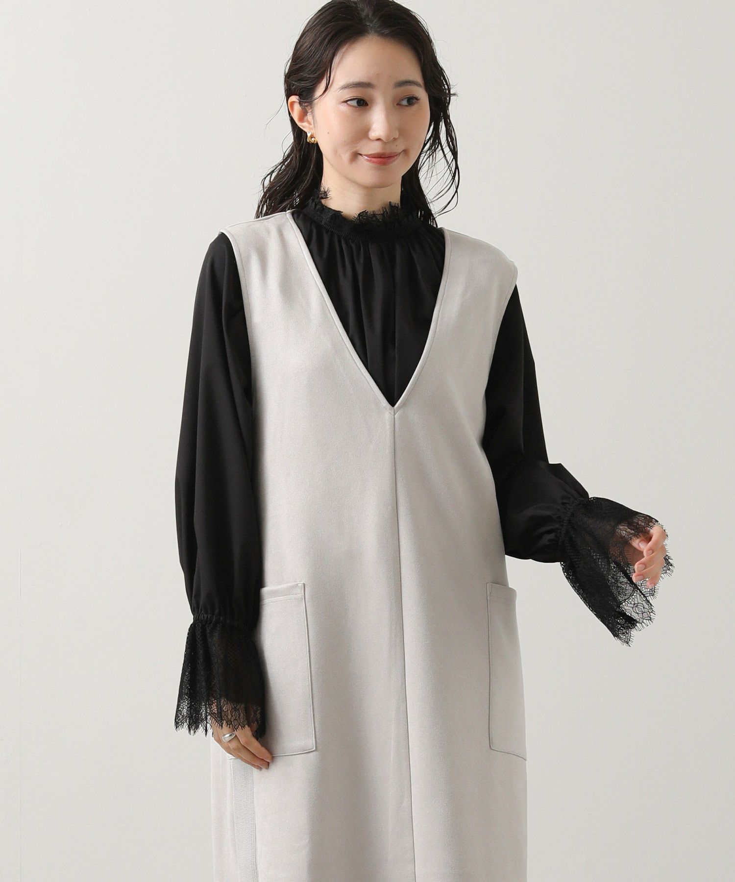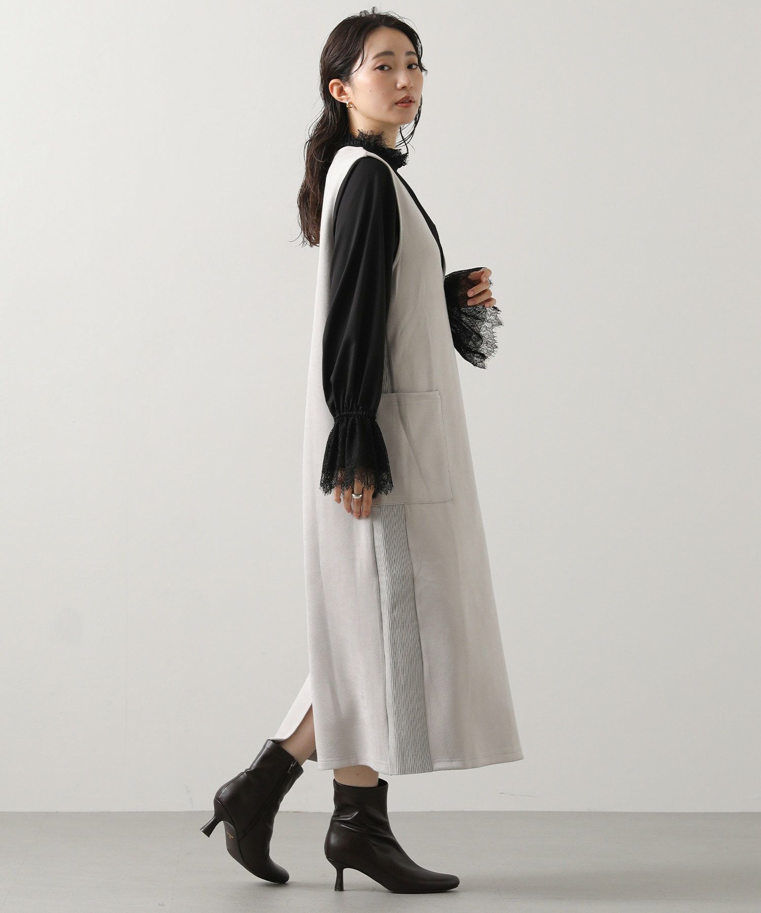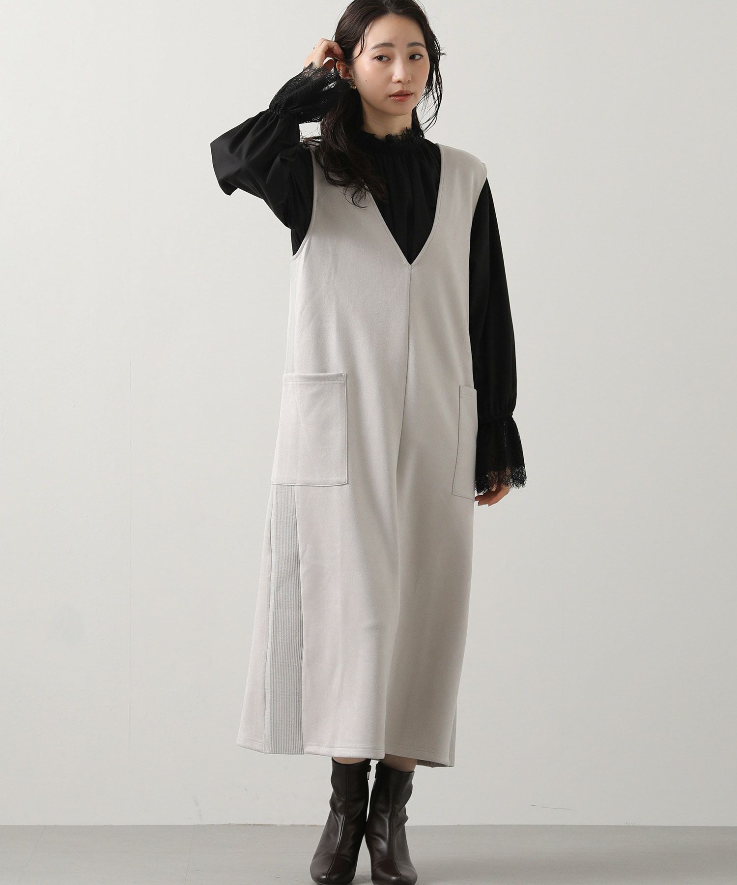 シーズンムードを高めてくれる、スエードライク素材のワンピース。