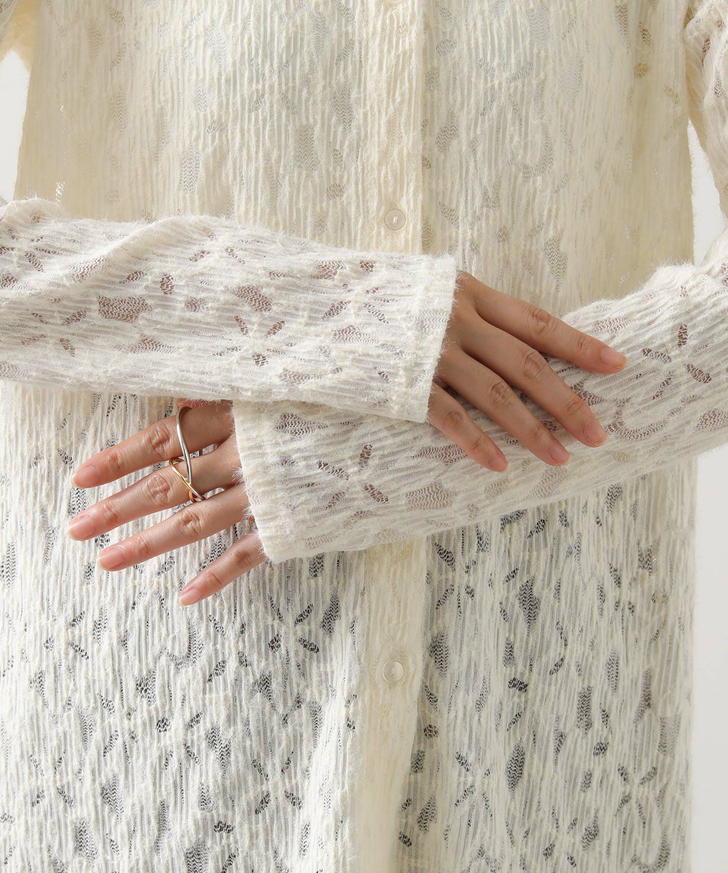 総レースで仕立てたシャツ。