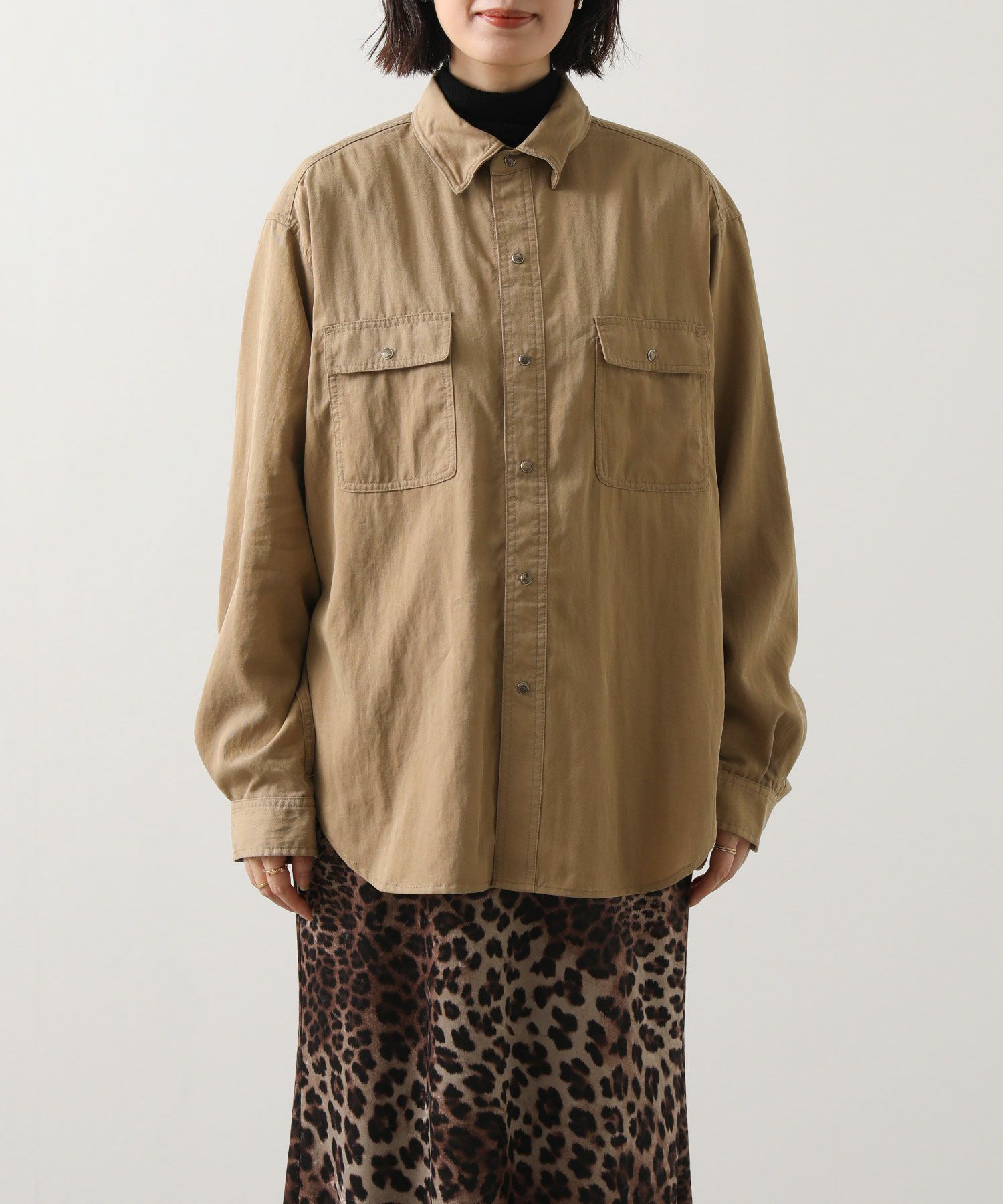 ヒップまで隠れる着丈で、主役にも脇役にもなれる万能シャツです。