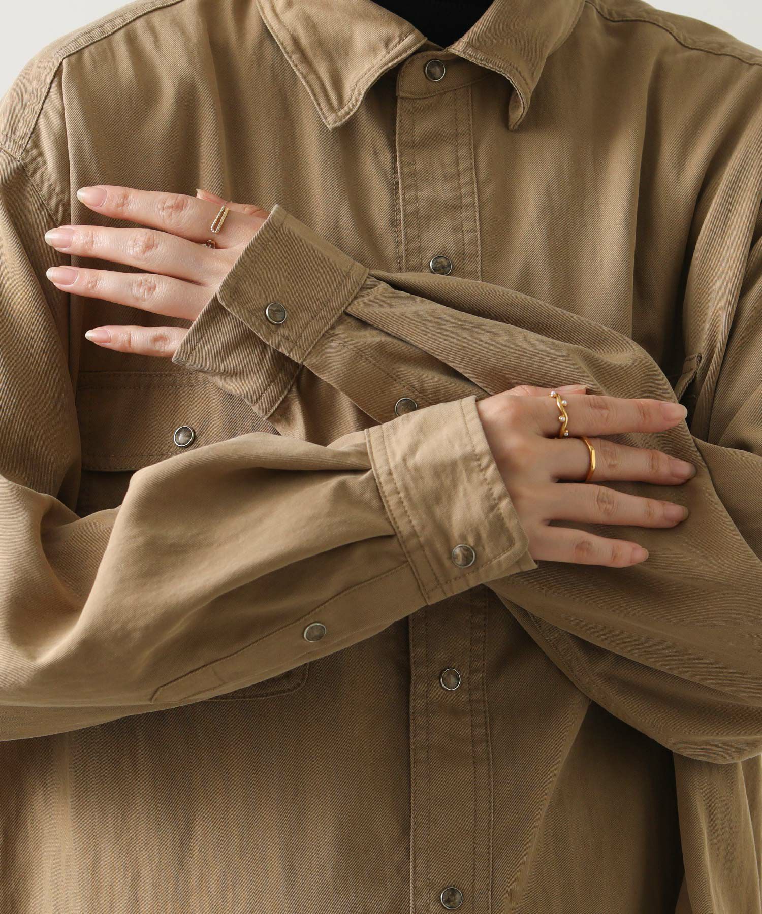 ※着用画像は撮影状況、光の当たり具合で色みが違って見える場合がございます。実際の色みについては、画像一覧の最後に掲載している詳細画像をご参照ください。