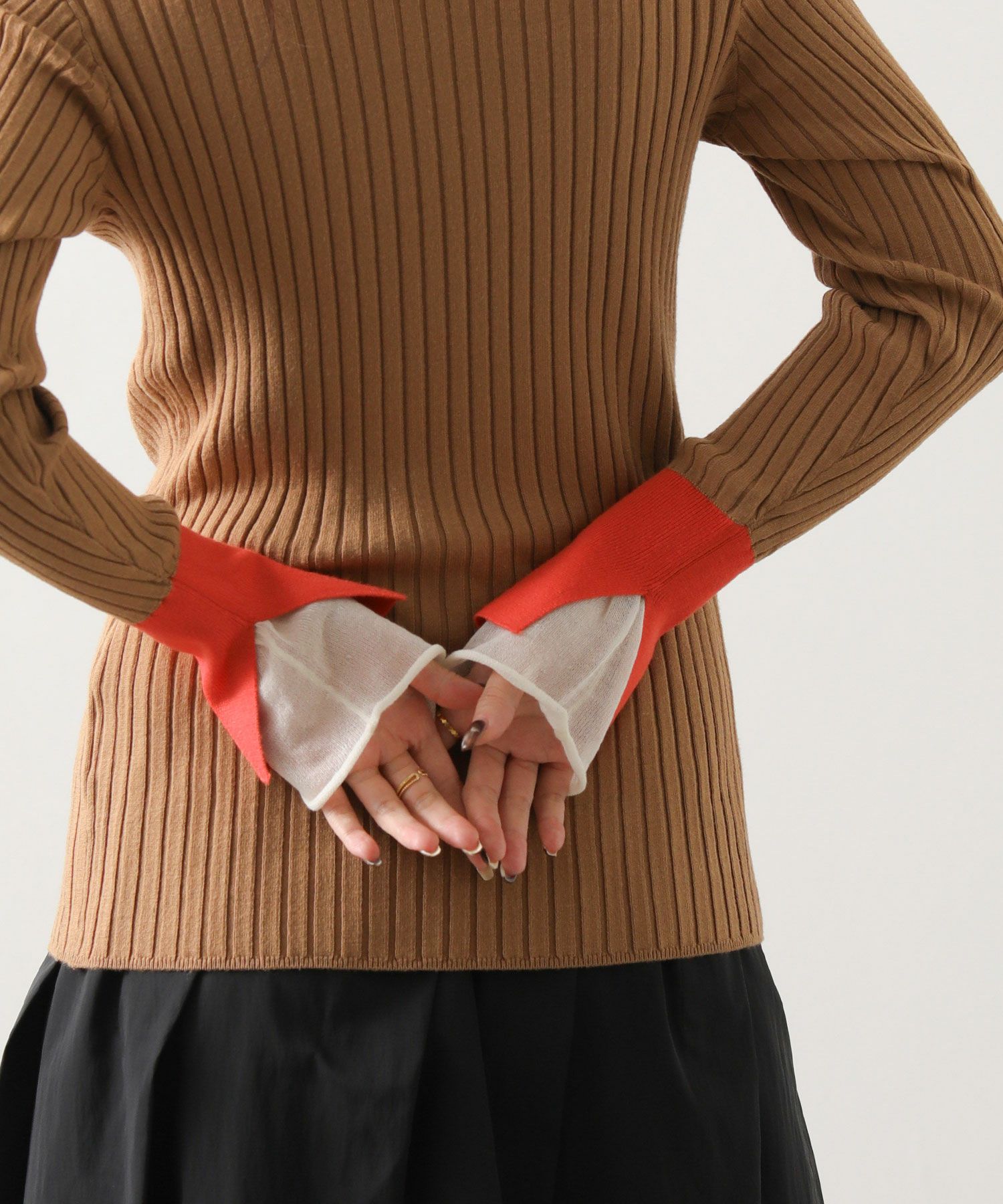 ※着用画像は撮影状況、光の当たり具合で色みが違って見える場合がございます。実際の色みについては、画像一覧の最後に掲載している詳細画像をご参照ください。