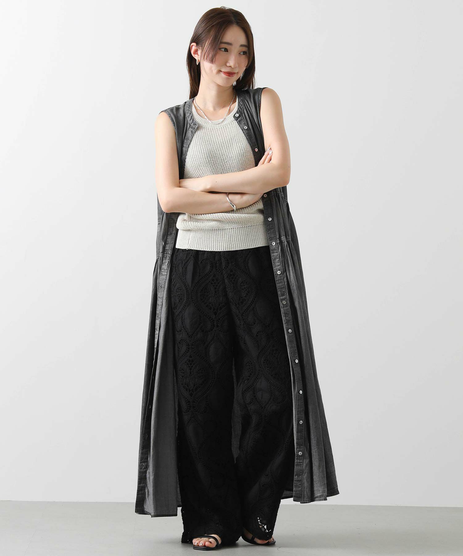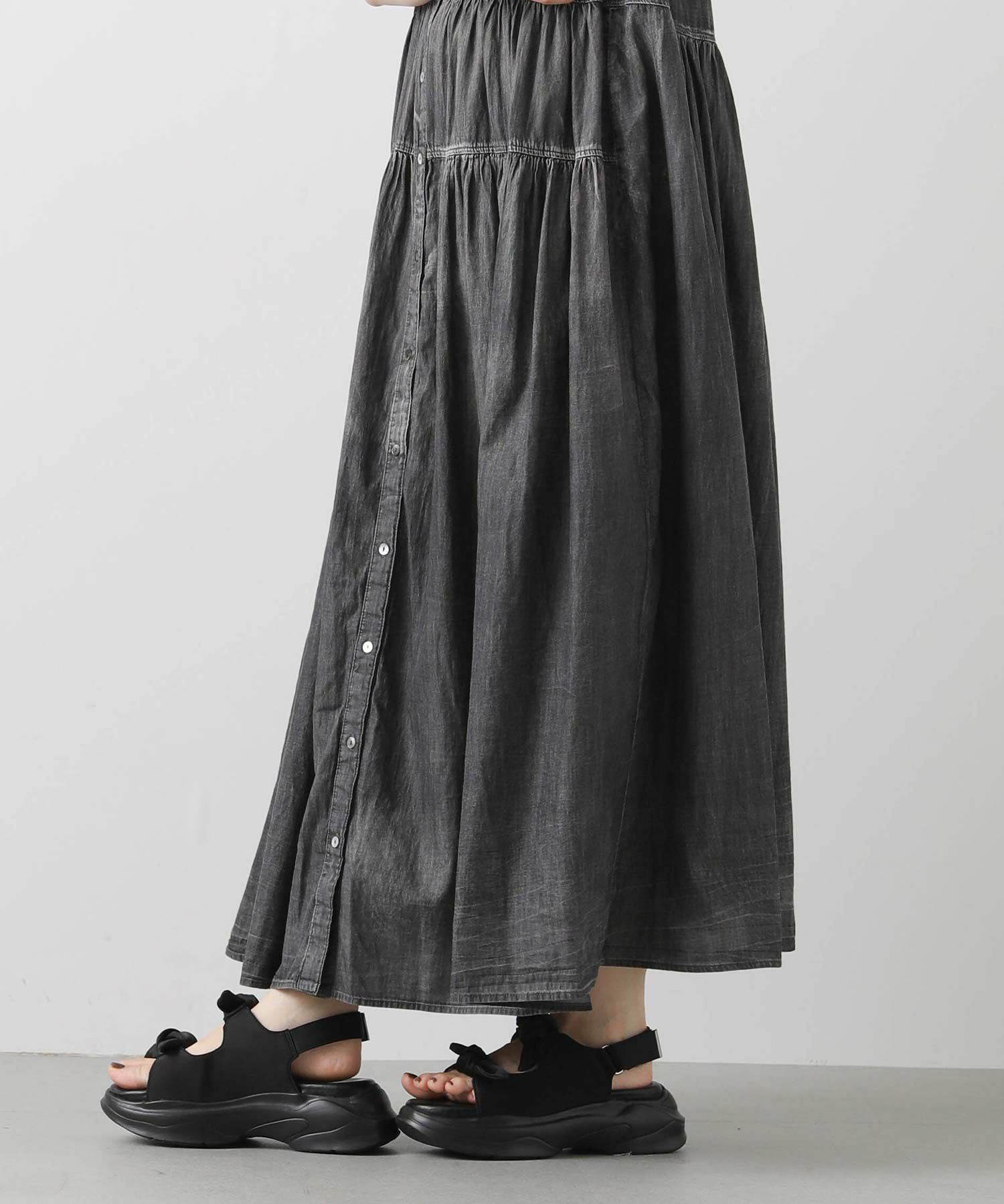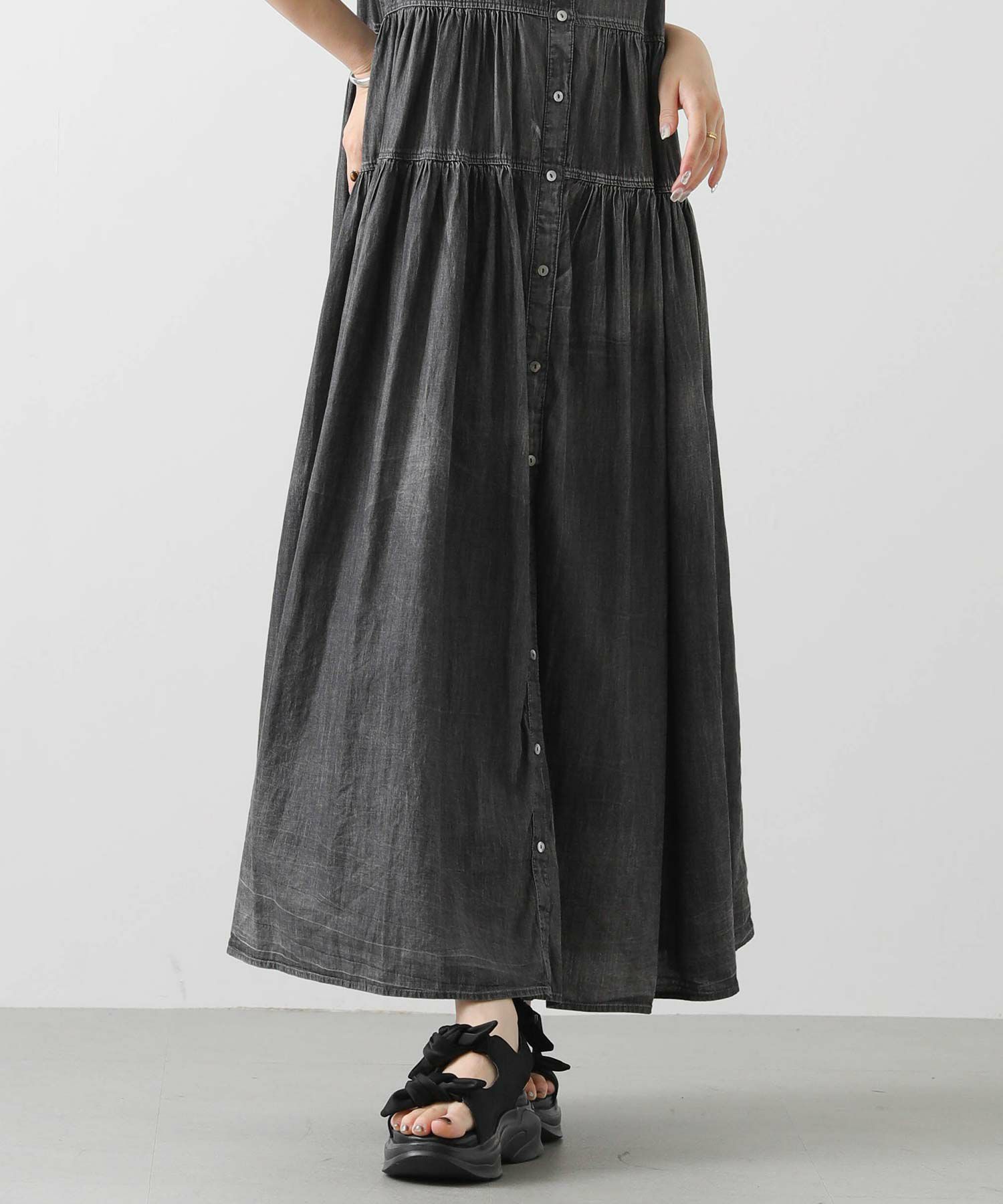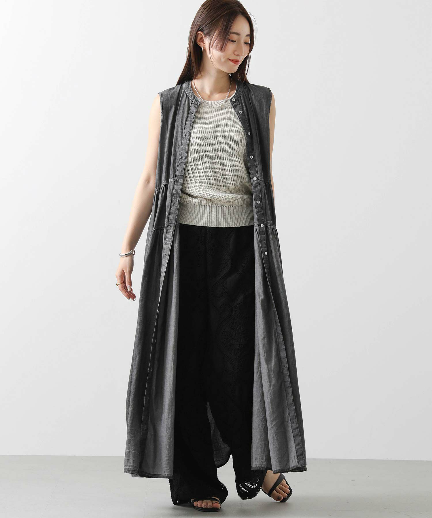 色落ち加工を施して、こなれ感のあるノースリーブティアードワンピに仕上げました。