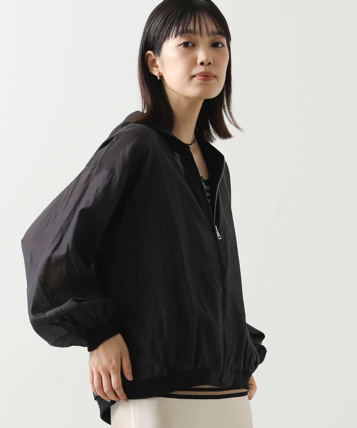 カジュアルなイメージのパーカーですが、上品な透け感の素材でキレイめコーデにも合わせやすい1枚。