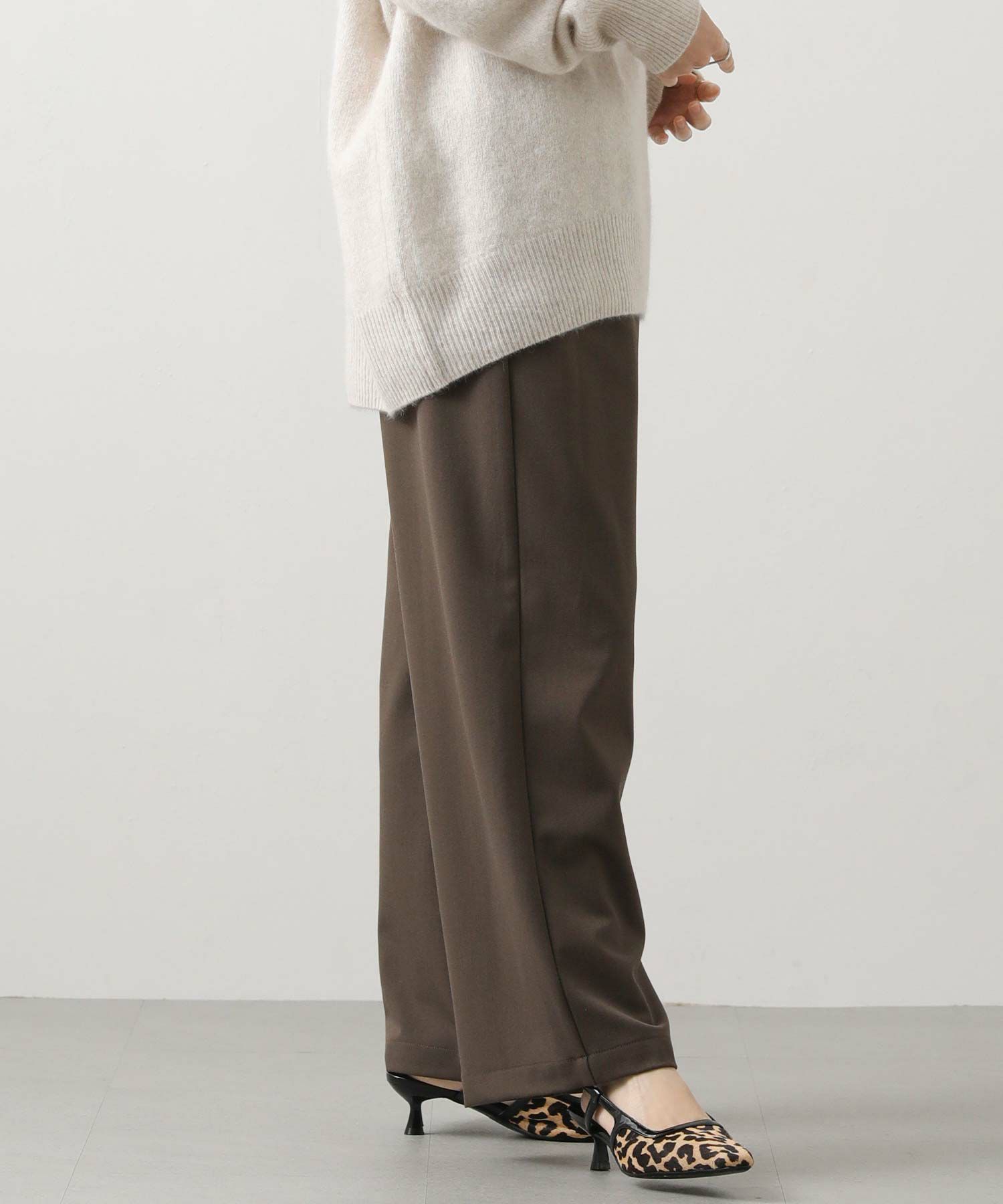 柔らかな肌触りで上品な印象の、程よい落ち感のある生地を使用したイージーパンツ。