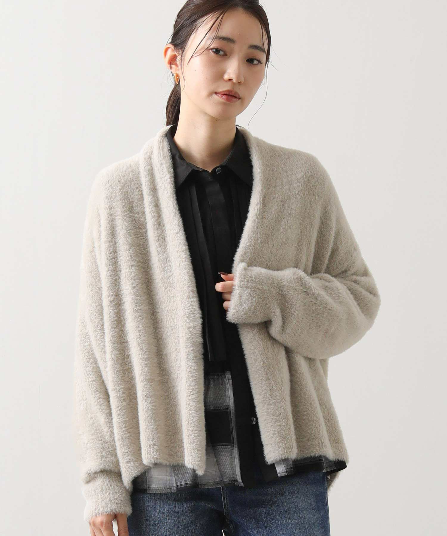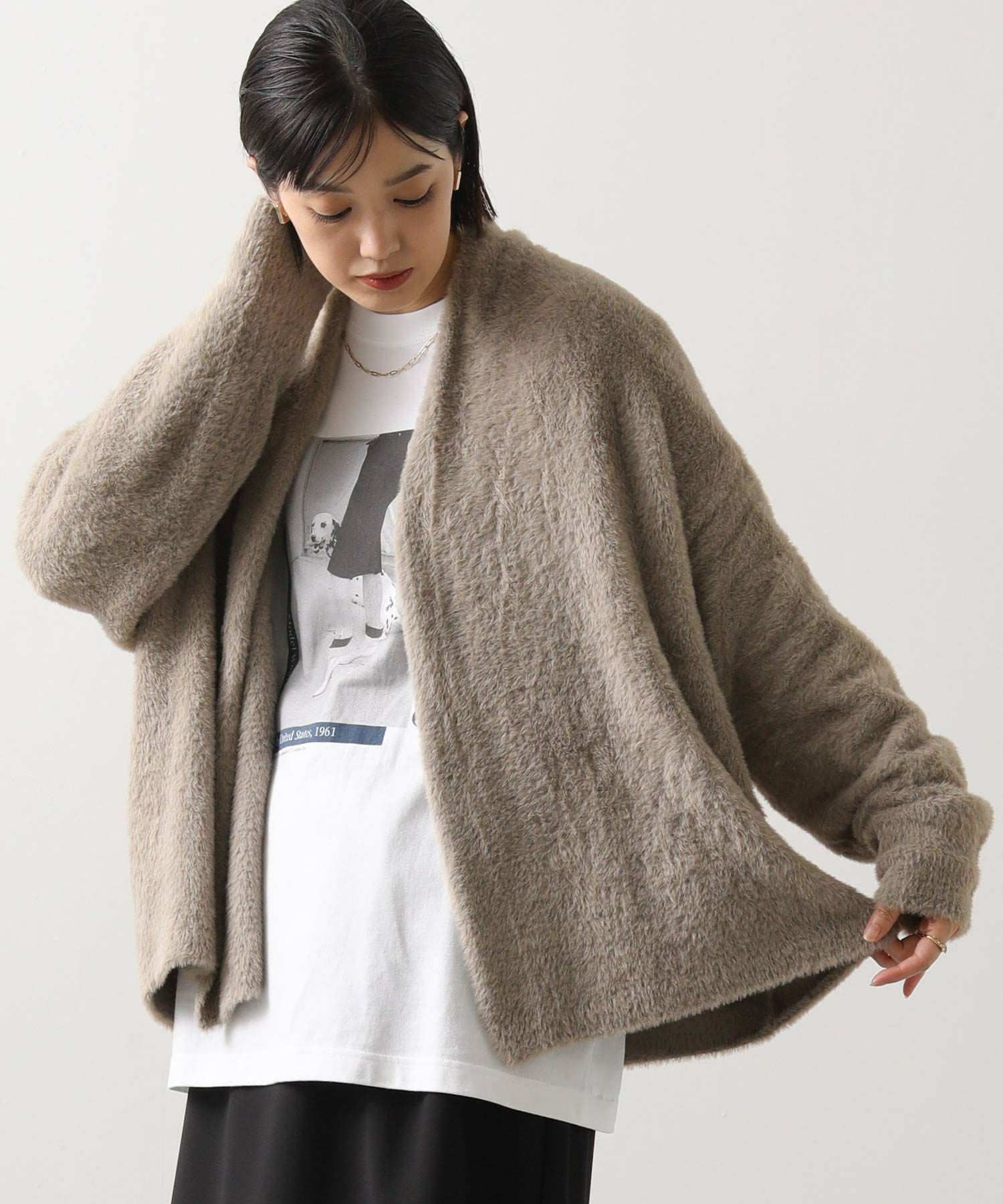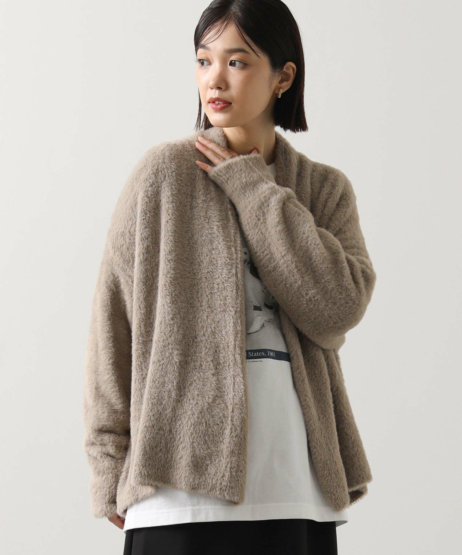 さらっと着るだけでこなれるボタンレスデザインは、1枚で存在感がありおしゃれ度アップ!