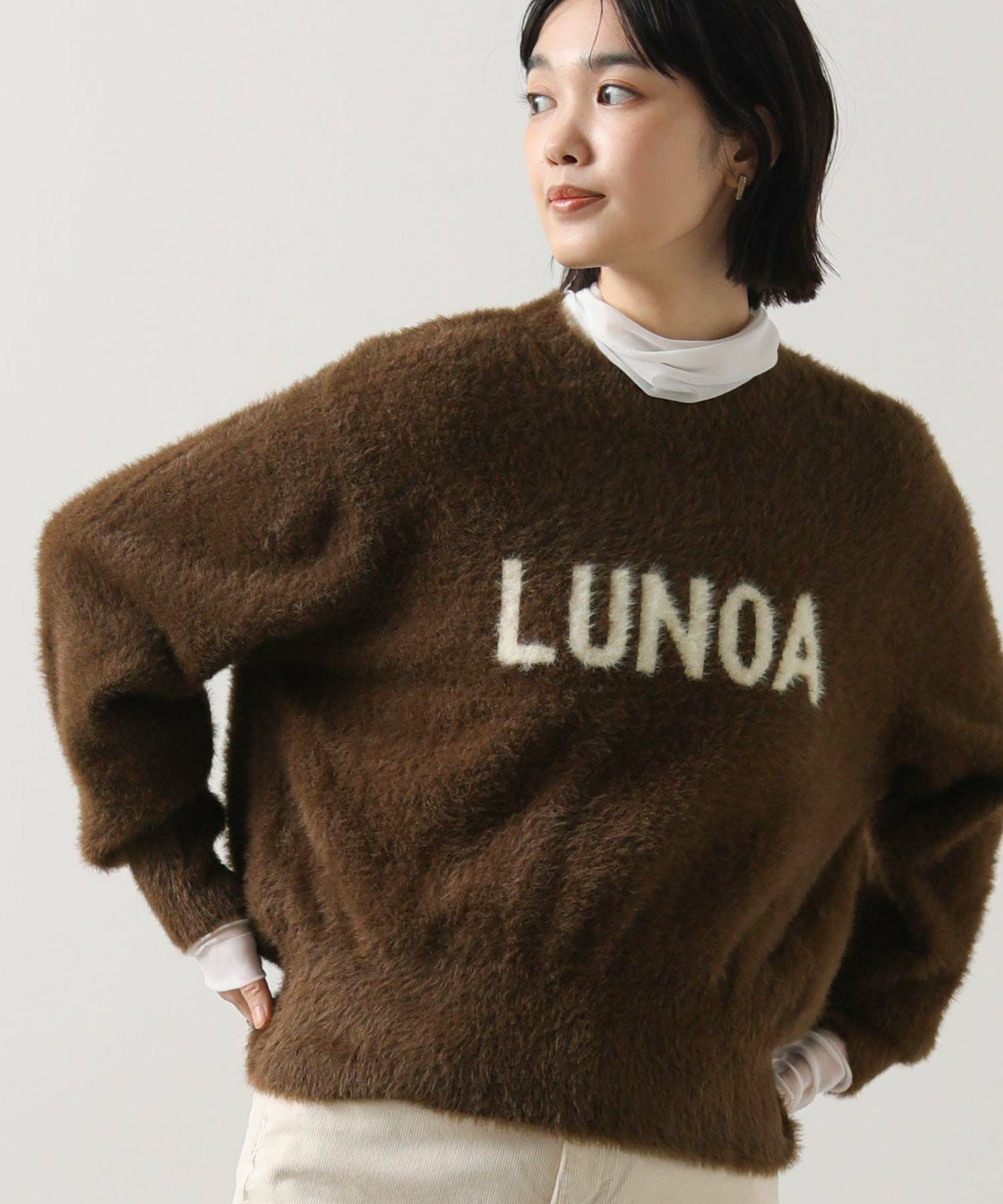 シャギーのロゴニットプルオーバー。