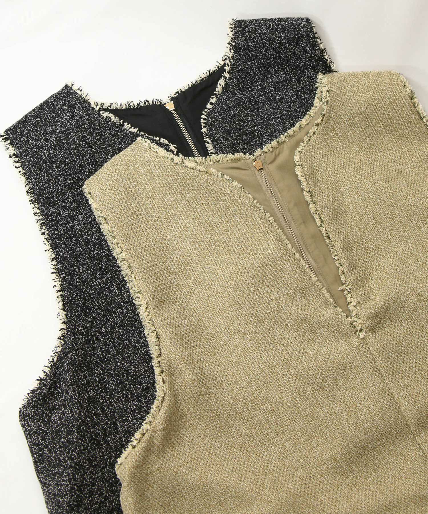 ブラウスやニットなどとレイヤードしやすい大きめアームホールにしています。