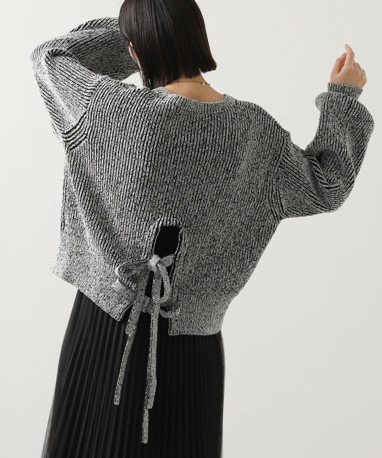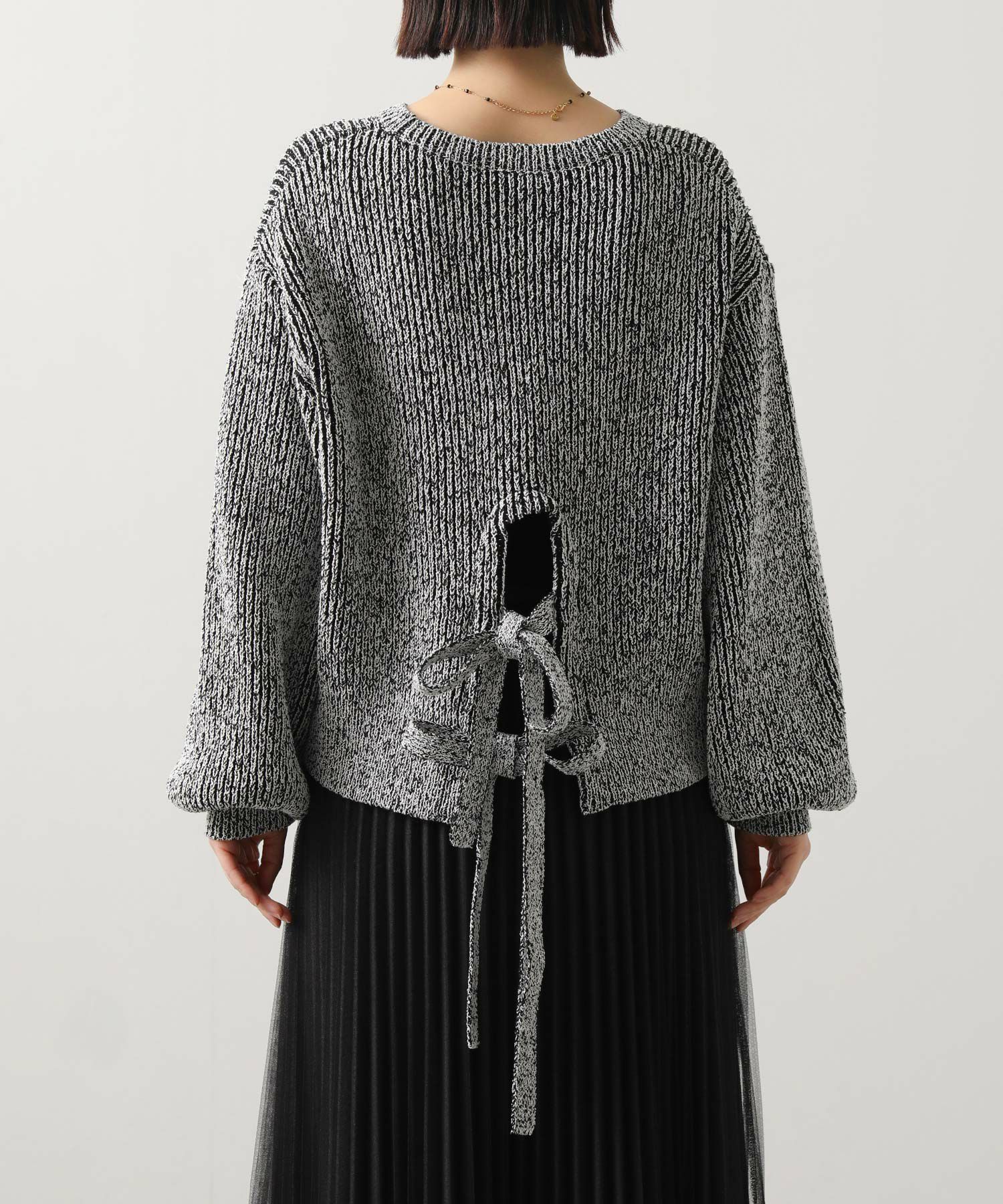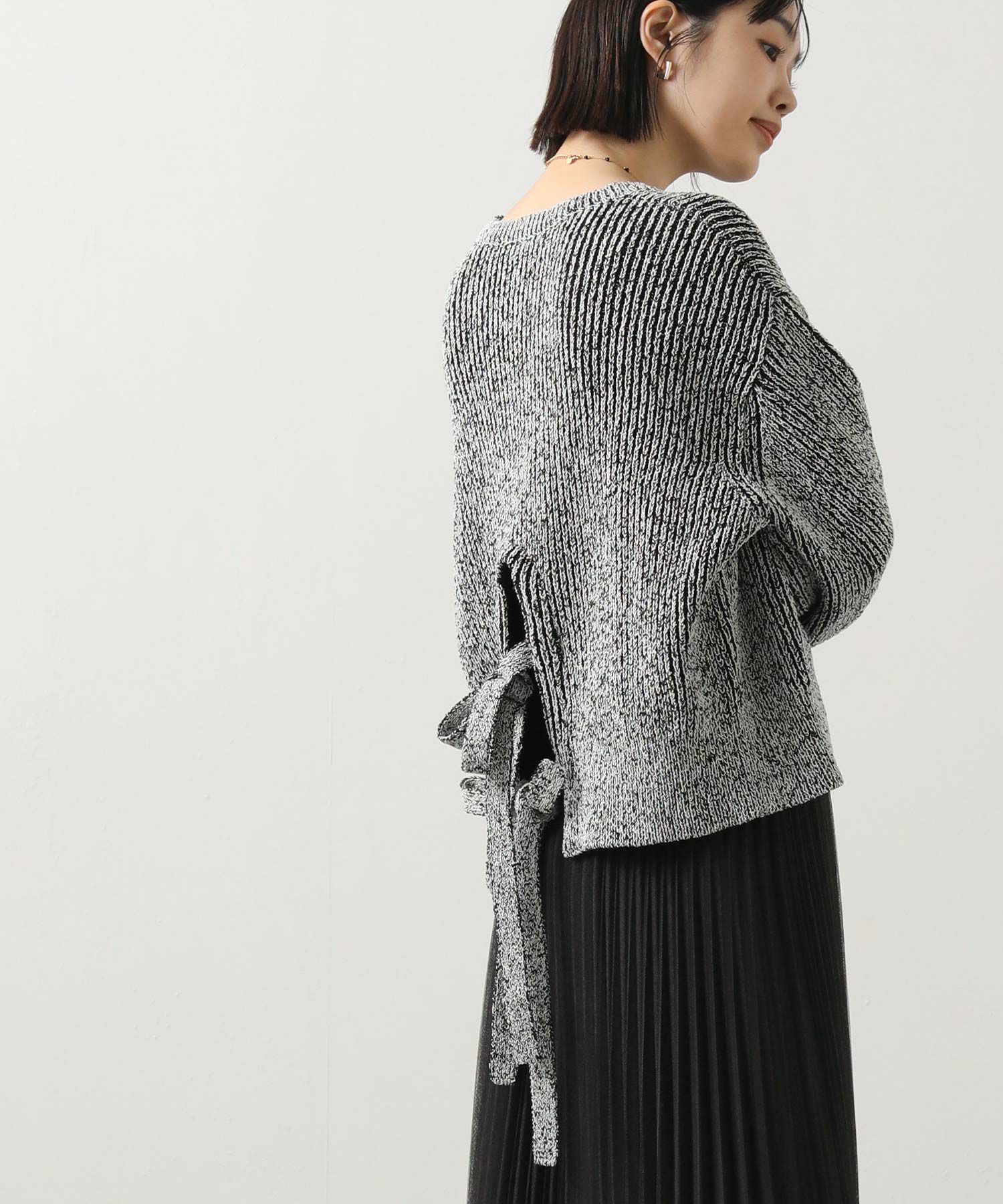 後ろ裾に施された同素材のリボンがアクセントになった後ろ姿まで可愛いアイテム。