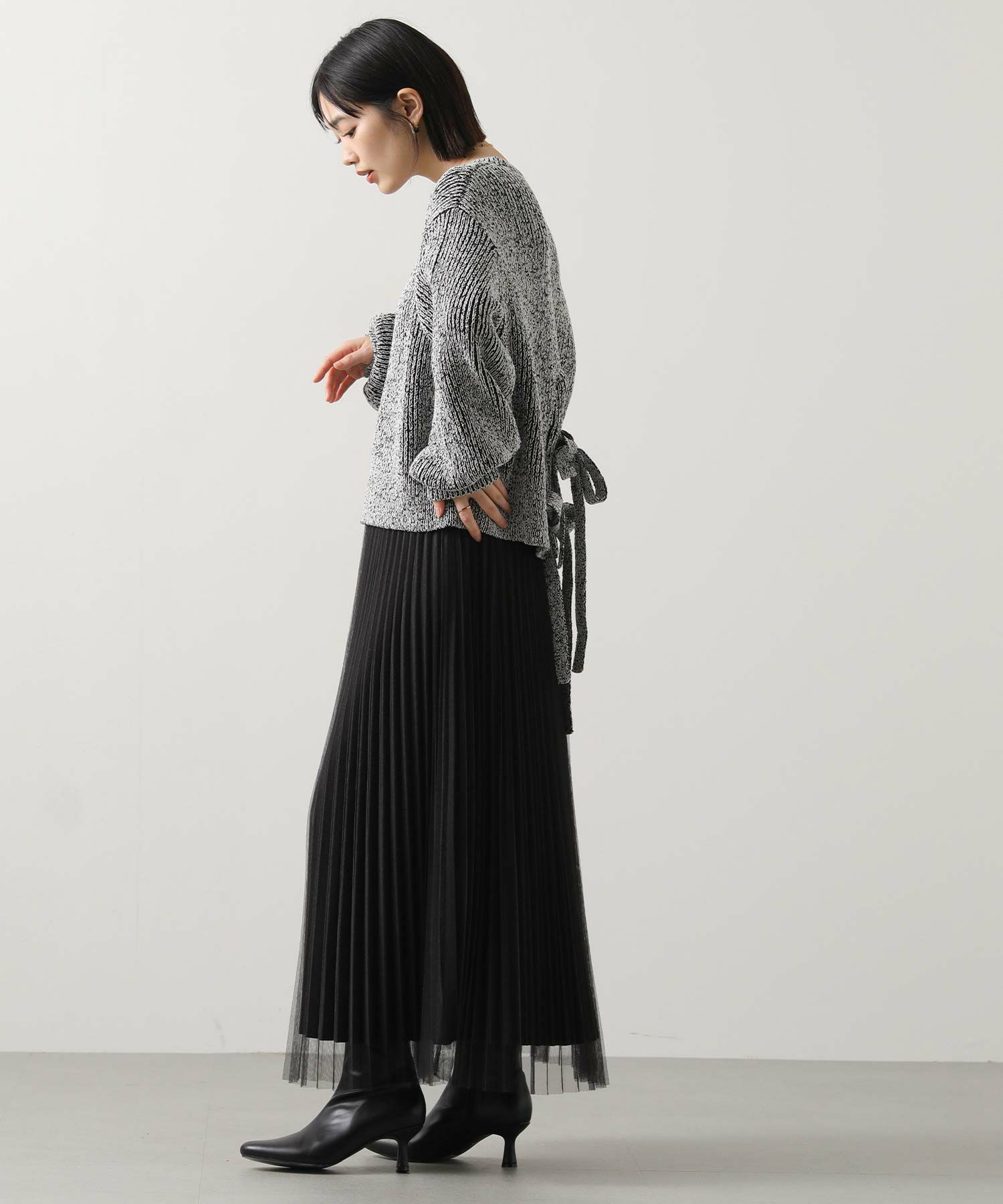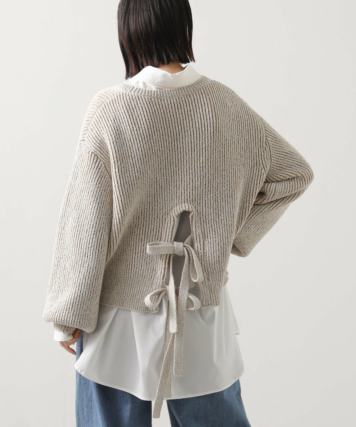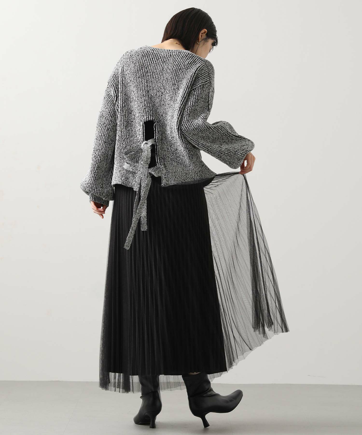後ろ裾に施された同素材のリボンがアクセントになった後ろ姿まで可愛いアイテム。