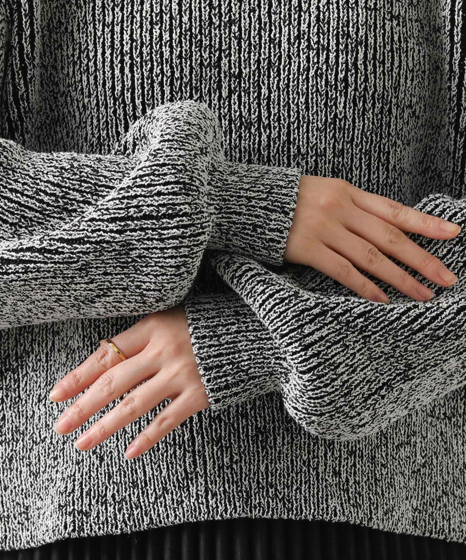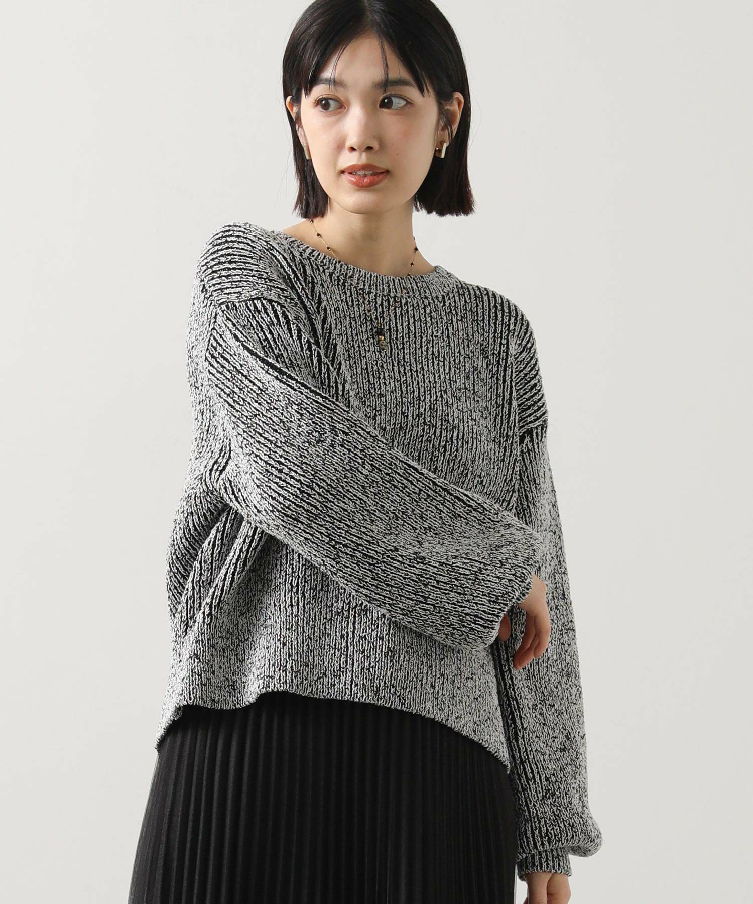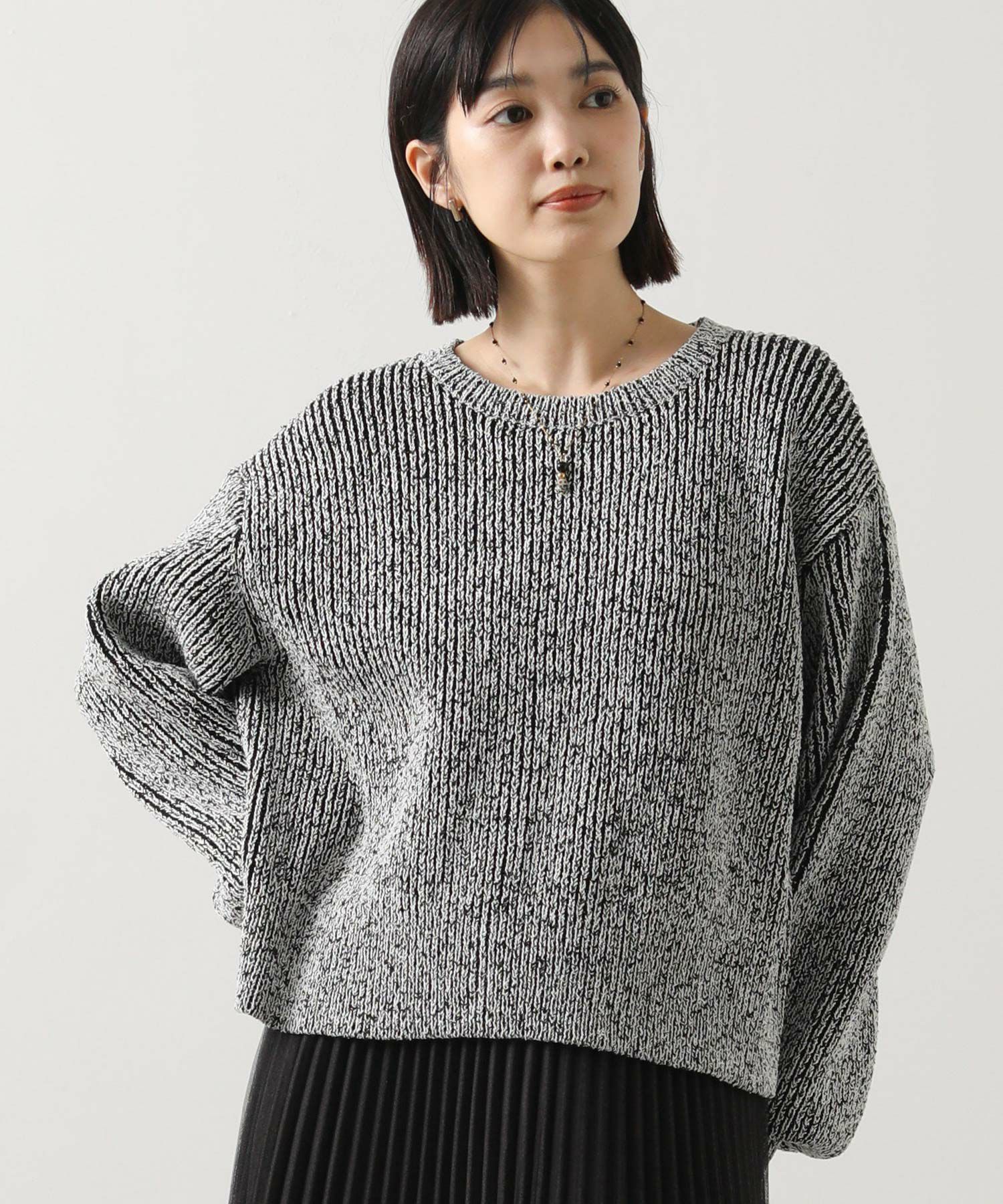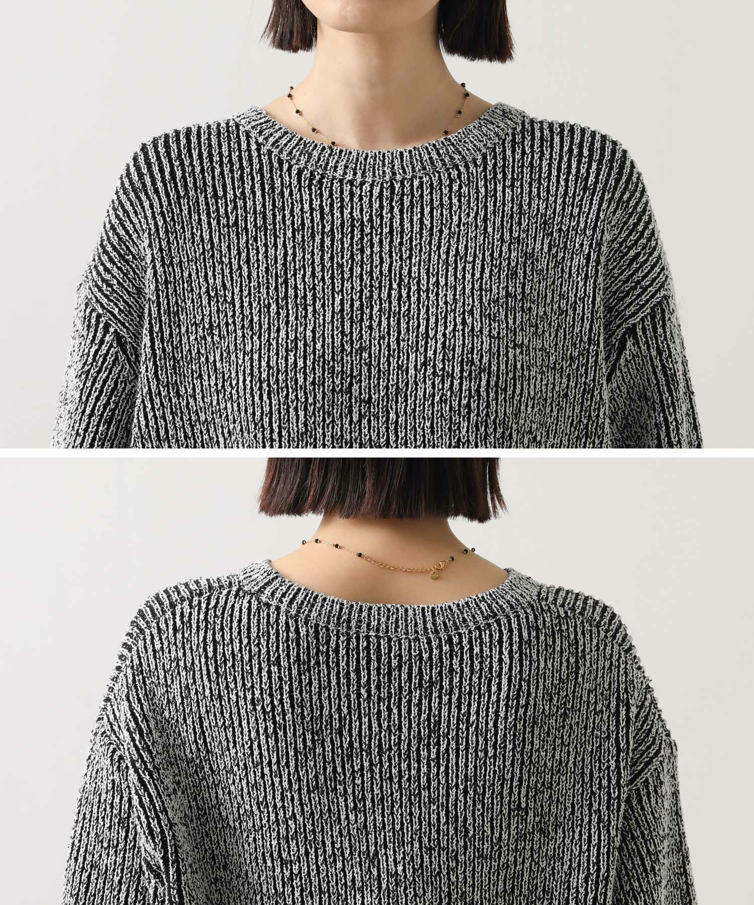 凹凸のある表面感の出るミックスカラーの糸を使用したニットプルオーバー。