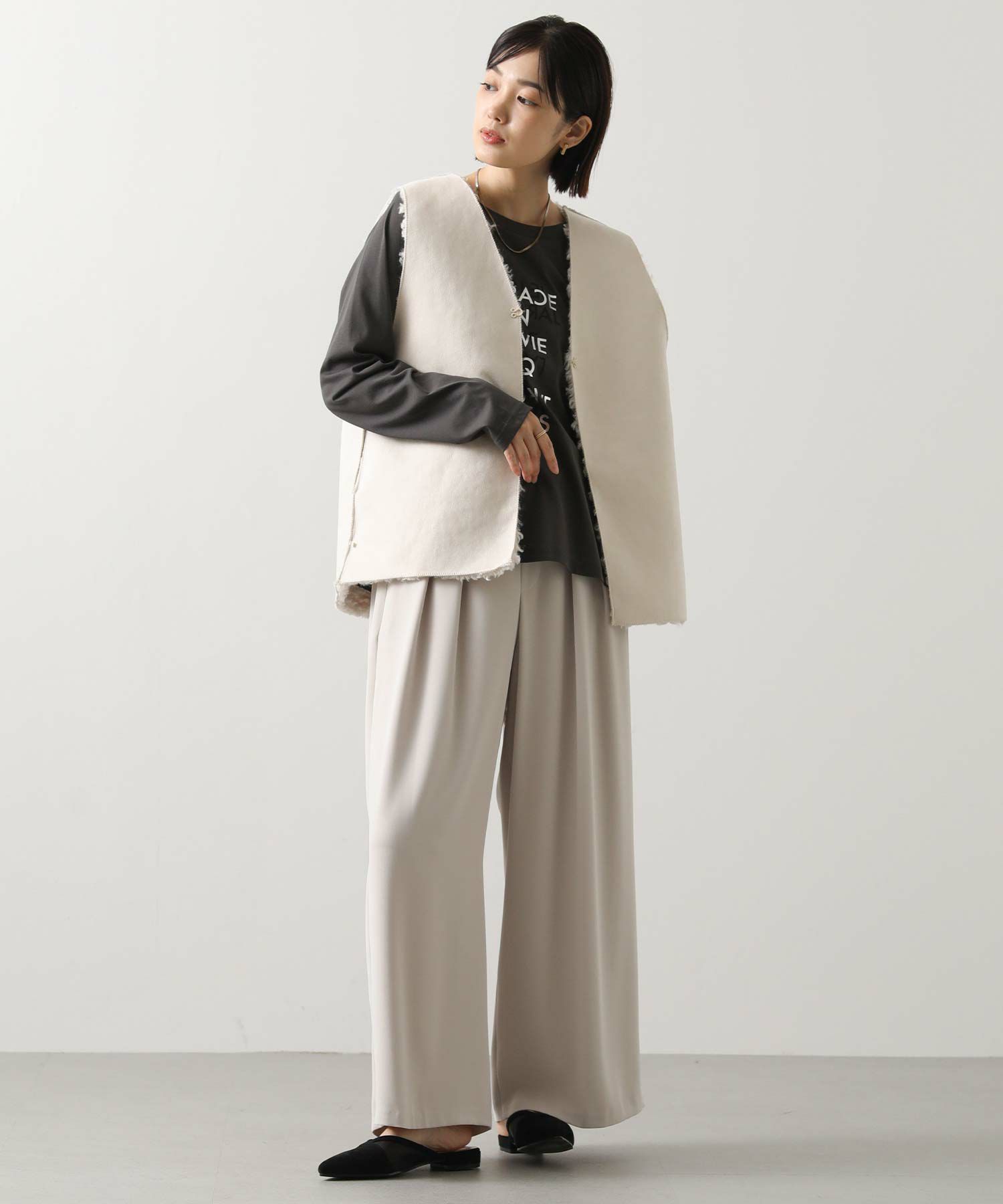※着用画像は撮影状況、光の当たり具合で色みが違って見える場合がございます。実際の色みについては、画像一覧の最後に掲載している詳細画像をご参照ください。