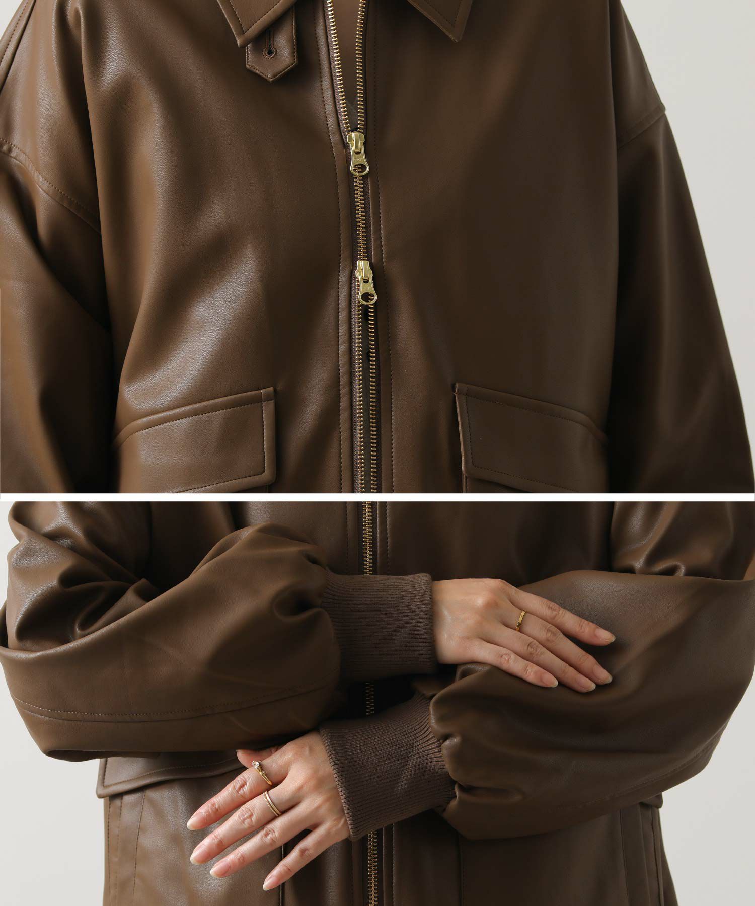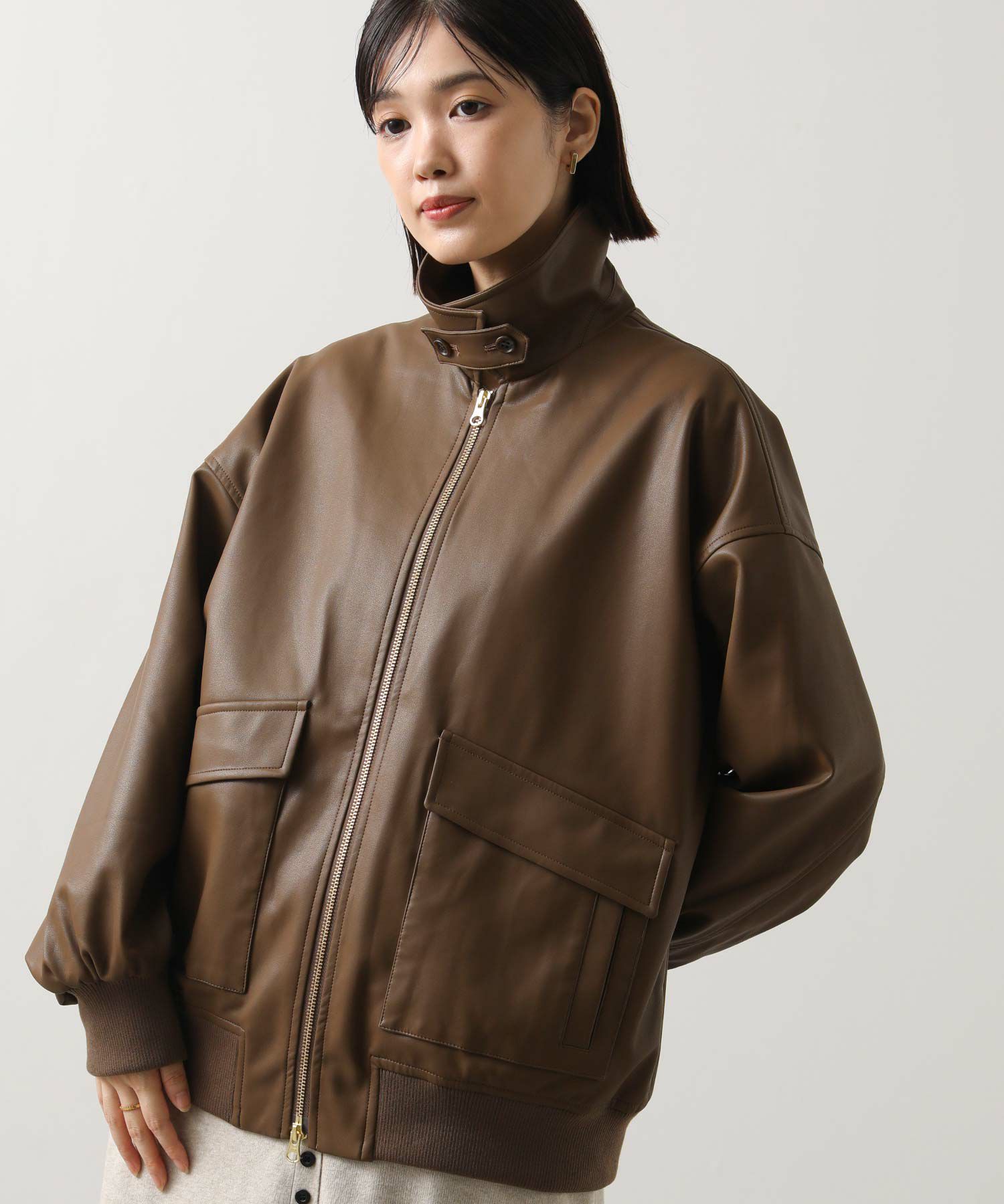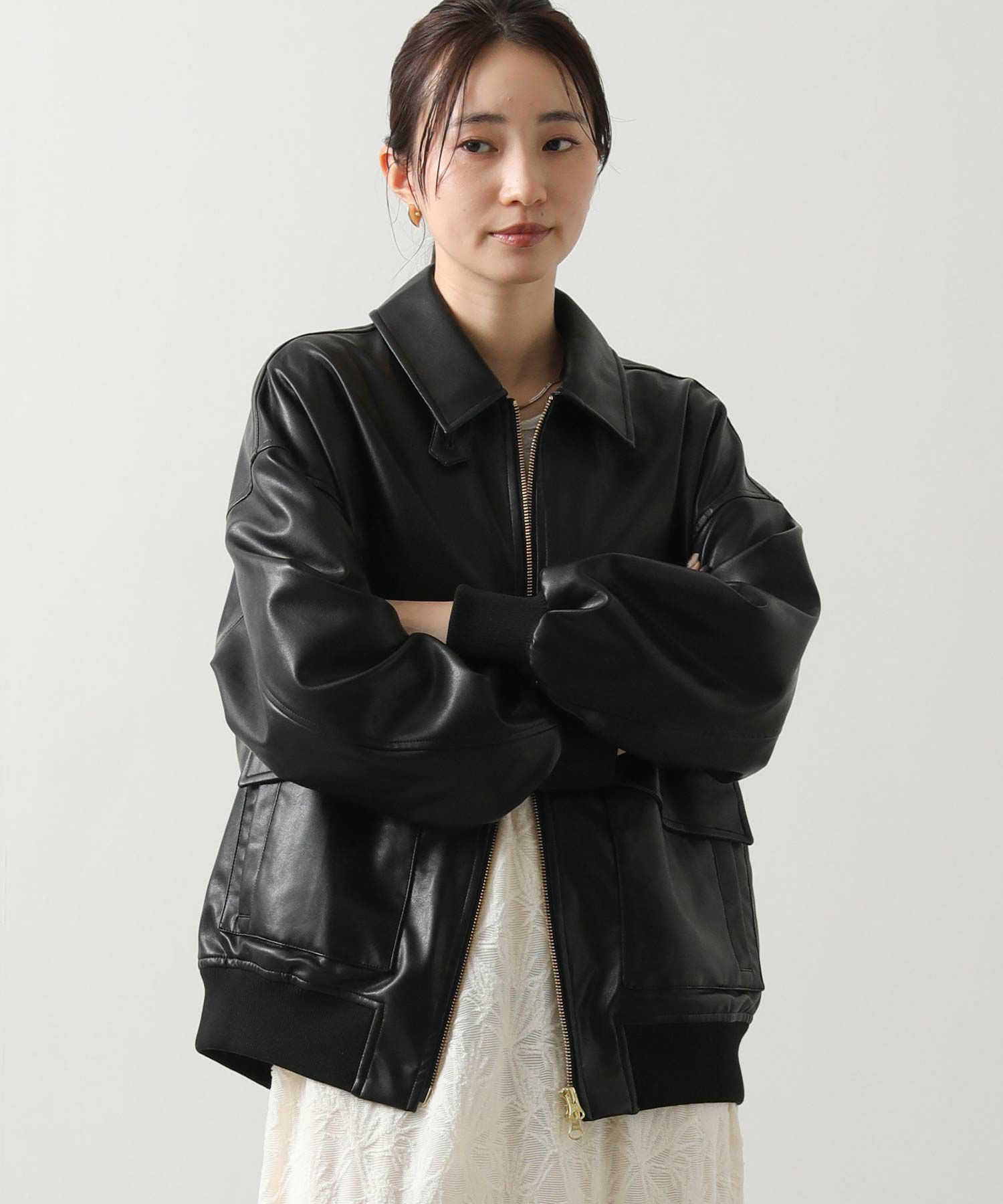 オーバーサイズですが、リアルレザーと違い軽くて羽織りやすいのでデイリー使いにオススメ。