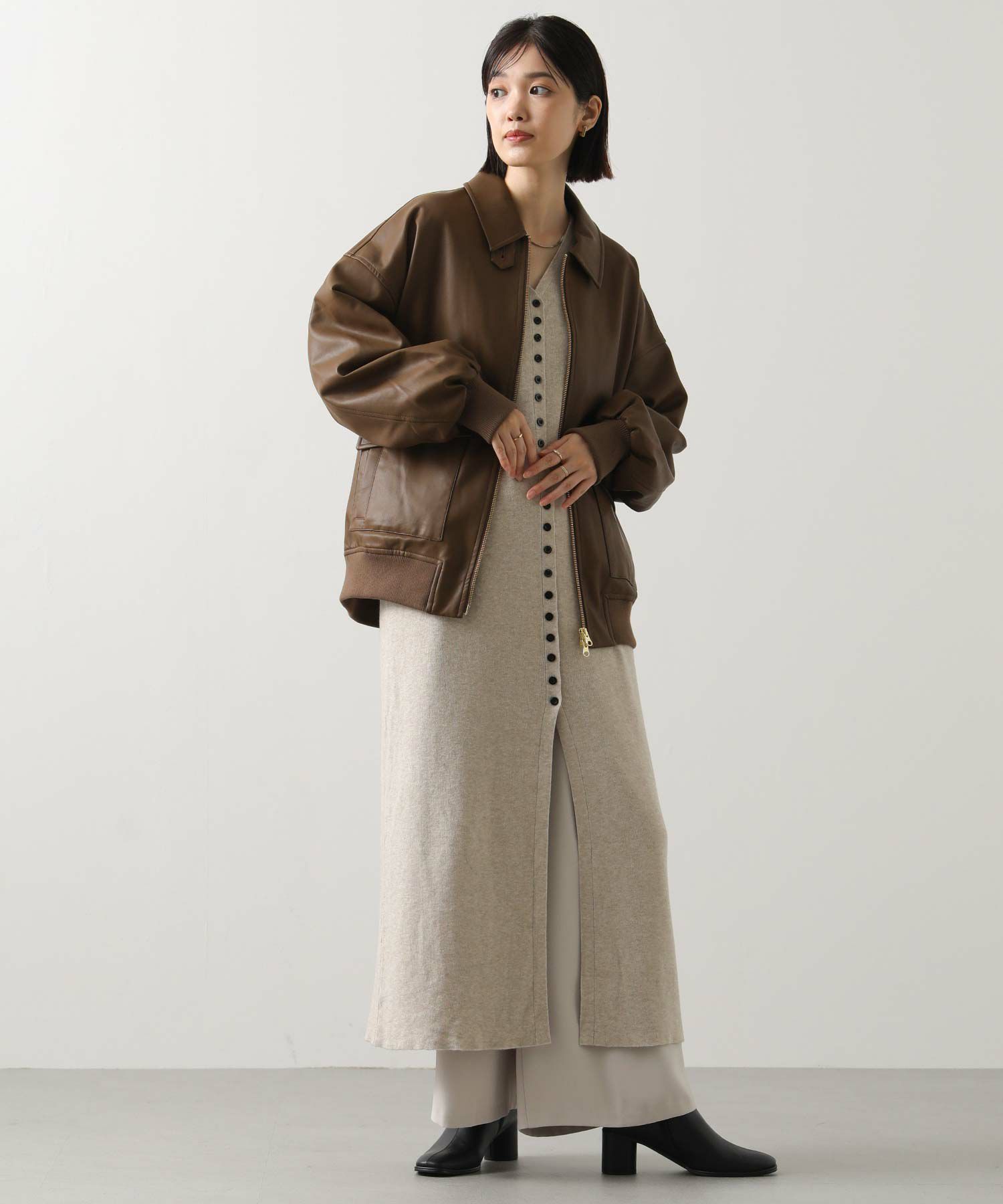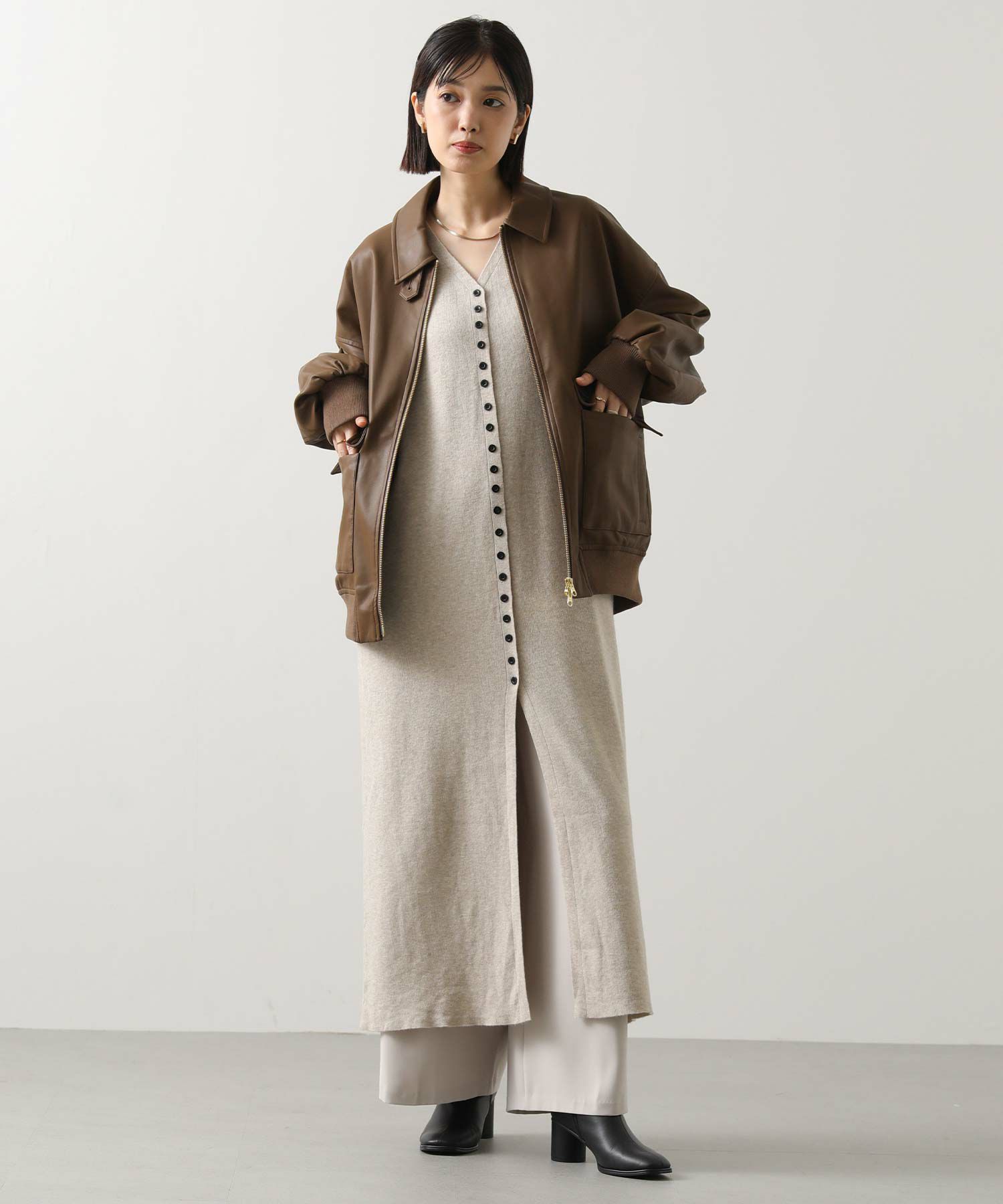 ※着用画像は撮影状況、光の当たり具合で色みが違って見える場合がございます。実際の色みについては、画像一覧の最後に掲載している詳細画像をご参照ください。