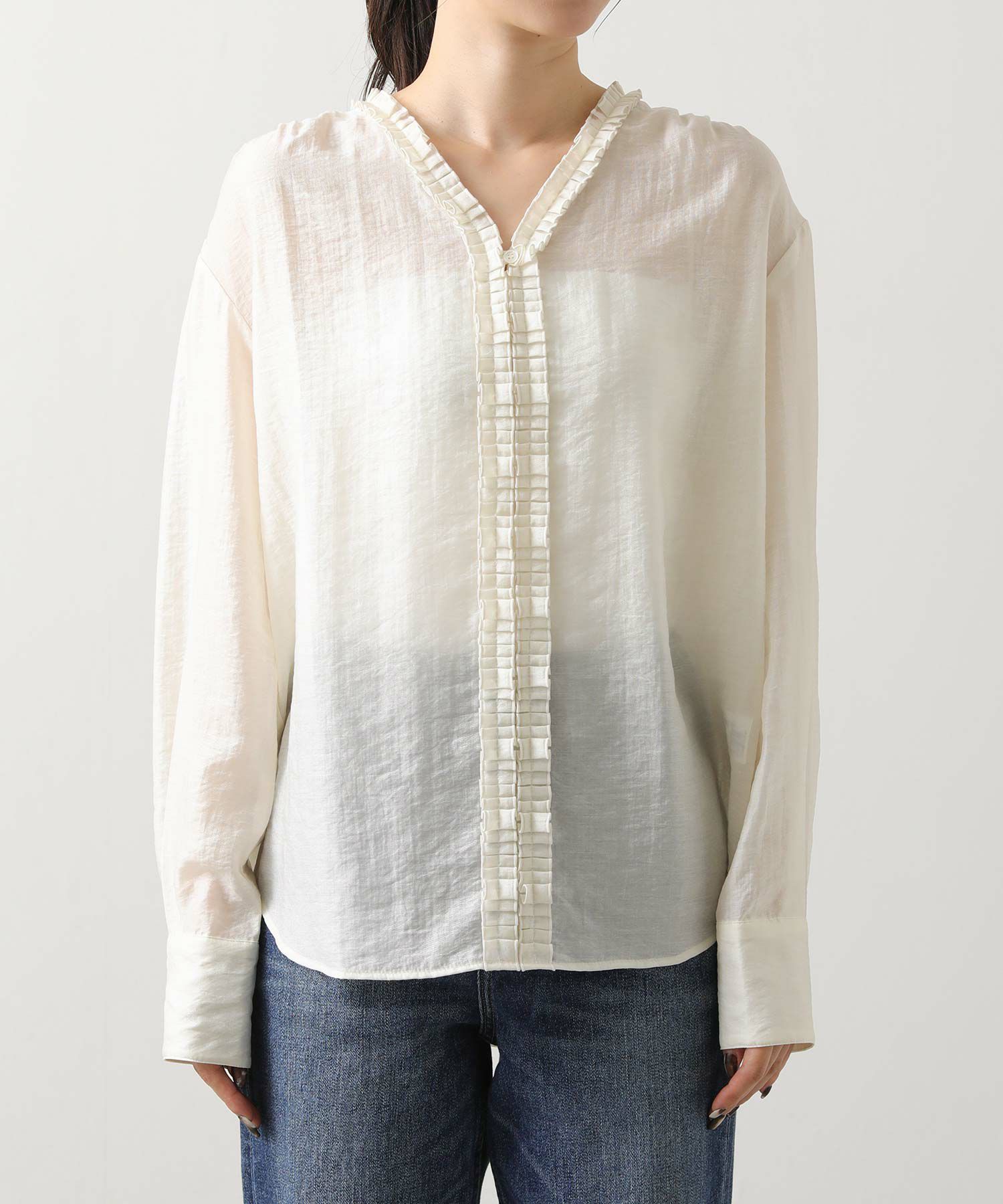 タックフリルが、上品で大人な印象のフリルブラウス。