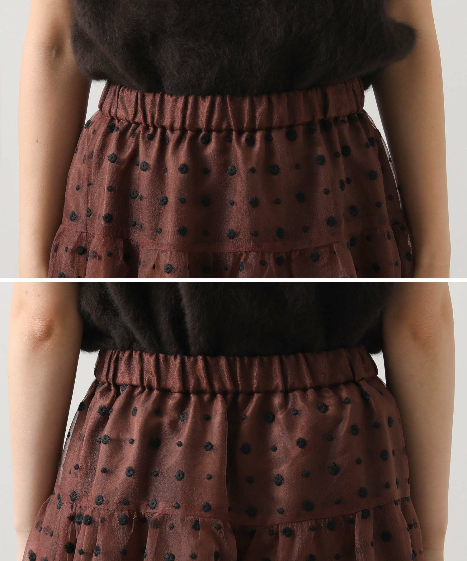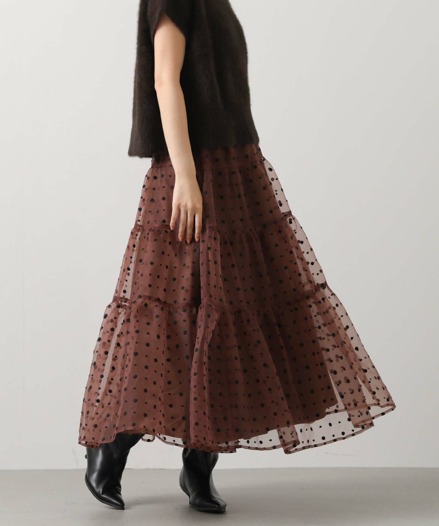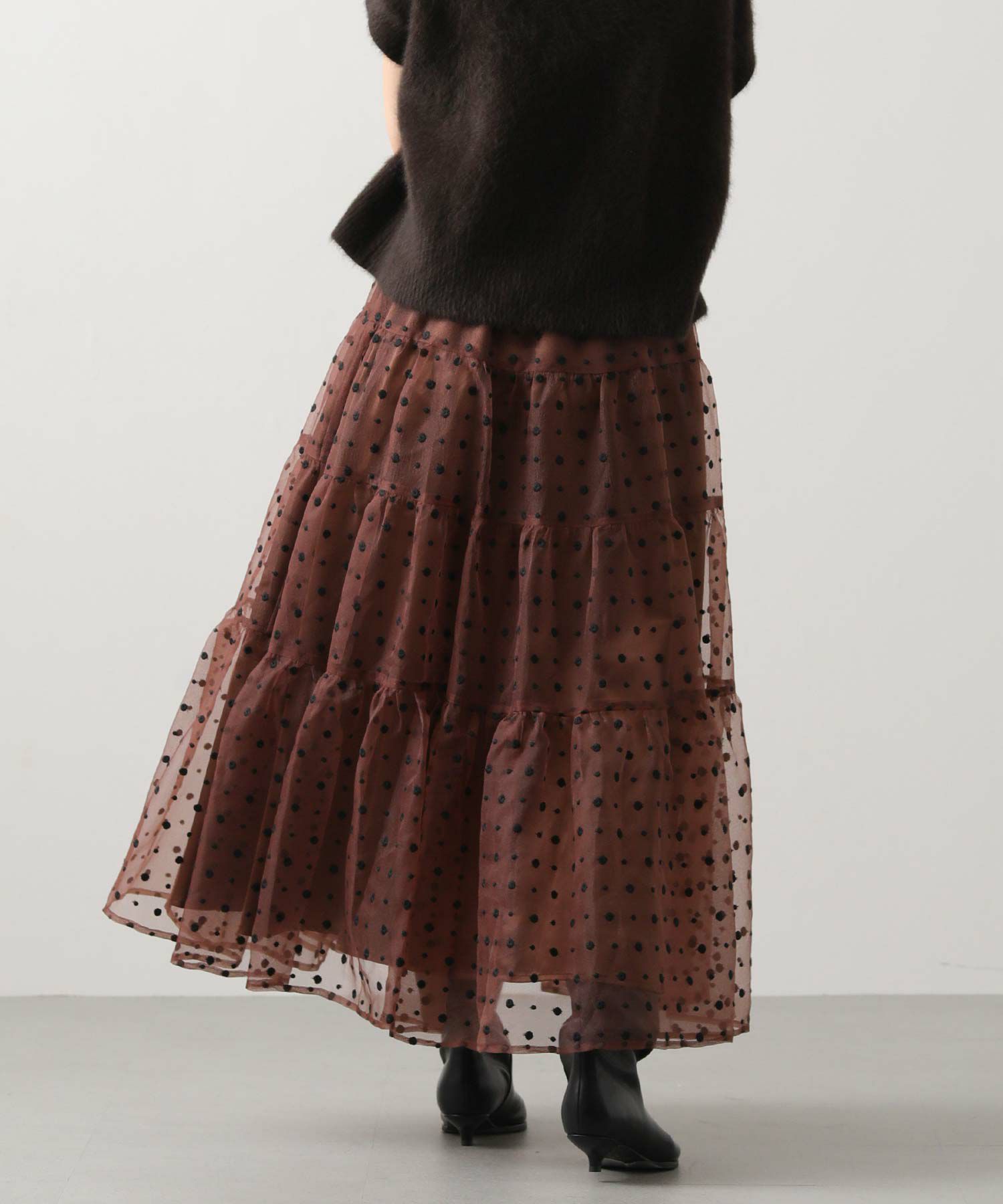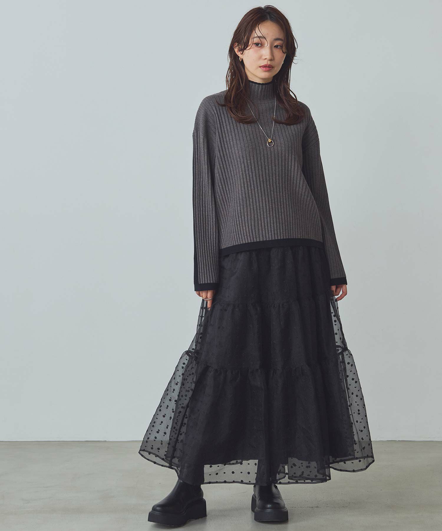 シアーの軽い質感のオーガンジーは、冬のふわふわニットと相性抜群!