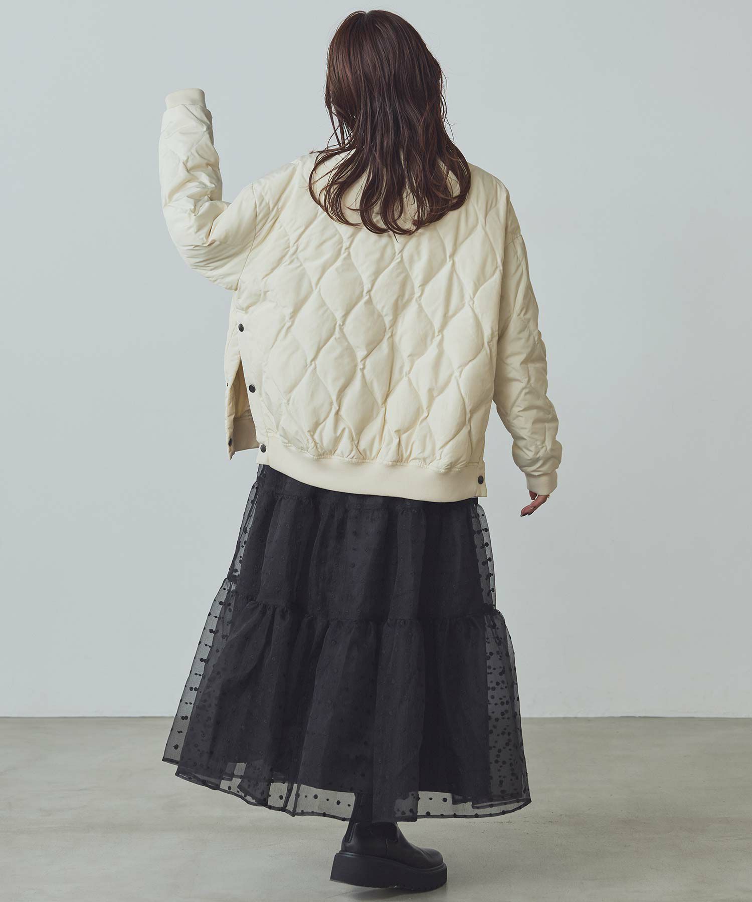 軽やかなオーガンジー素材がふんわりとしたシルエットを演出。