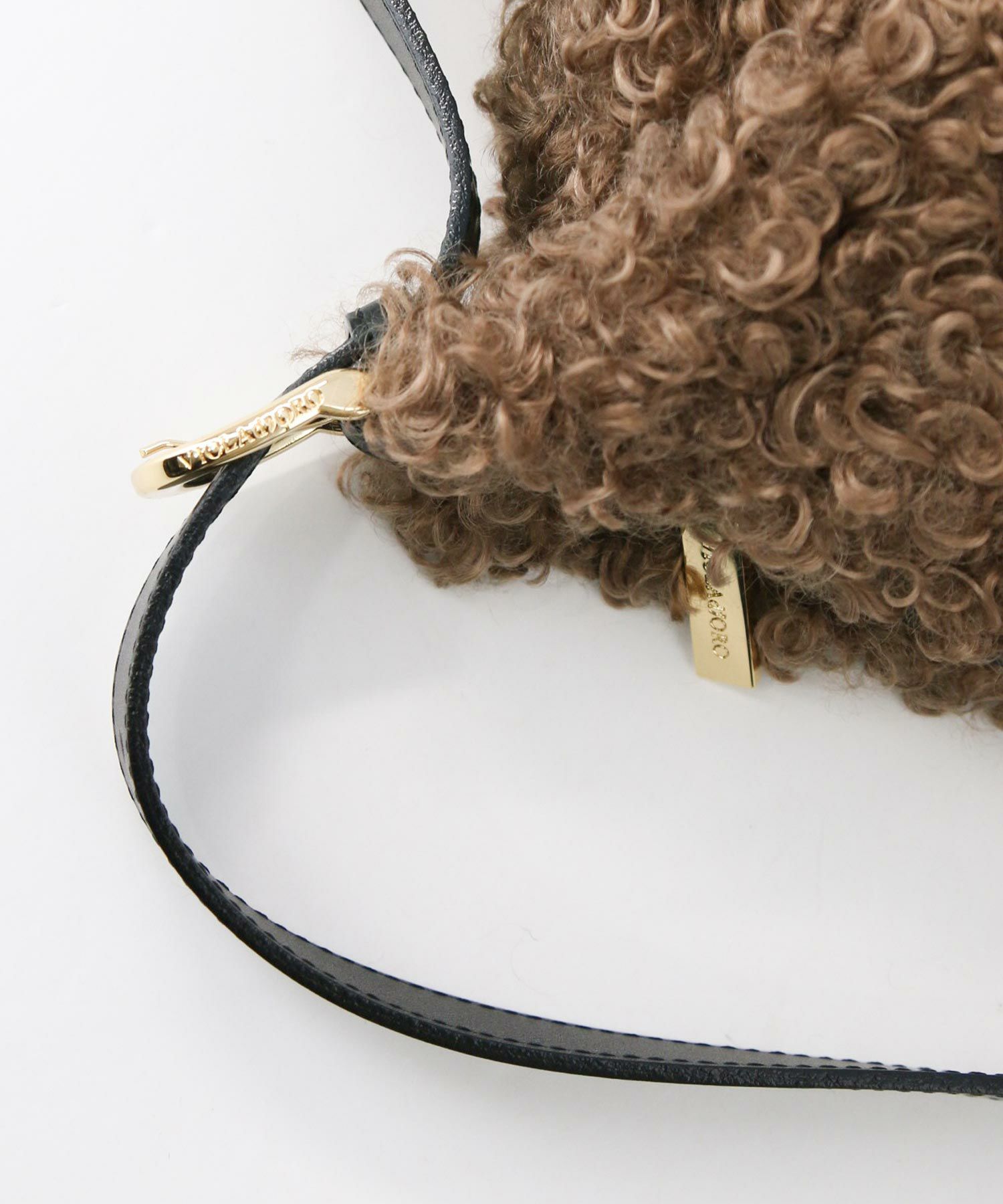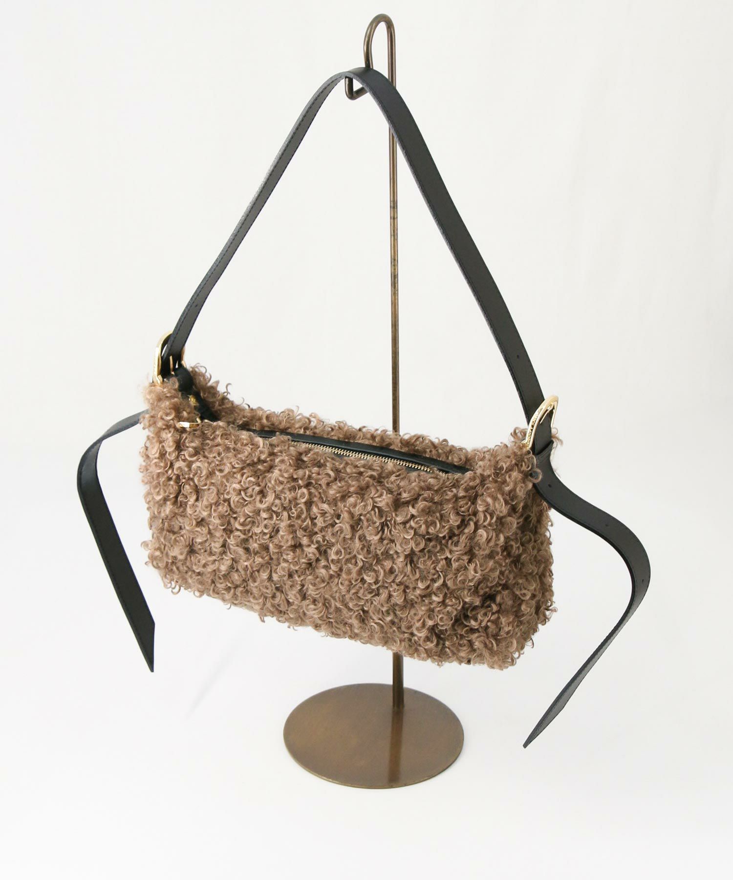 モコモコしたカールが魅力の、カルガンラムタイプのエコファーを使用したワンショルダーバッグ。