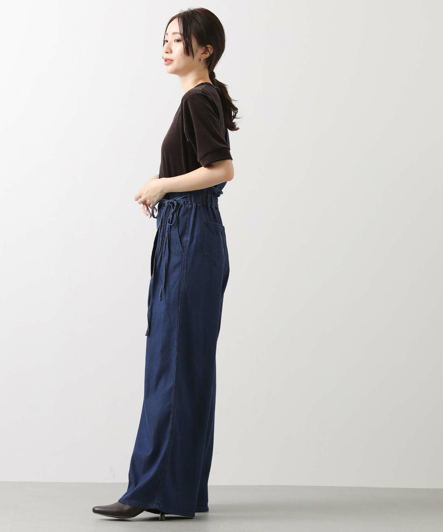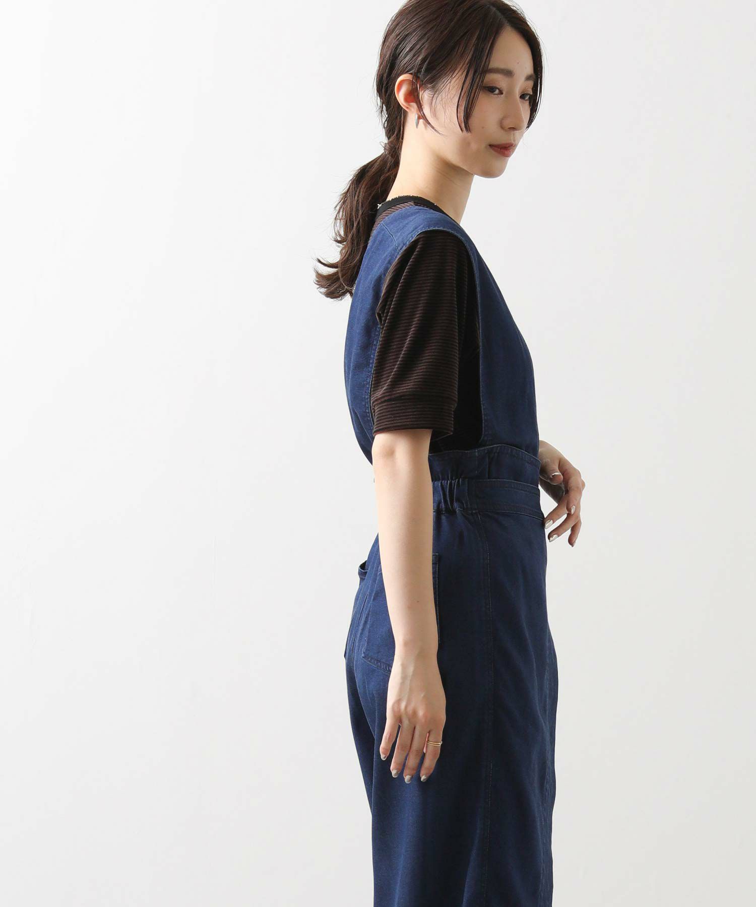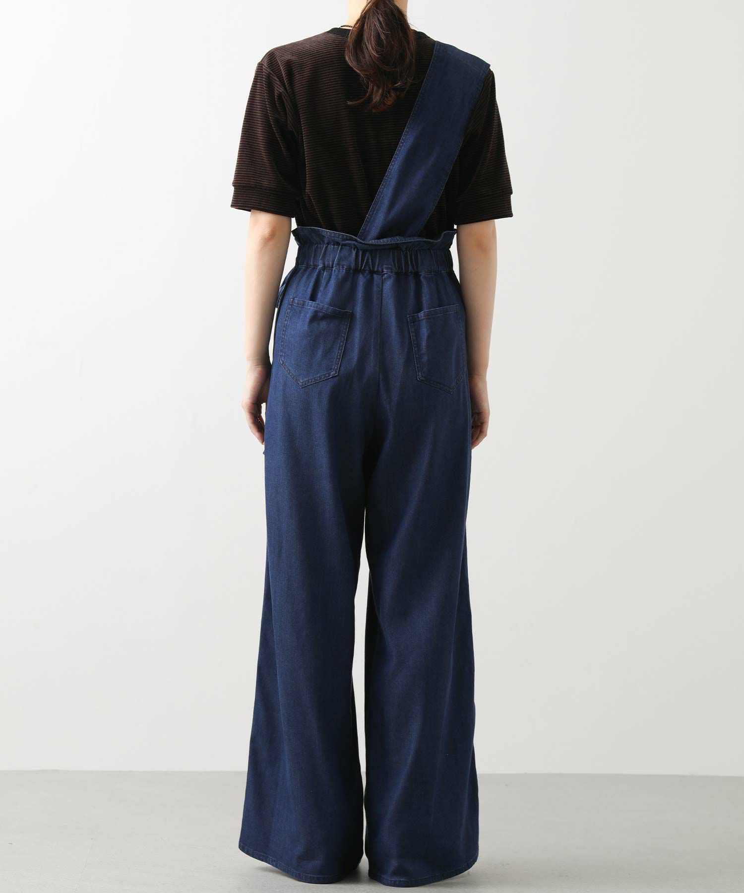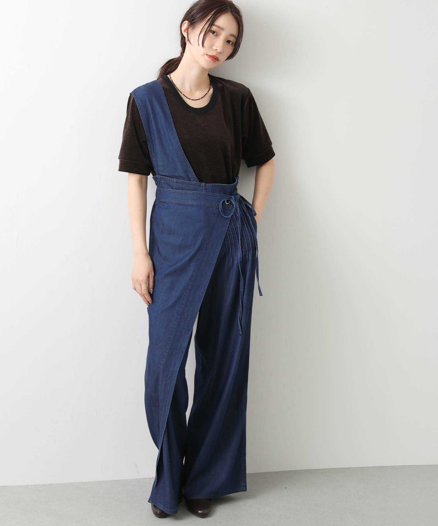 【LalliaMùラリア・ムー】から、柔らかなテンセル生地を使用したデニム風のワンショルダーサロペットをセレクト。