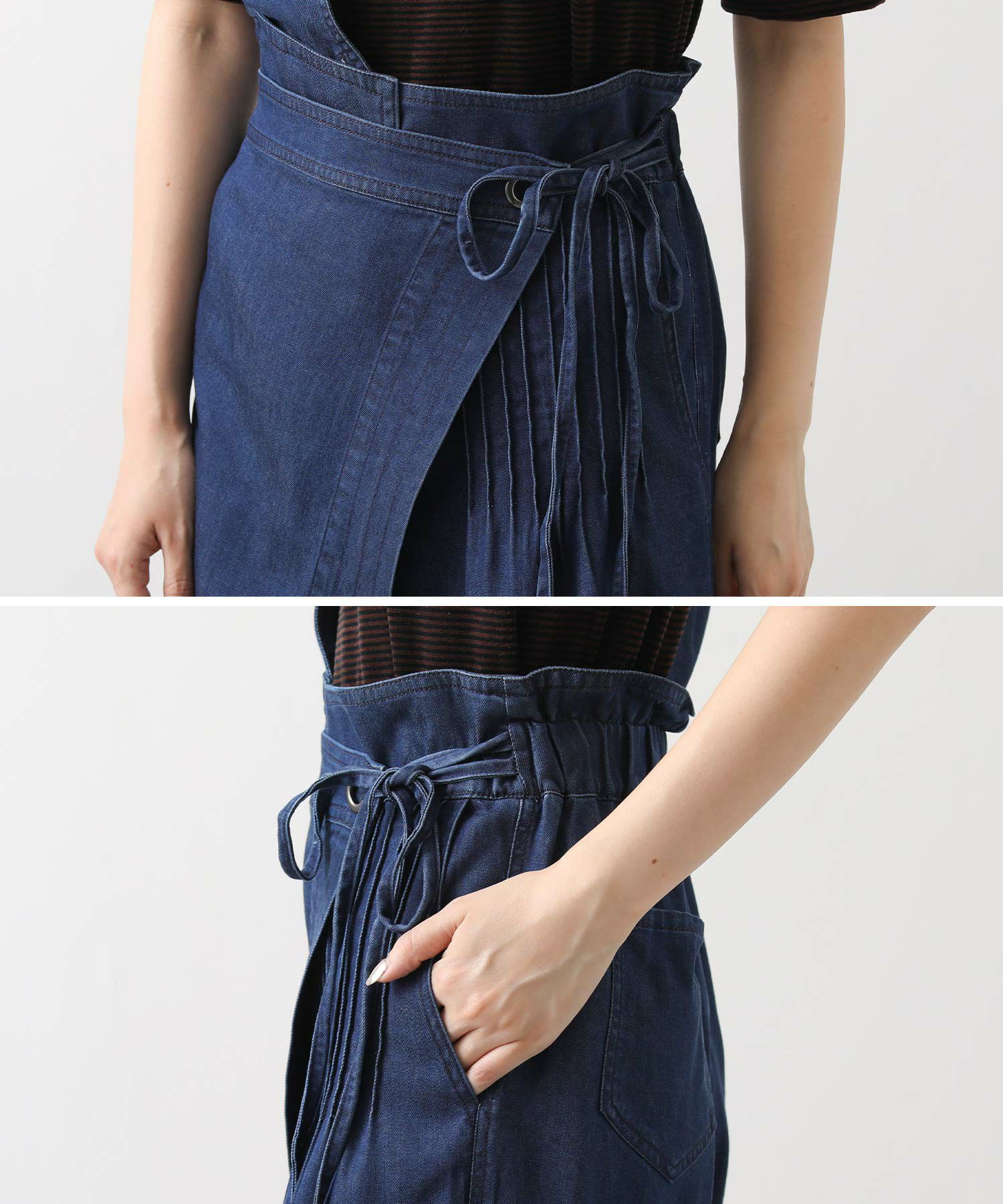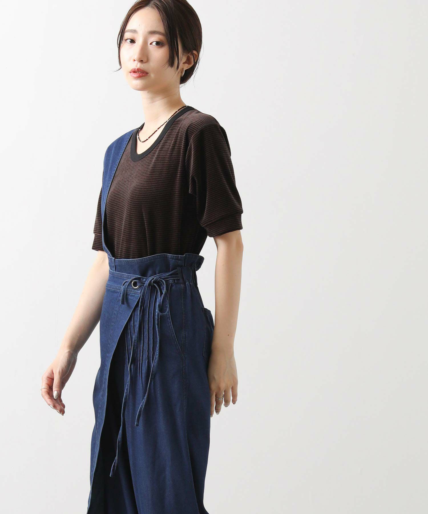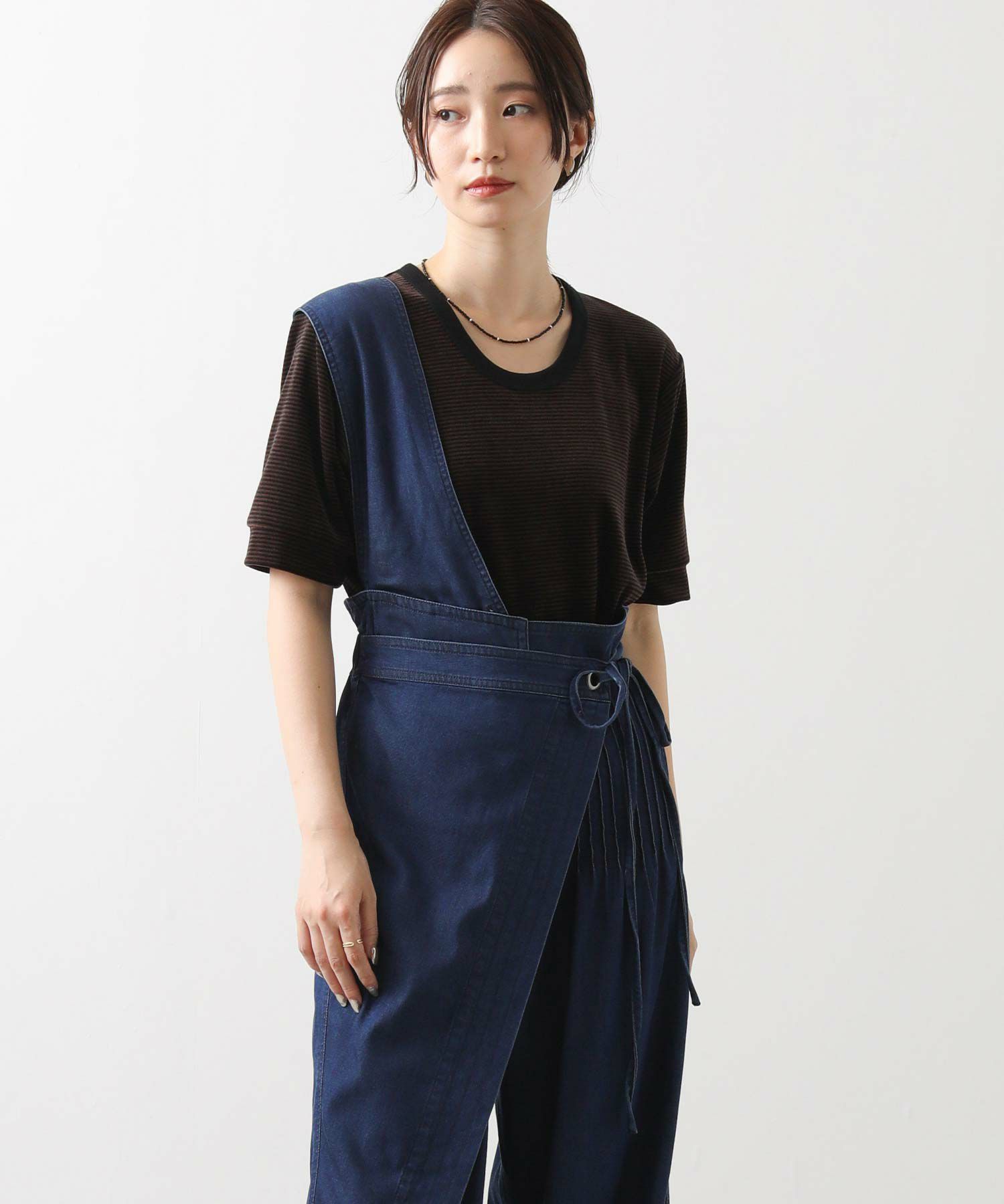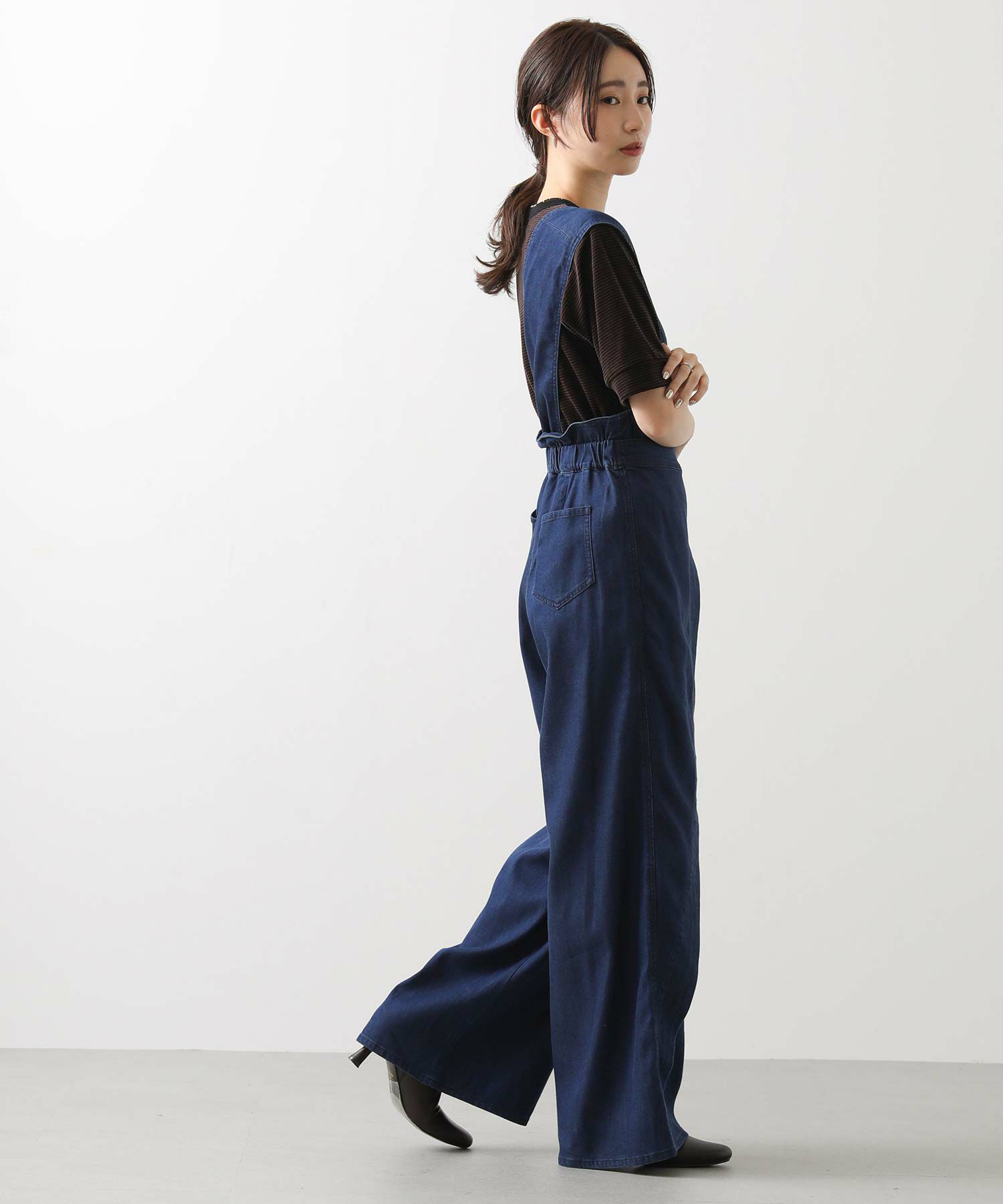 【LalliaMùラリア・ムー】から、柔らかなテンセル生地を使用したデニム風のワンショルダーサロペットをセレクト。