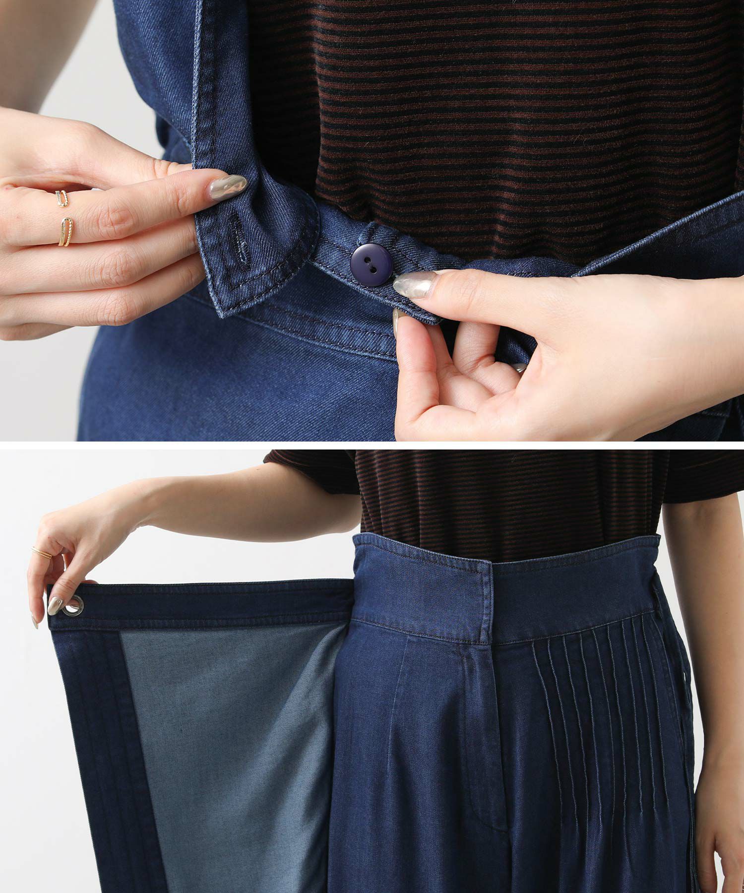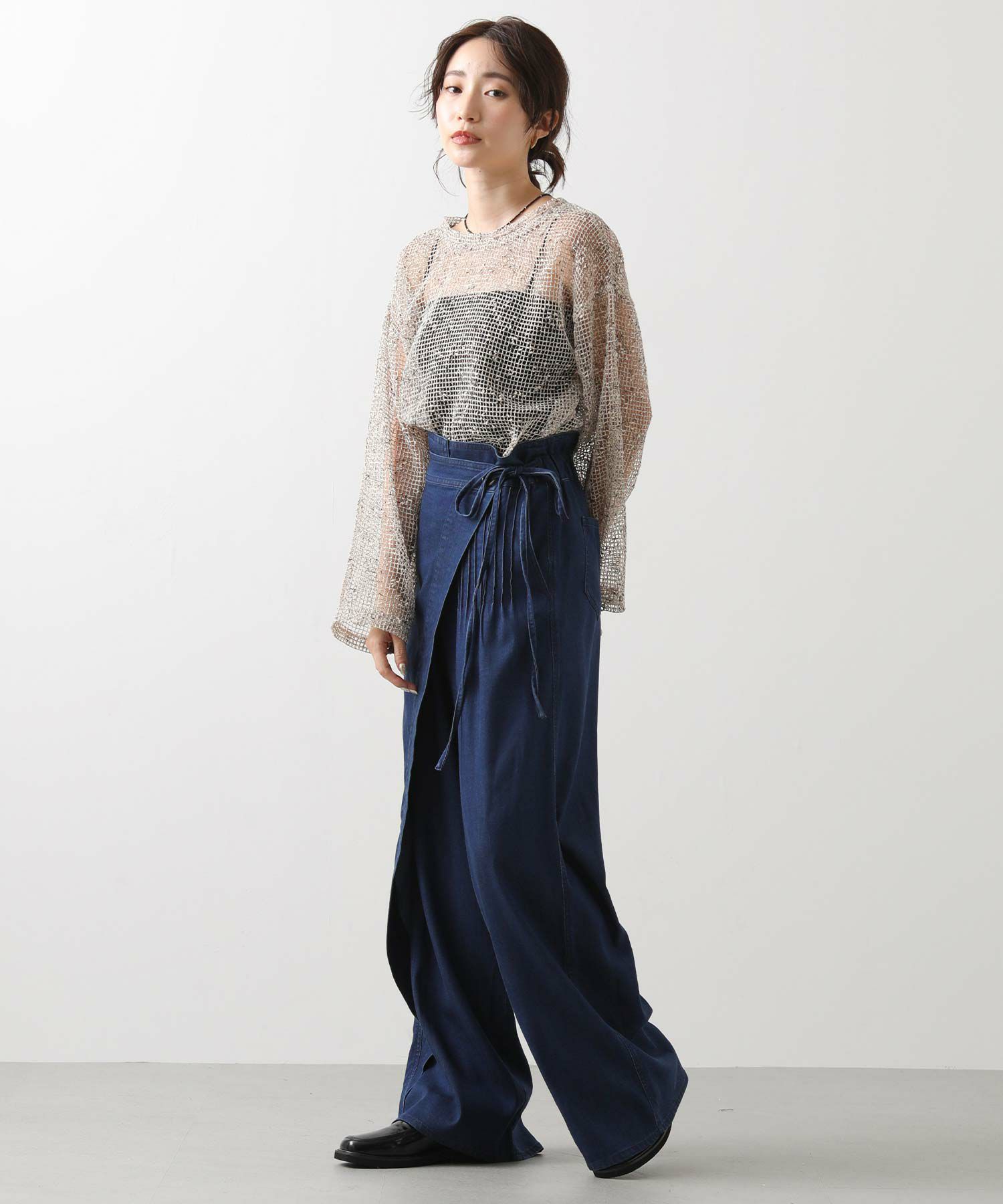 こなれ感を生むラップデザインで、カジュアルなデニムに上品なエッセンスをプラス。