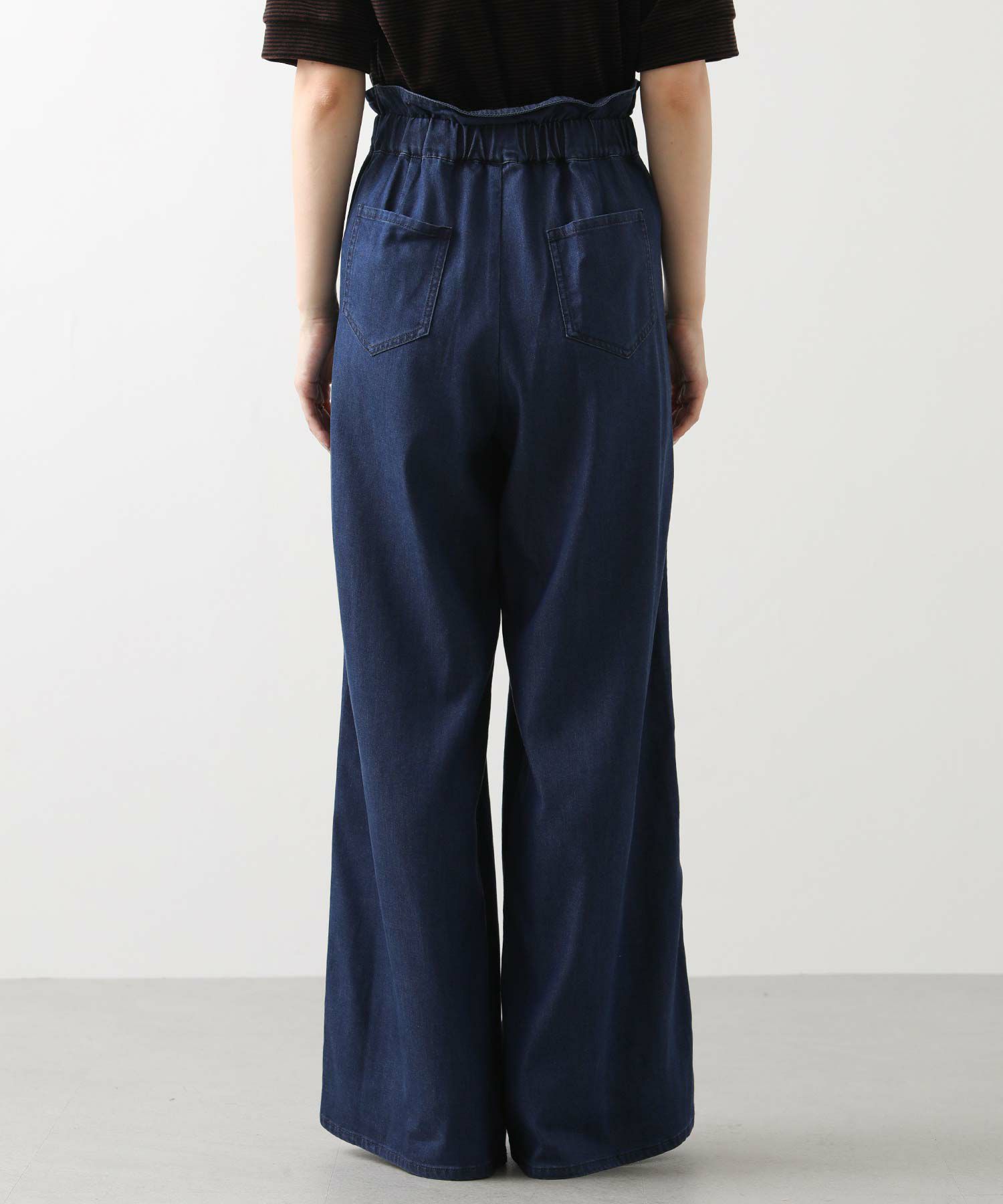 脚のシルエットを拾わず美しいロングシルエットを作るワイドレッグで縦長ラインが脚長効果をもたらします。