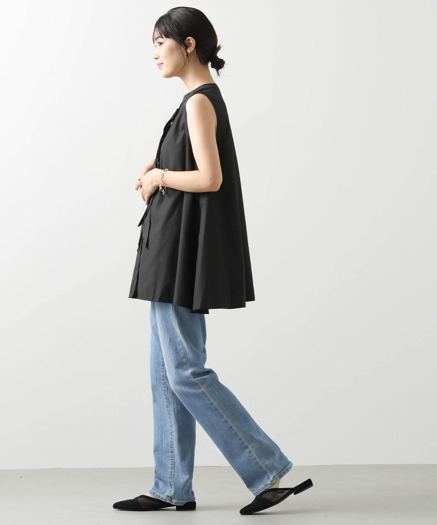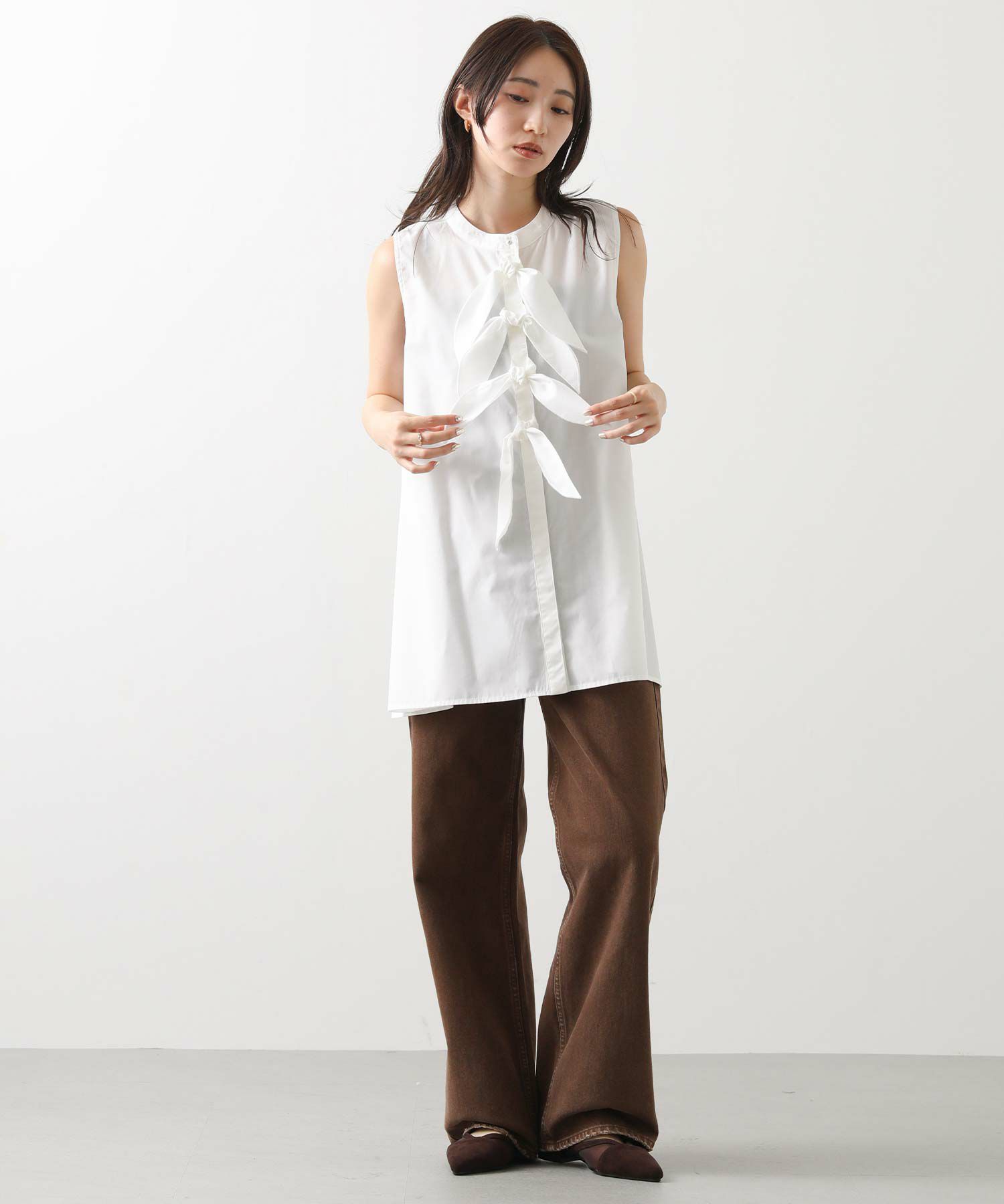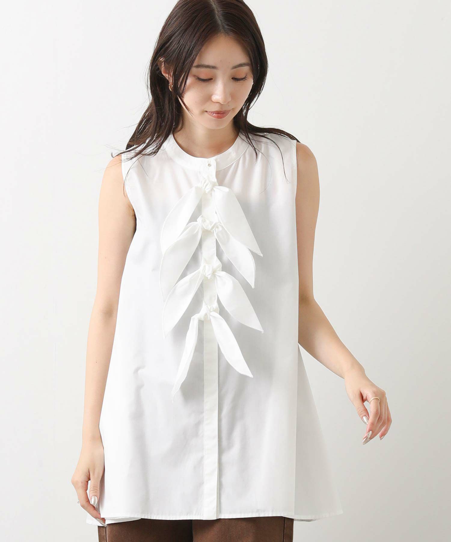 【TorrazzoDonna(トラッツォドンナ】から、前中心に大胆なリボンディテールを施したAラインシャツをセレクト。