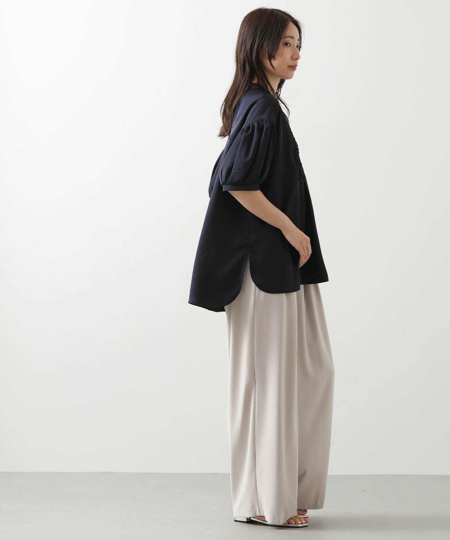 袖は5分丈になり、空気をはらむサイズ感なので涼しく着用出来ます。