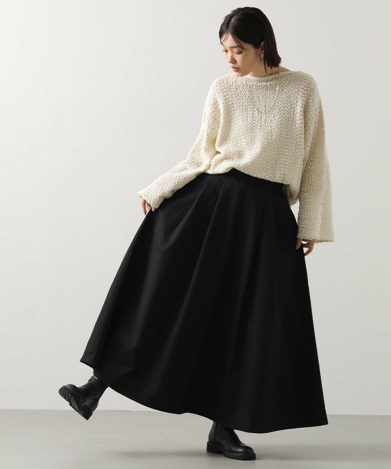 大人の落ち着いた印象と、女性の可愛らしさを合わせ持った万能スカートです。