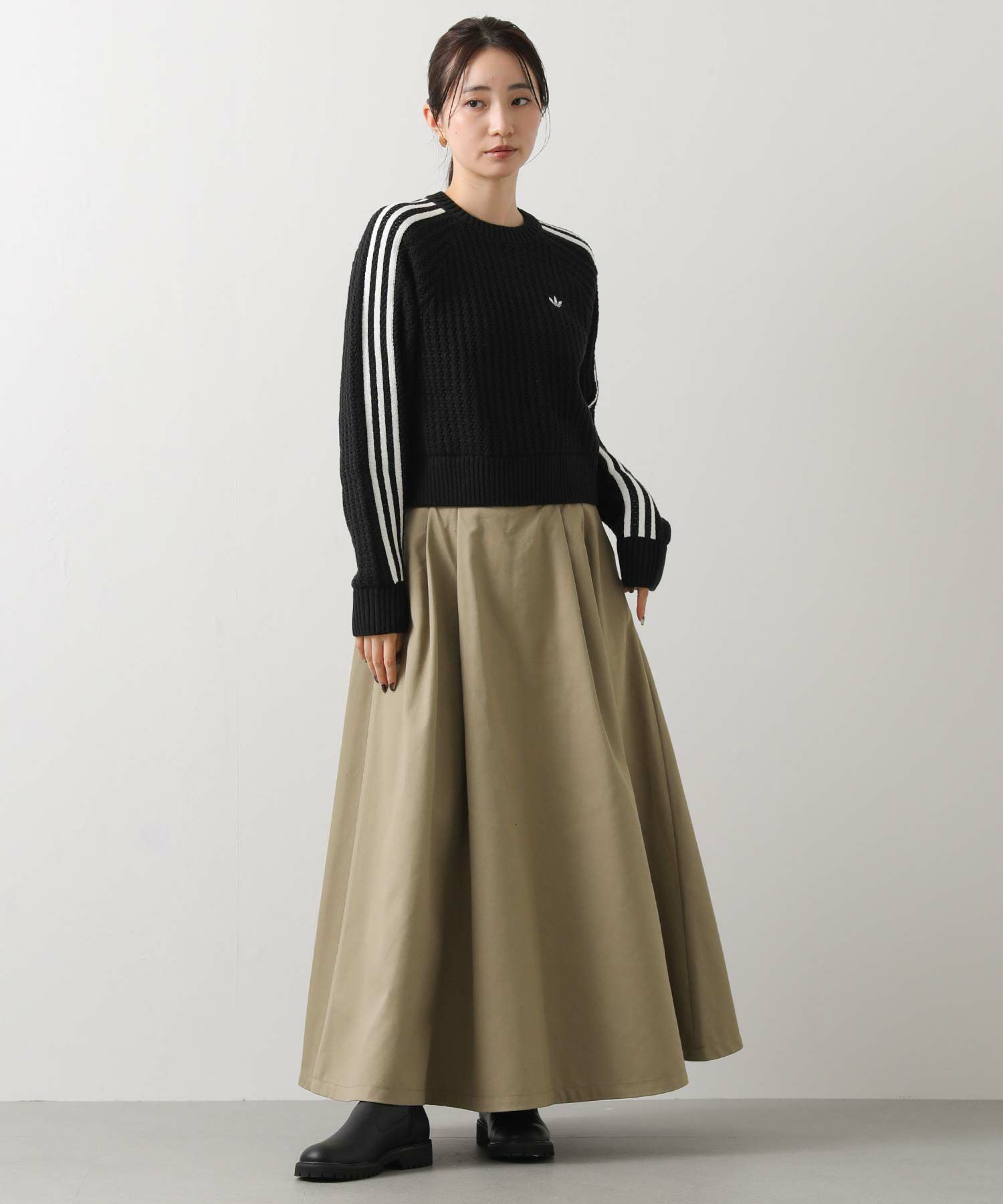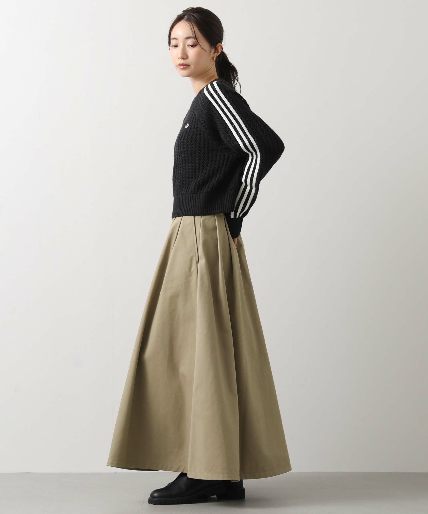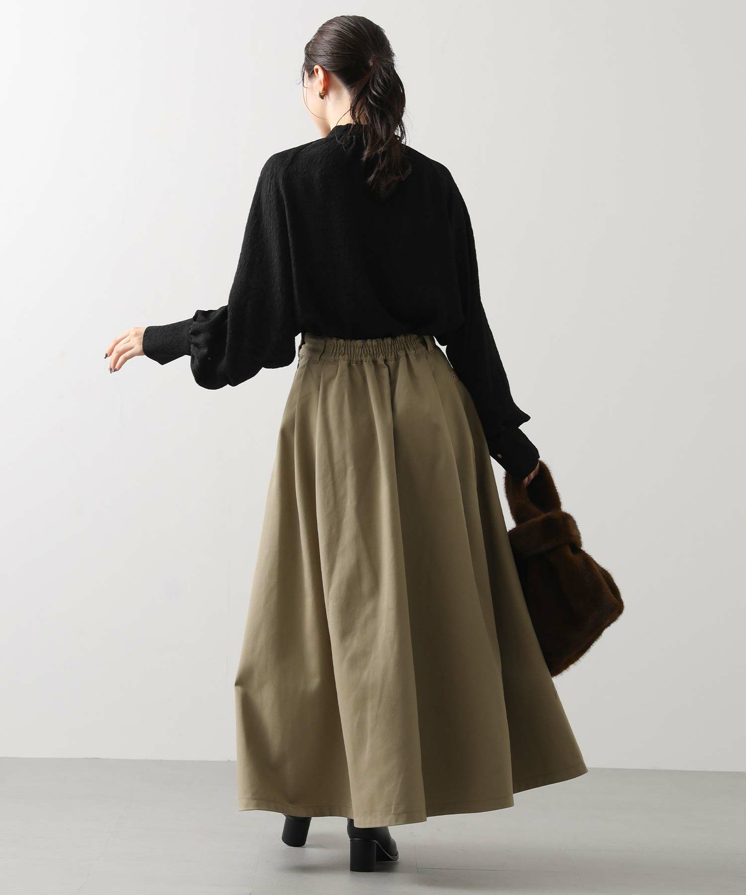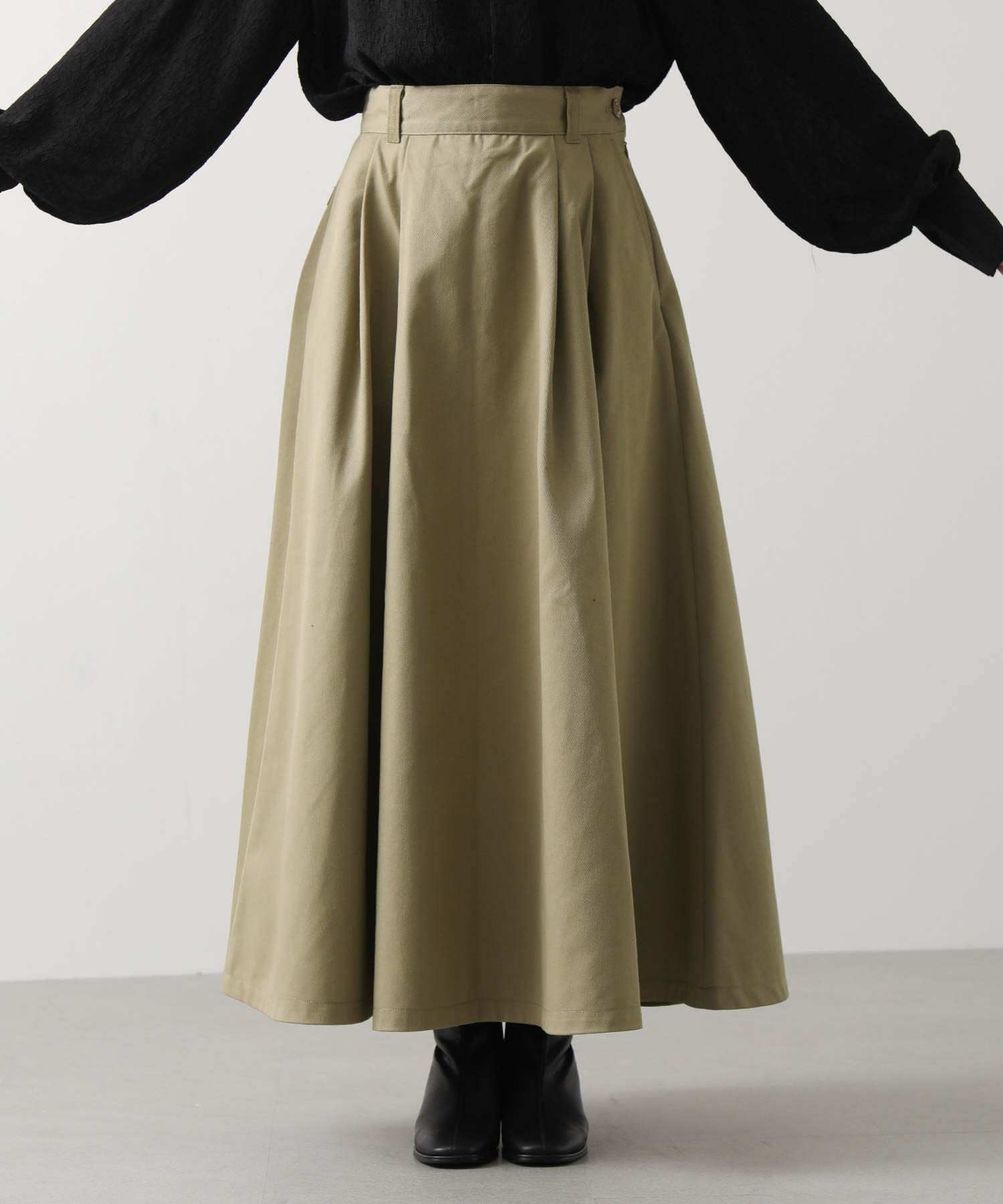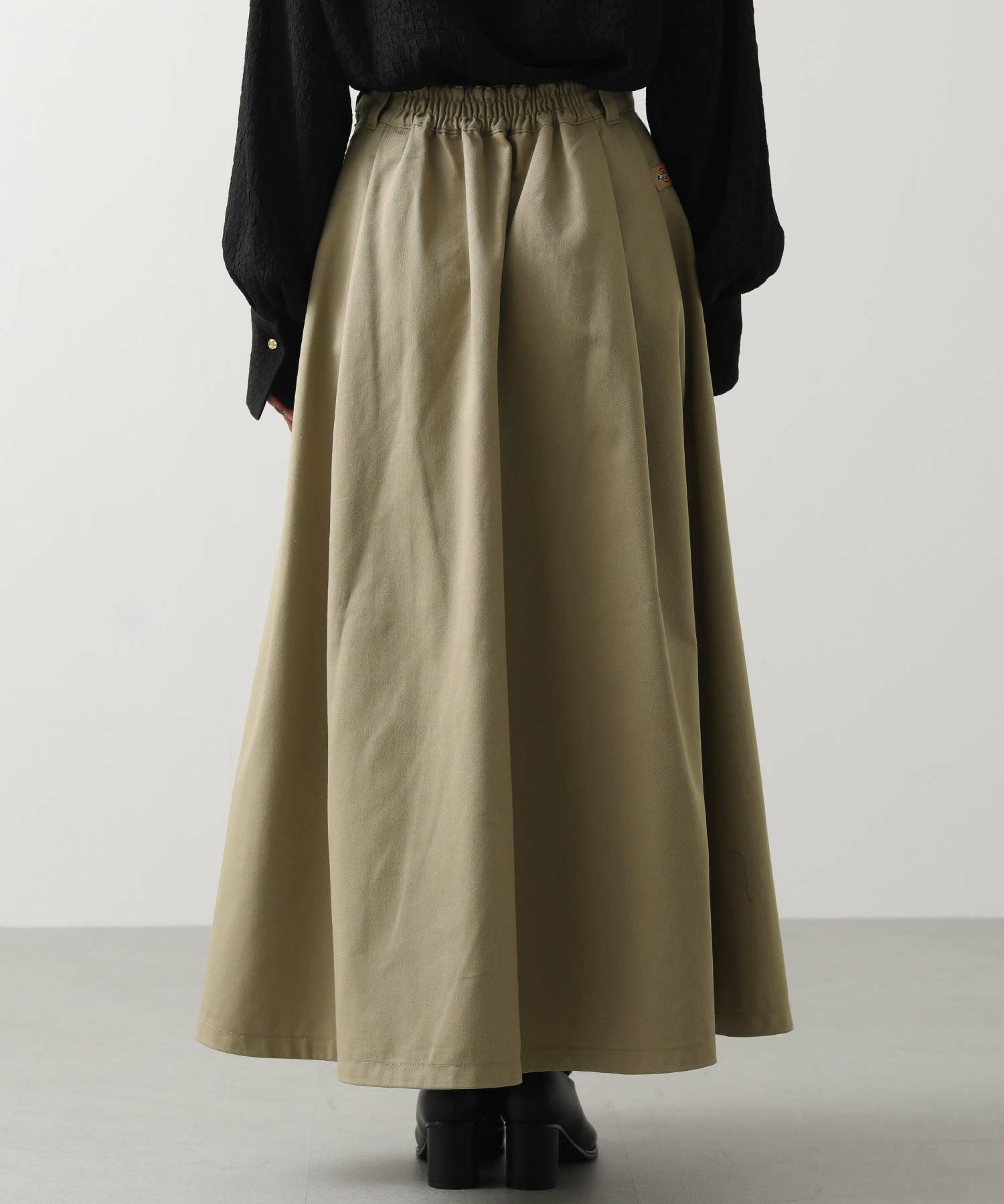 【Dickiesディッキーズ】から、ウエストにタックが入ったフレアスカートをセレクト。