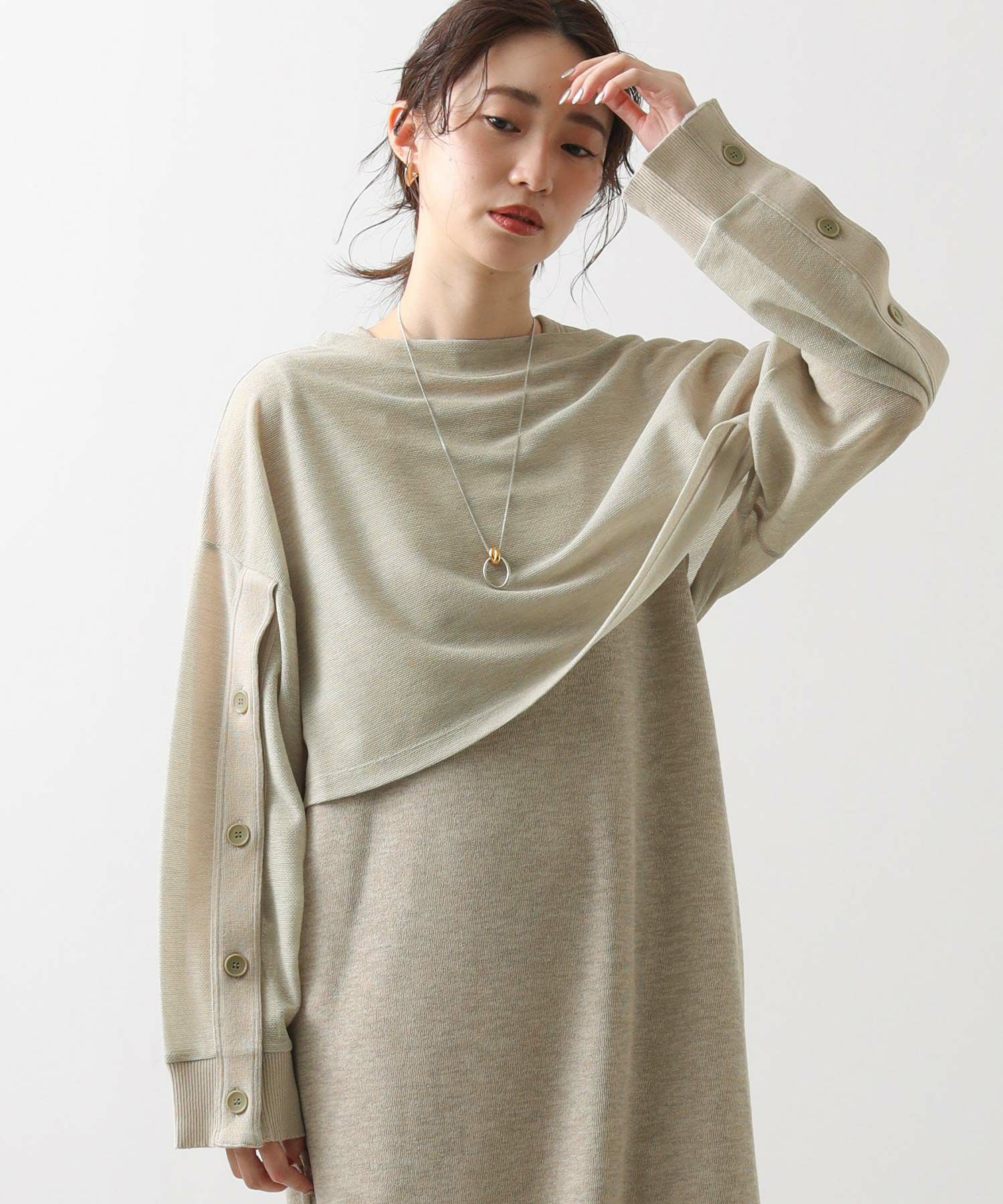 インナーにはタイトなカットソーや衿付きのシャツ、ワンピースと幅広く合わせやすく、レイヤードコーデが楽しめるアイテム。