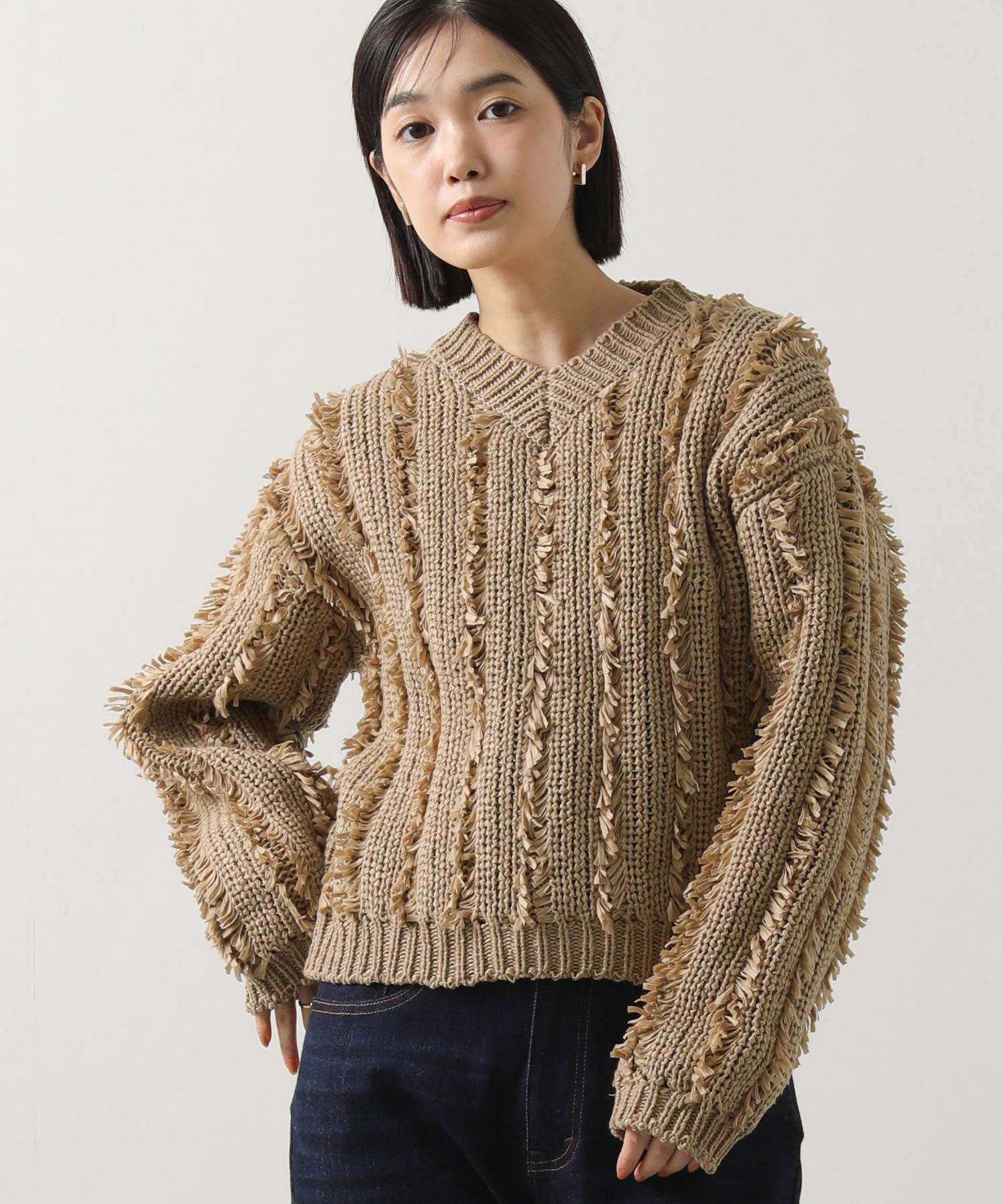 【Liyoca(リヨカ】から、独特なテープヤーンで編まれたフリンジニットプルオーバーをセレクト。