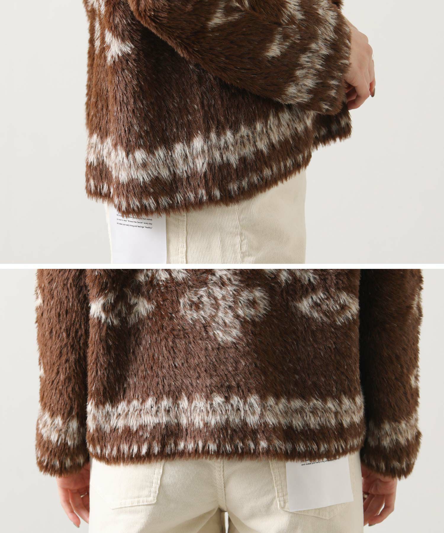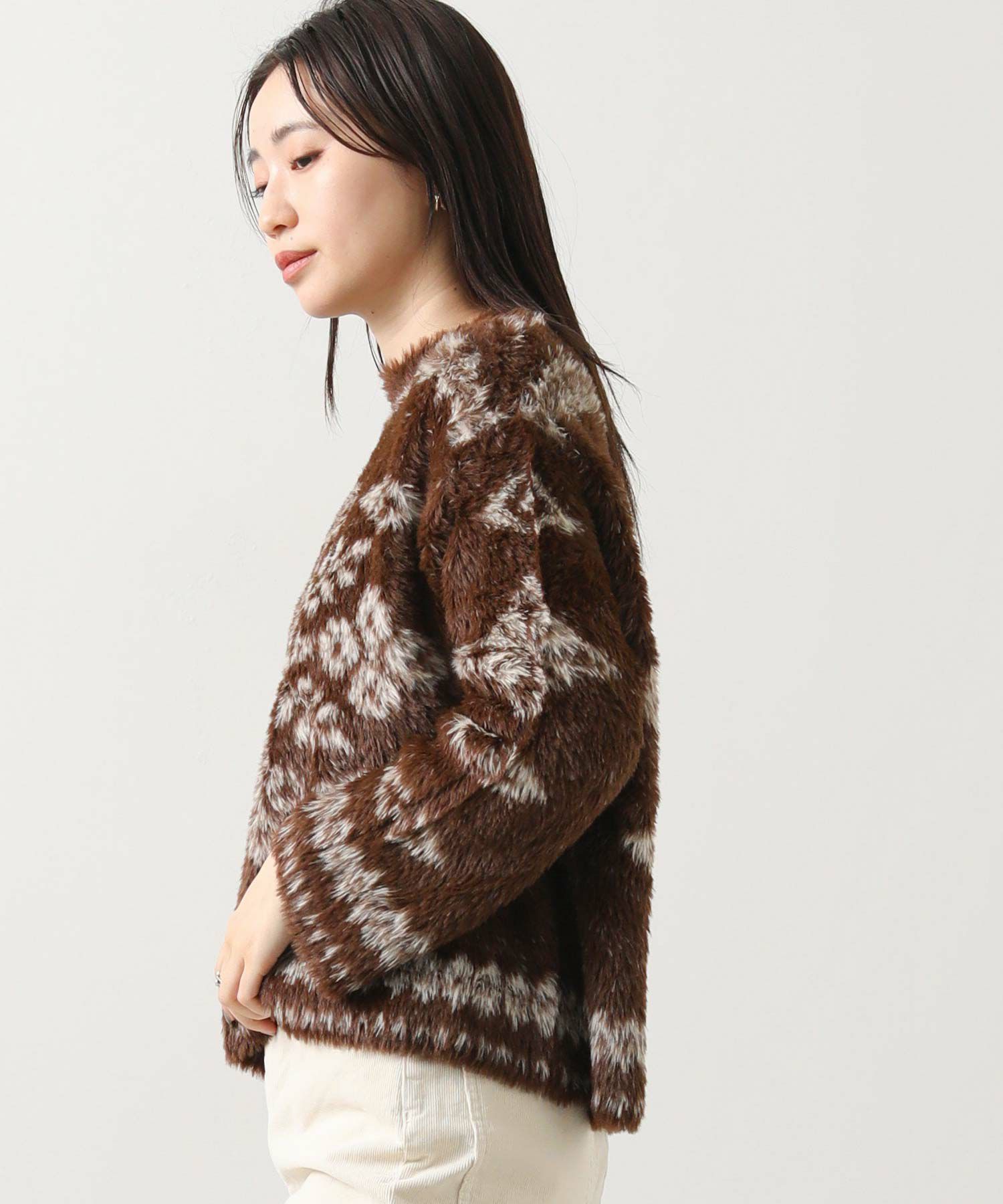 シャギーのふわっとした柔らかい糸で大胆なパネル柄を作りだした、冬の気分が上がる主役ニット。