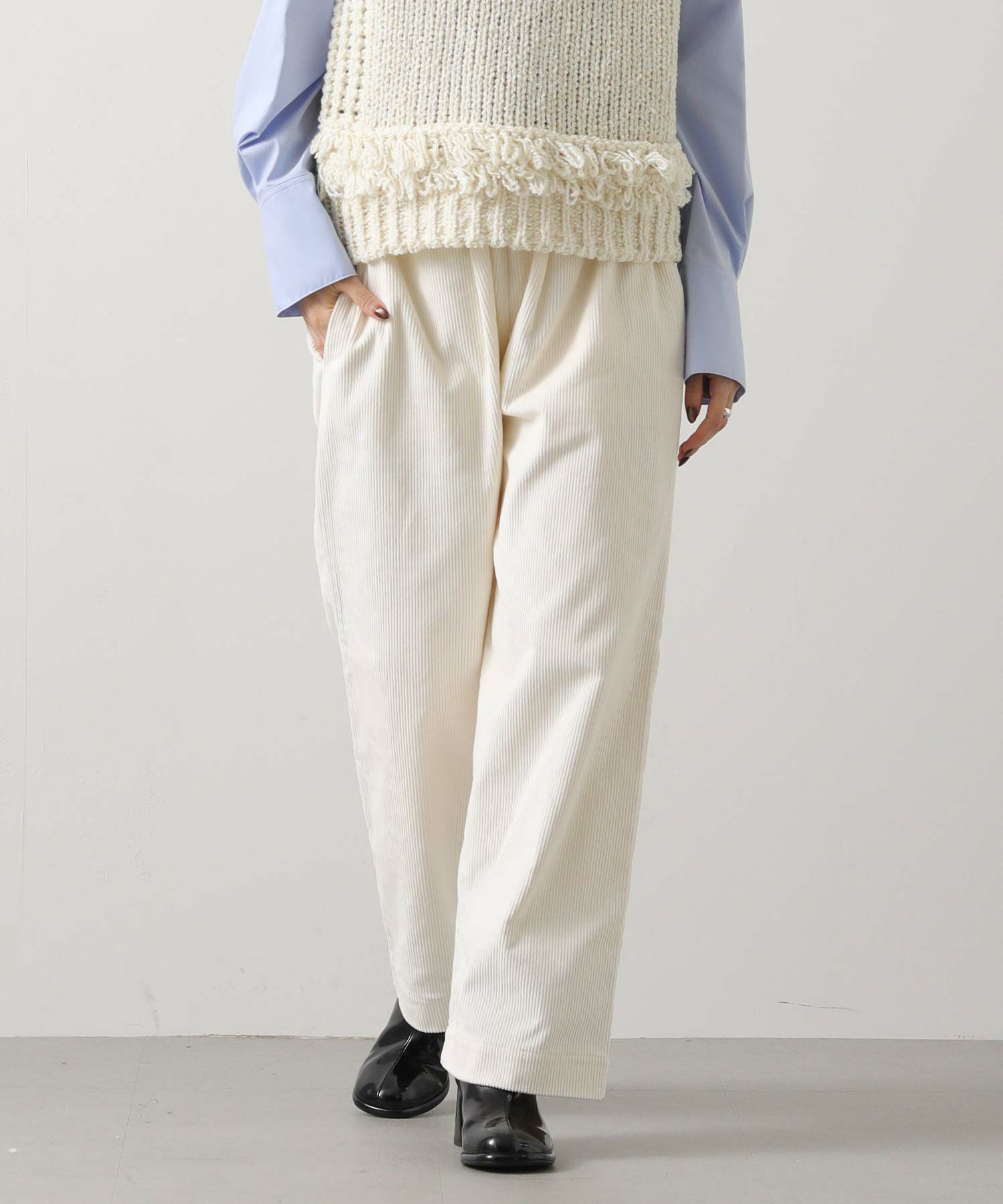 パンツのウエスト部はドローストリング仕様なので、ローウエストで抜け感を演出したり、ジャストウエストで上品にまとめたりと、その日の気分でシルエットを自在にコントロールできます。